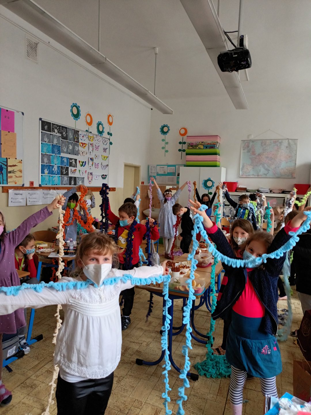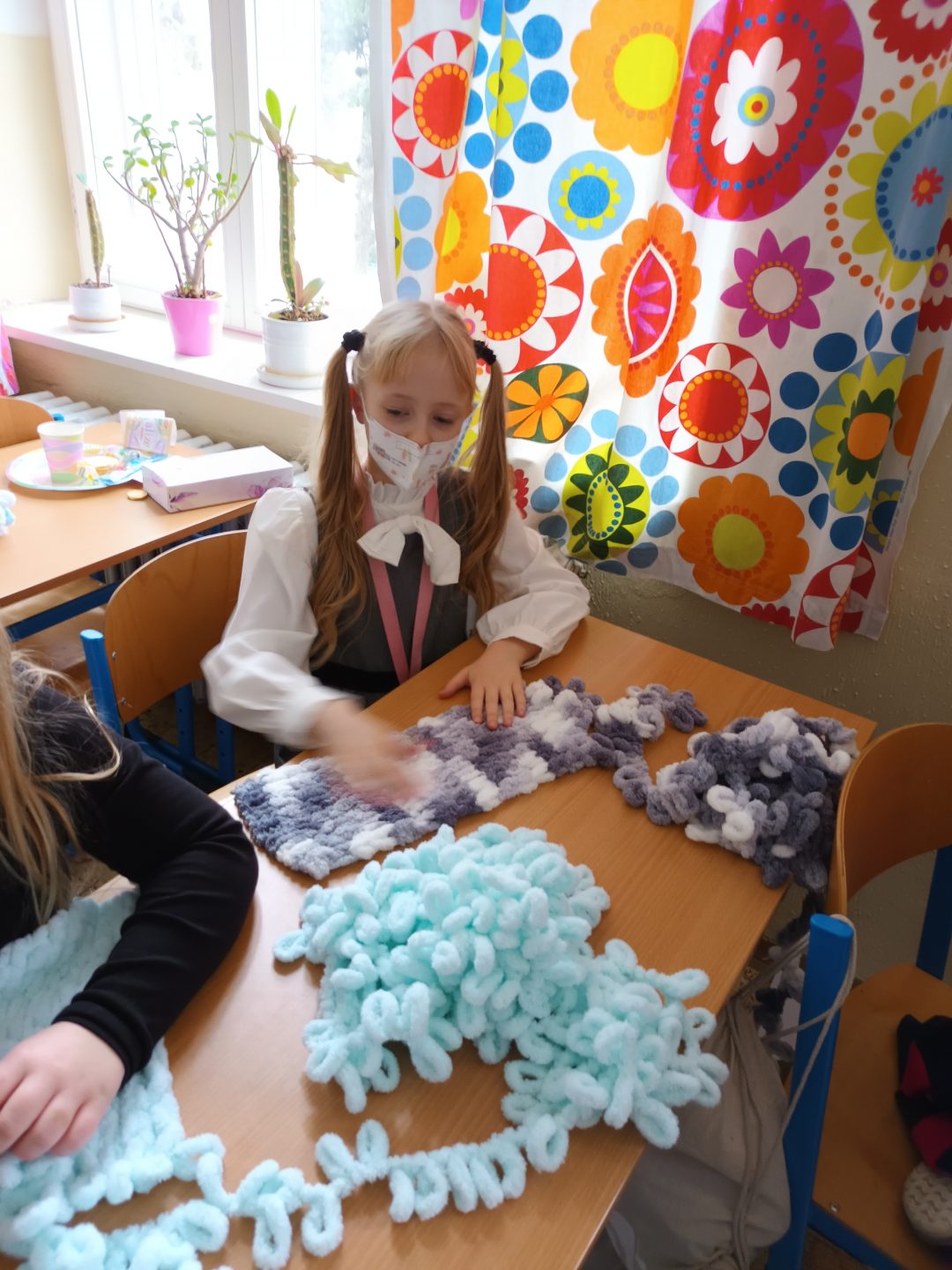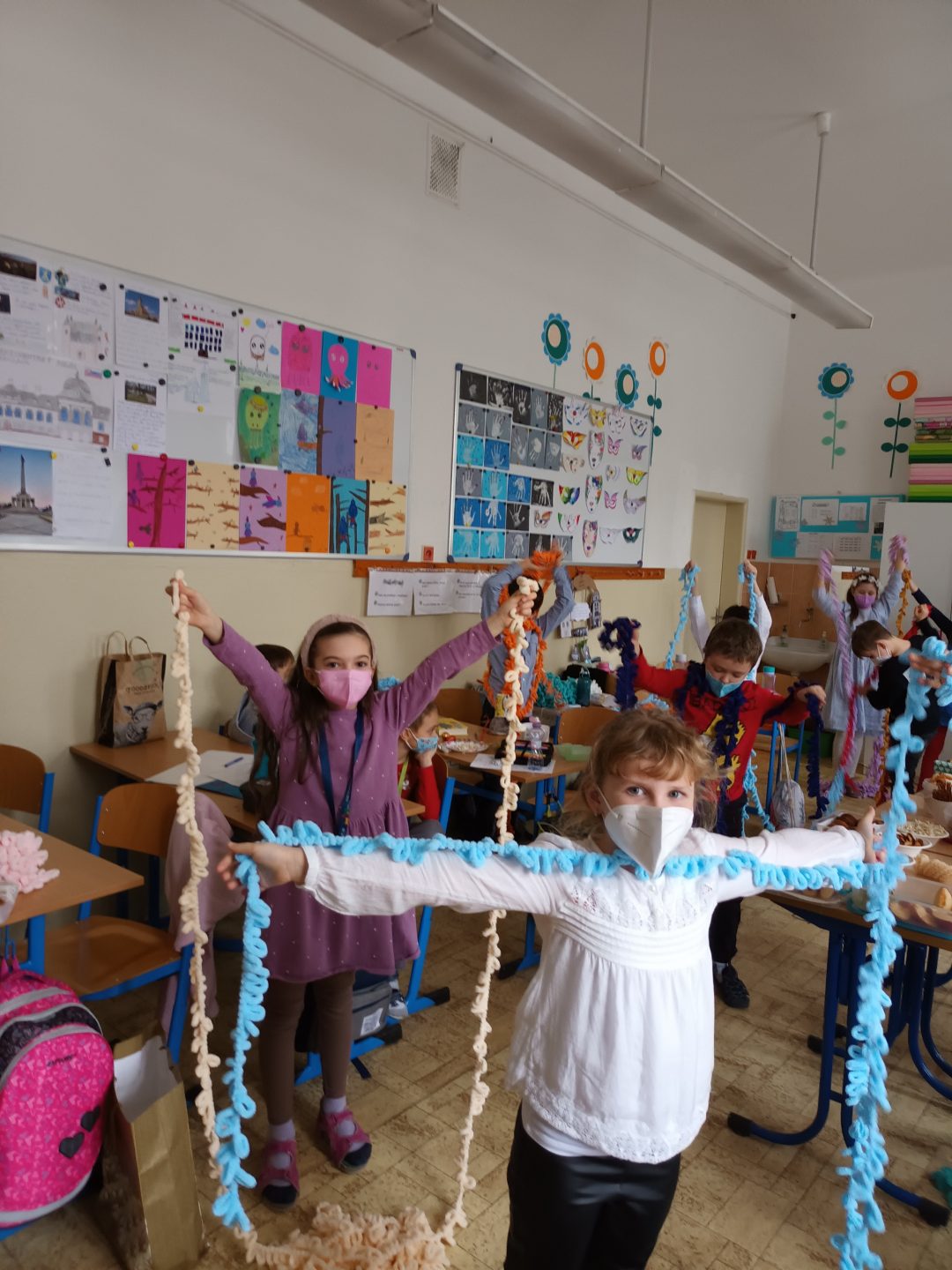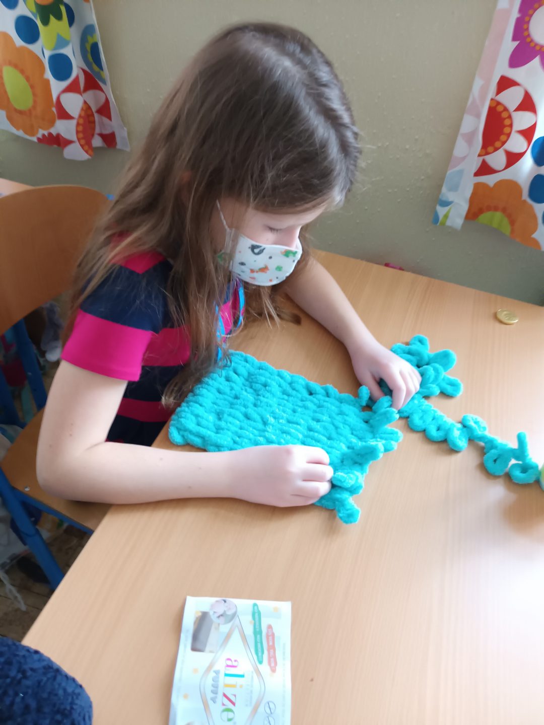 Zimné počasie stále neskončilo. Žiaci z 3.A triedy si poobede s pani vychovávateľkou uplietli takéto krásne šáliky, ktoré príjemne hriali a vyzerali skutočne úžasne.