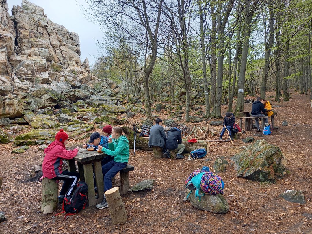 Aprílový výlet turistického krúžku bol  pre nás veľkou výzvou. Predsavzali sme si zdolať päť malokarpatských sedemstoviek a zlaniť skalnatý útvary nazývaný  Traja jazdci.