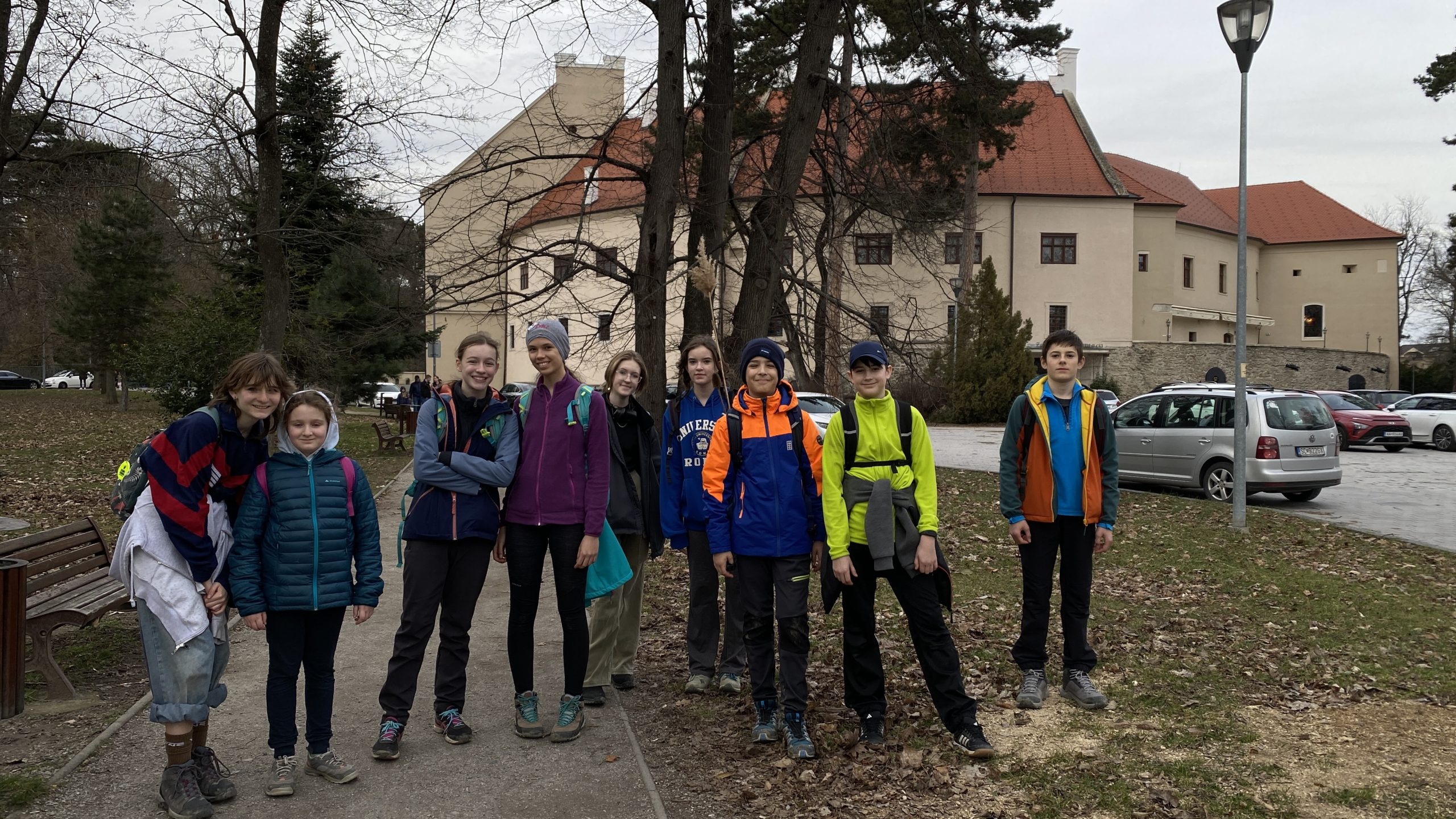 Do cieľa našej turistiky – mesta Pezinok – sme prišli po 20 km a pred odchodom na vlak sme sa zastavili ešte na zámku Šimák, kde sme obdivovali nielen nádherne zrekonštruovaný zámok a zámocký park, ale aj pávy v ňom žijúce.