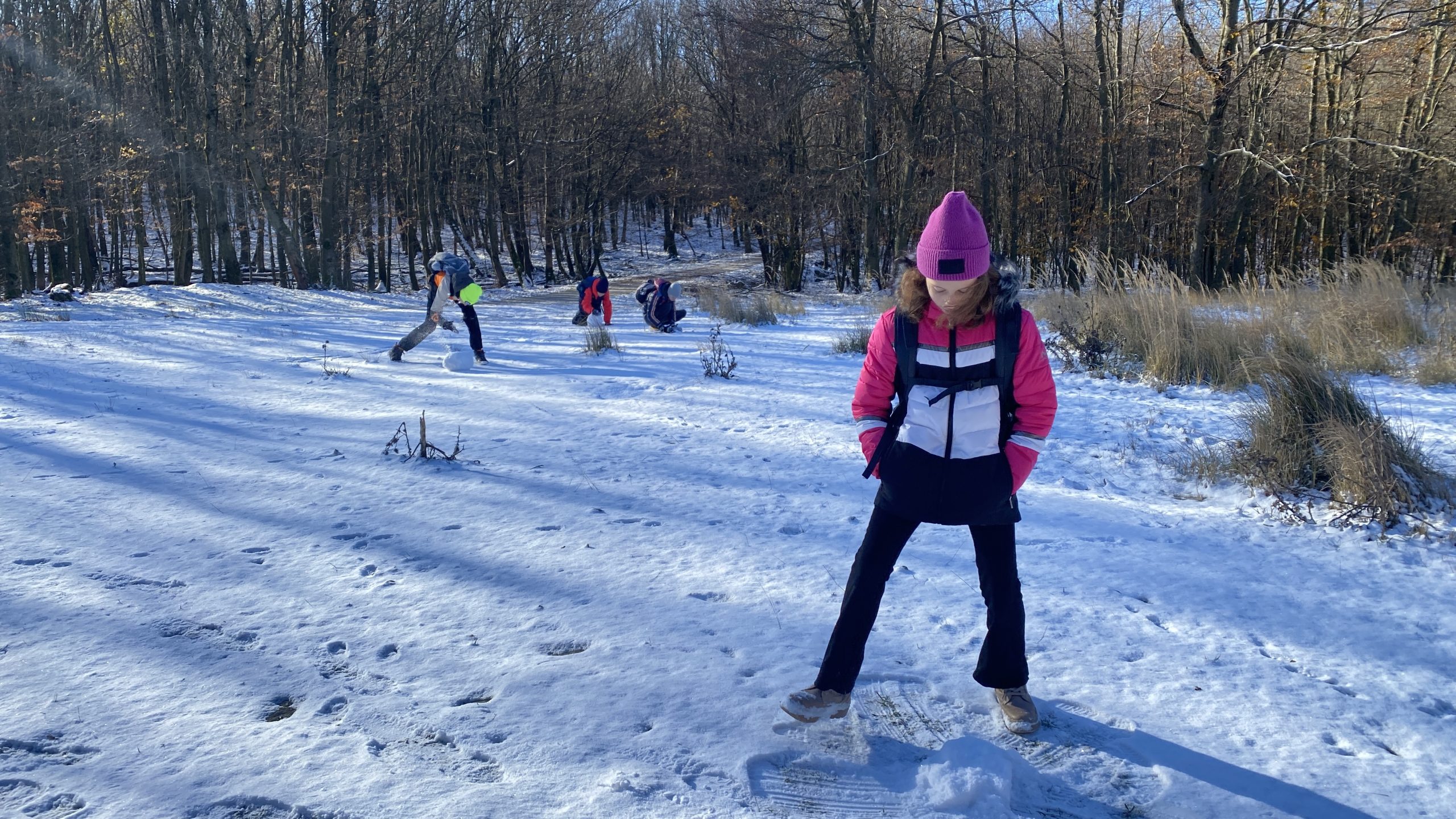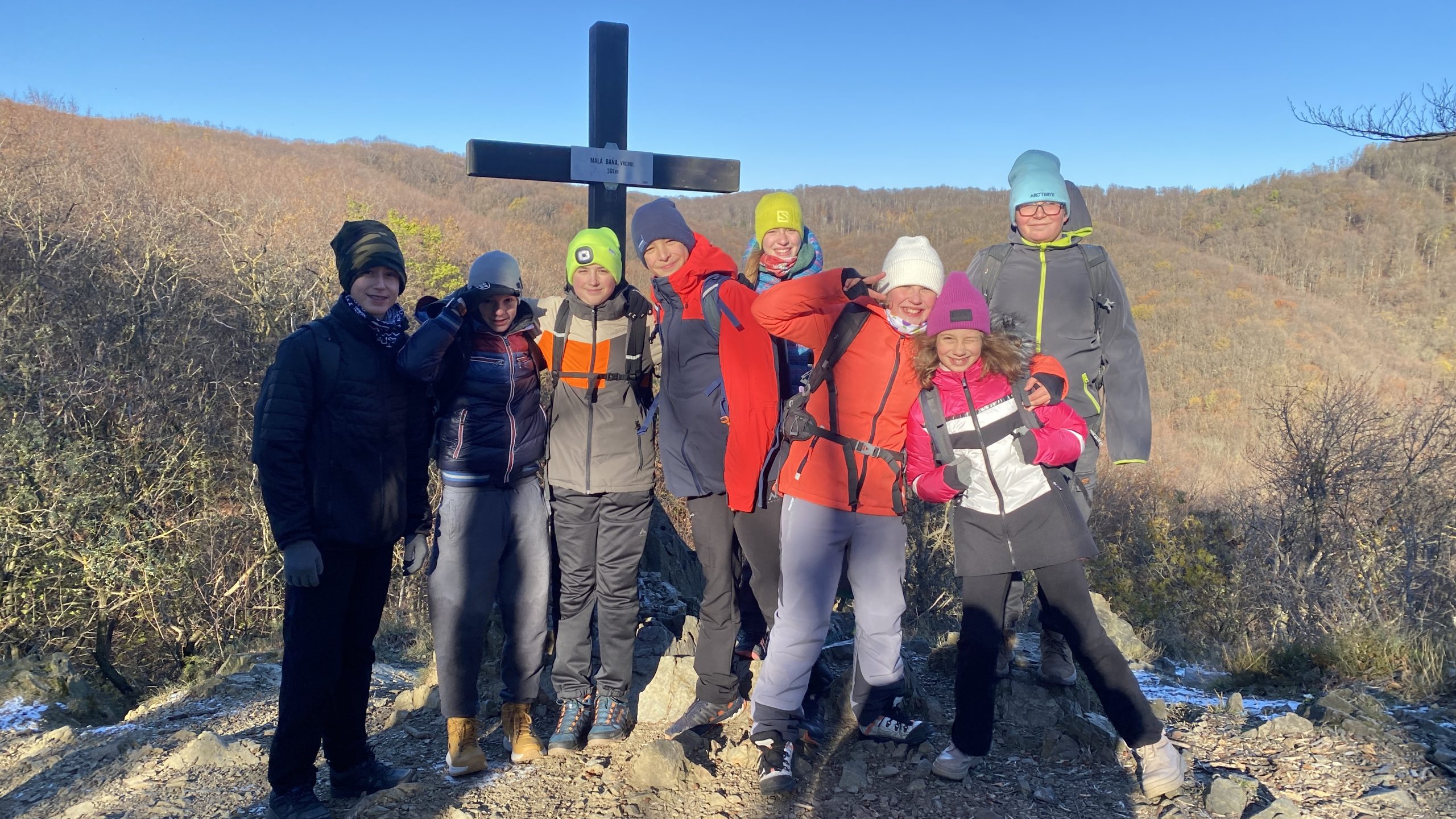 Novembrový výlet turistického krúžku sme odštartovali v Rači, odkiaľ sme sa vydali do Malých Karpát. Spočiatku vetristé počasie sa ustálilo na krásne slnečné, s modrou oblohou a snehom vo vyšších polohách. Prvý vrchol, na ktorý sme vystúpili, bola Malá Baňa (361), kde niektorí z nás využili samoobslužný bufet. Pokračovali sme k rázcestiu pri Dračom hrádku, na vrch Kozlisko (537m) a hrad Pajštún. Po krátkom oddychu na hrade sme zostúpili ku Kráľovskej studničke, kde sme si opekali špekáčiky aj chamallows. Zapadajúce slnko nás sprevádzalo až do Borinky, odkiaľ sme sa autobusom vrátili do Bratislavy. V tento krásny deň sme zdolali 18 km.