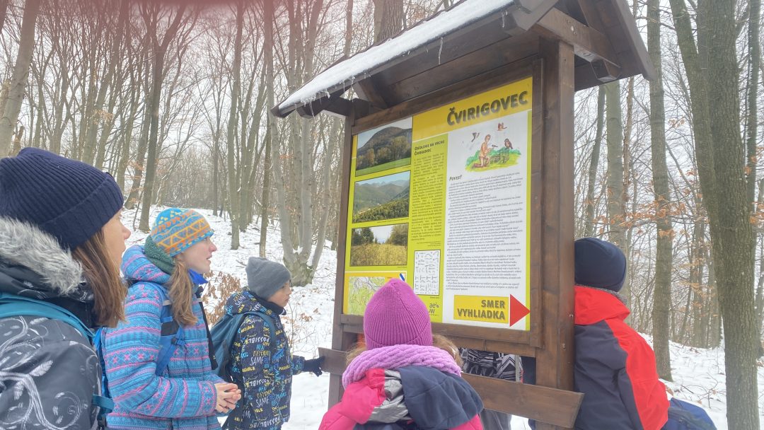 V januári sme sa vybrali na turistiku do oblasti Strážovských vrchov. Po príchode do kúpeľného mesta Trenčianske Teplice sme si prezreli jeho pešiu zónu, kúpeľný park s Labutím jazerom a Most slávy s tabuľkami významných osobností. Po ochutnávke vynikajúcich kúpeľných oblátok sme pokračovali po náučnom chodníku na Kočací zámok, vrch Čvirigovec (480m) a ďalej na Čertovu skalu, hradisko a archeologické nálezisko na výbežku nad dolinou Tepličky. Čertova skala má pomenovanie podľa diery v skale. Vraj tu čert dupol, aby ukryl svoj poklad a zostala po ňom v skale stopa. Cieľom našej túry bola Trenčianska Teplá, odkiaľ sme sa po zdolaní 13,5 km vrátili vlakom do Bratislavy.
