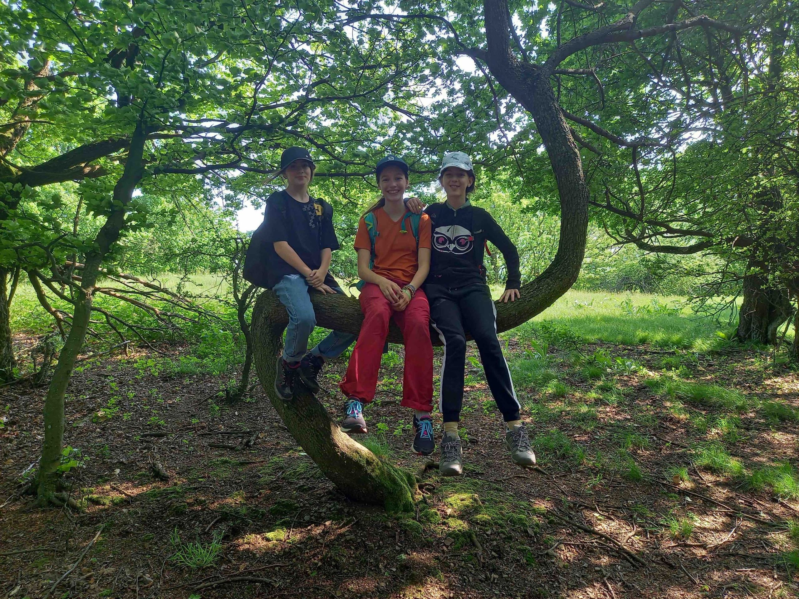 Po zostupe na Mesačnú lúku nasledoval oddych, už tradičné opekanie a tentokrát aj kolektívne lezenie po stromoch.