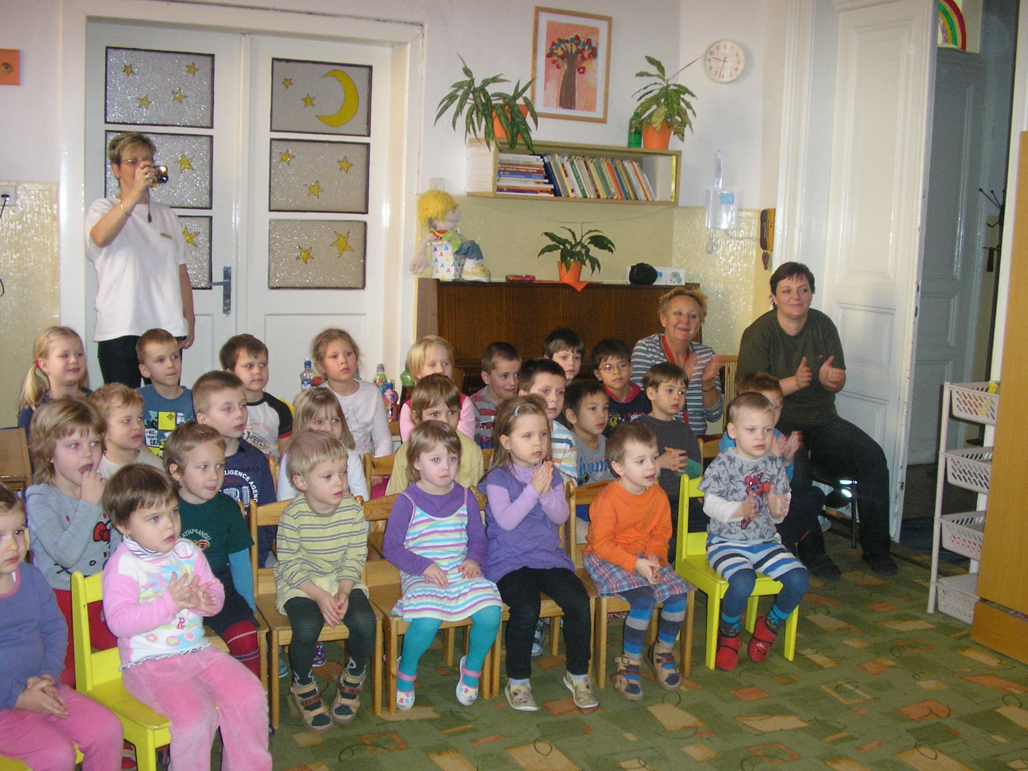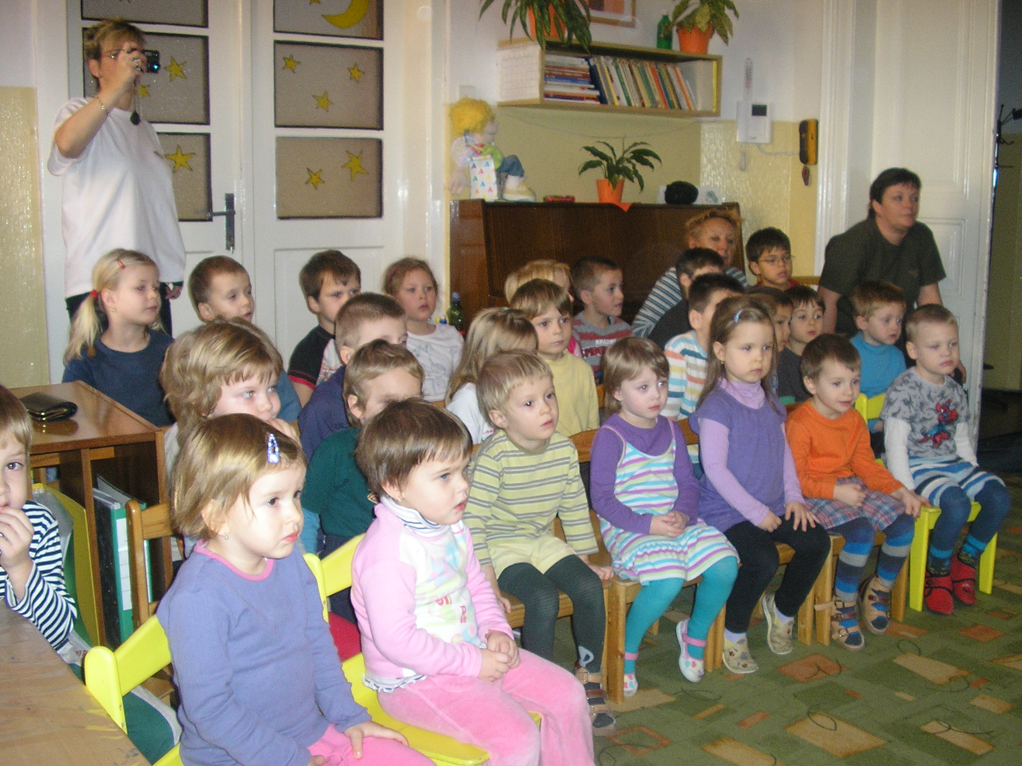 Deti z našej materskej školy boli na návšteve v prvej triede. Stretli sa s mnohými kamarátmi, ktorí s nimi ešte minulý rok stavali stavebnice a skákali cez švihadlo. Zistili, že deti v škole usilovne pracujú a že sa už naučili veľa zaujímavých vecí.