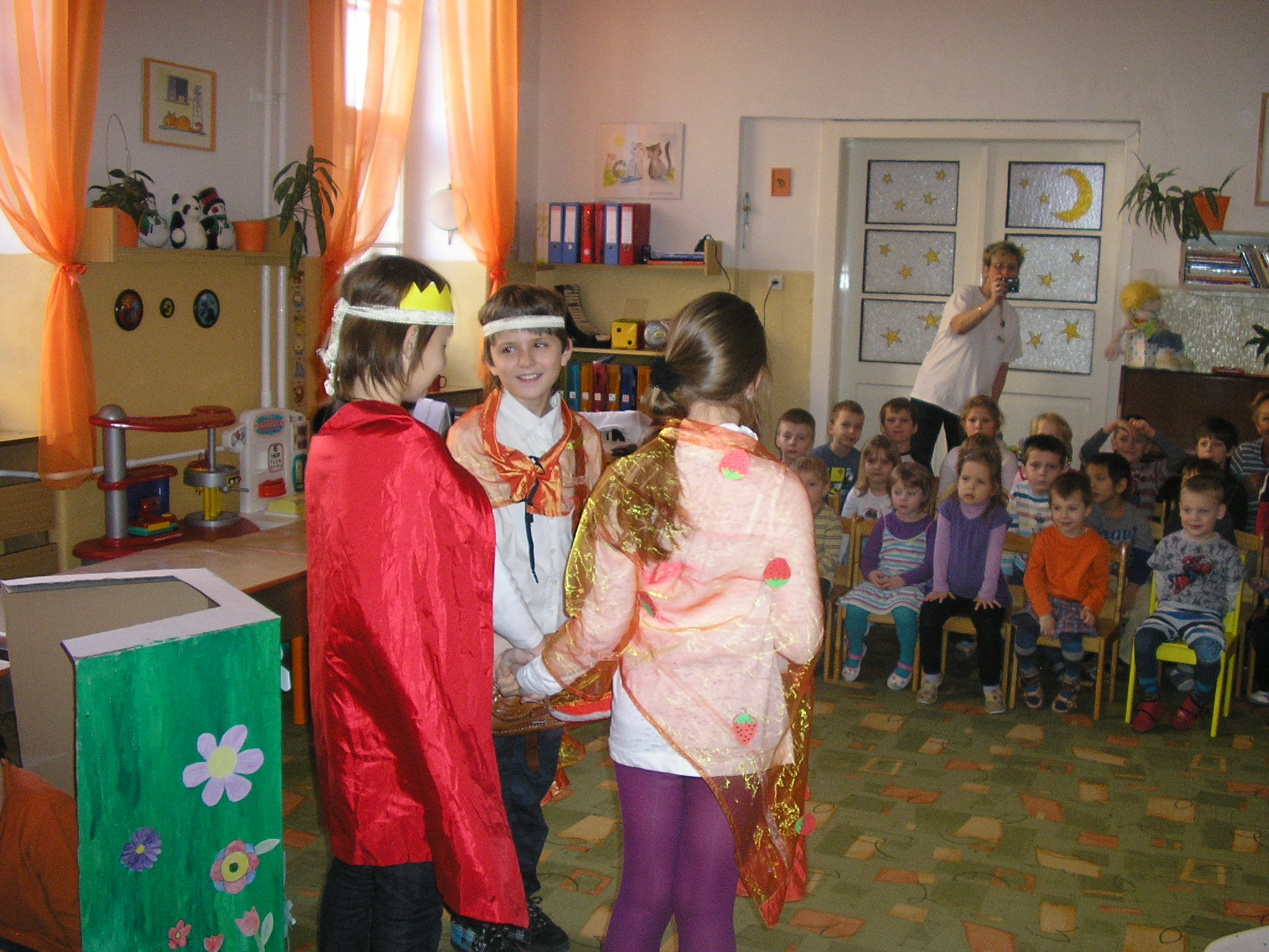 Žiaci štvrtého ročníka zavítali do materskej školy s divadelným predstavením Tri citróny, ktoré si svedomito pripravovali niekoľko týždňov. Kostýmy, kulisy, rekvizity, to všetko bola práca detí. Deťom v škôlke sa rozprávočka veľmi páčila a na záver štvrtákom pekne zatlieskali a poďakovali.
