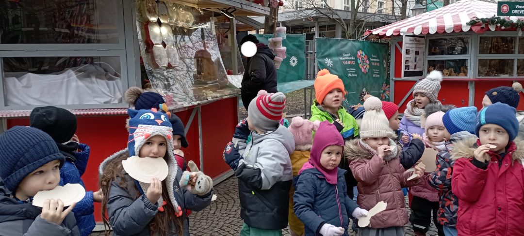 Posledný týždeň pred Vianocami sme sa spolu s našimi Žabkami a Sovičkami vybrali na vianočné trhy. Počas prechádzky po Hviezdoslavovom a Hlavnom námestí sme mali možnosť obdivovať výrobky v niektorých stánkoch a pomaškrtiť si na tradičnej vianočnej oblátke.