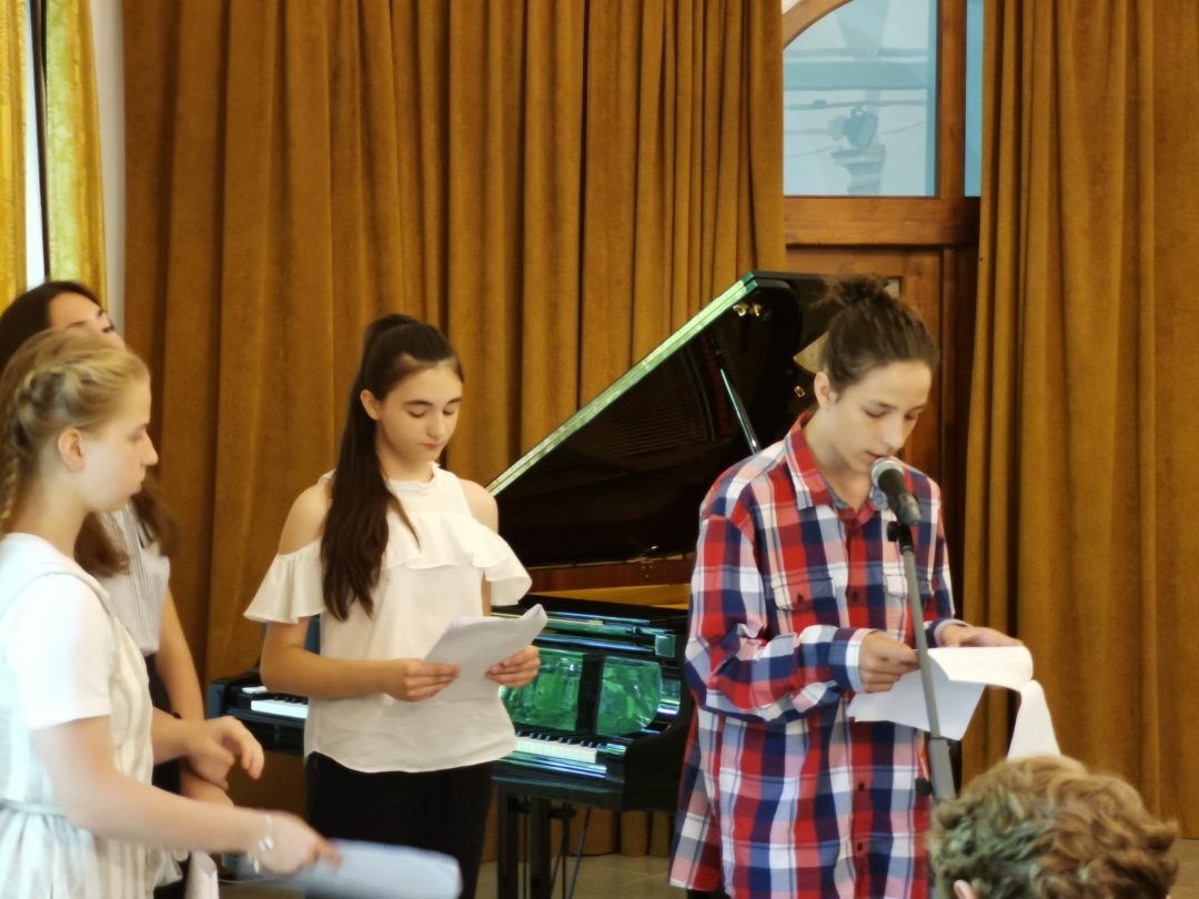 O program sa už tradične postarali žiaci Základnej školy Milana Hodžu. Žiaci sa predstavili pri čítaní úryvkov z ocenených prác. V hudobných číslach sa hrou na klavíri predstavili Kristína Kralovičová zo 7.B a David Pašš z 5.B, hrou na akordeón Yehor Bilinskij z 8.A triedy.