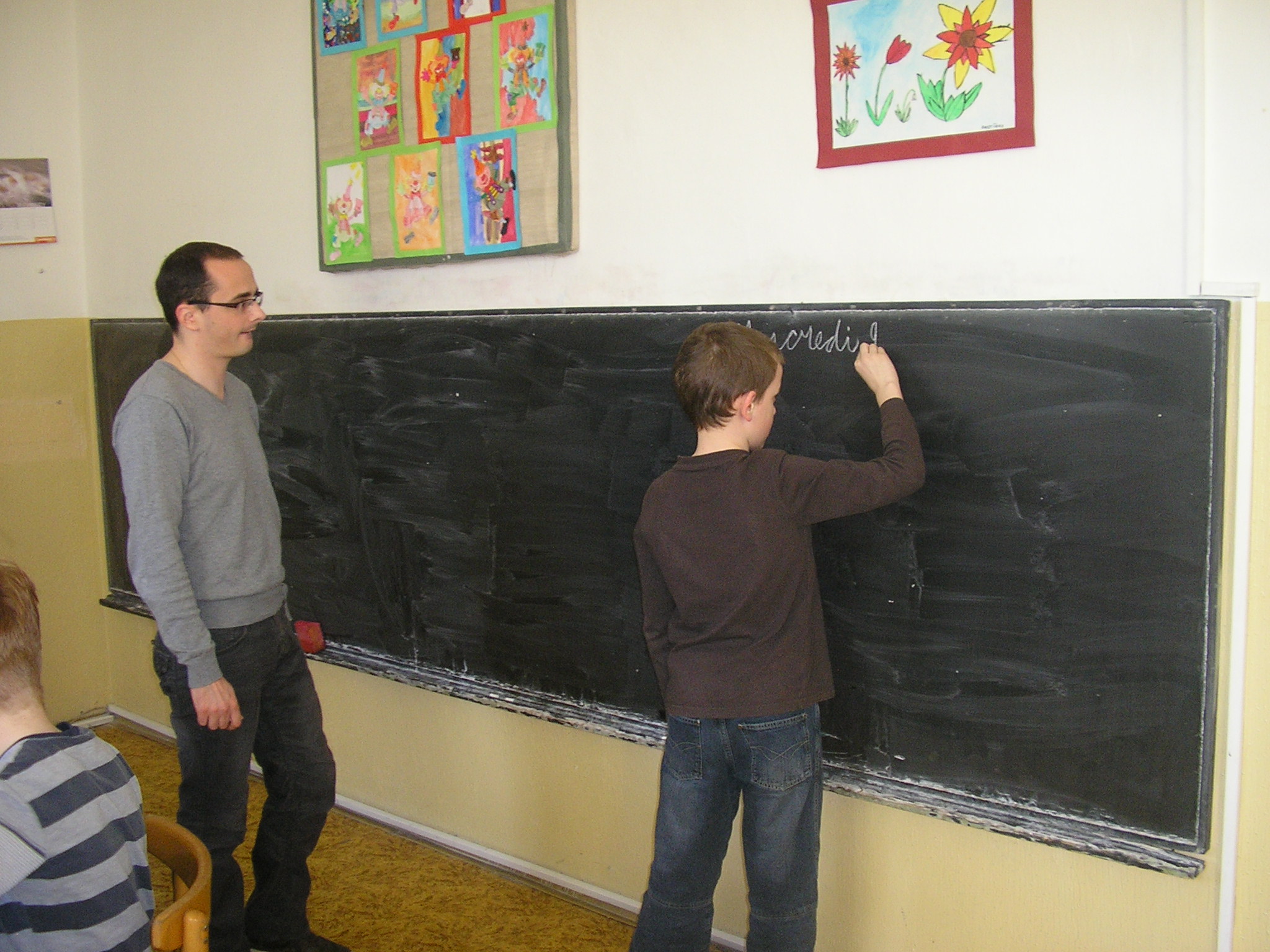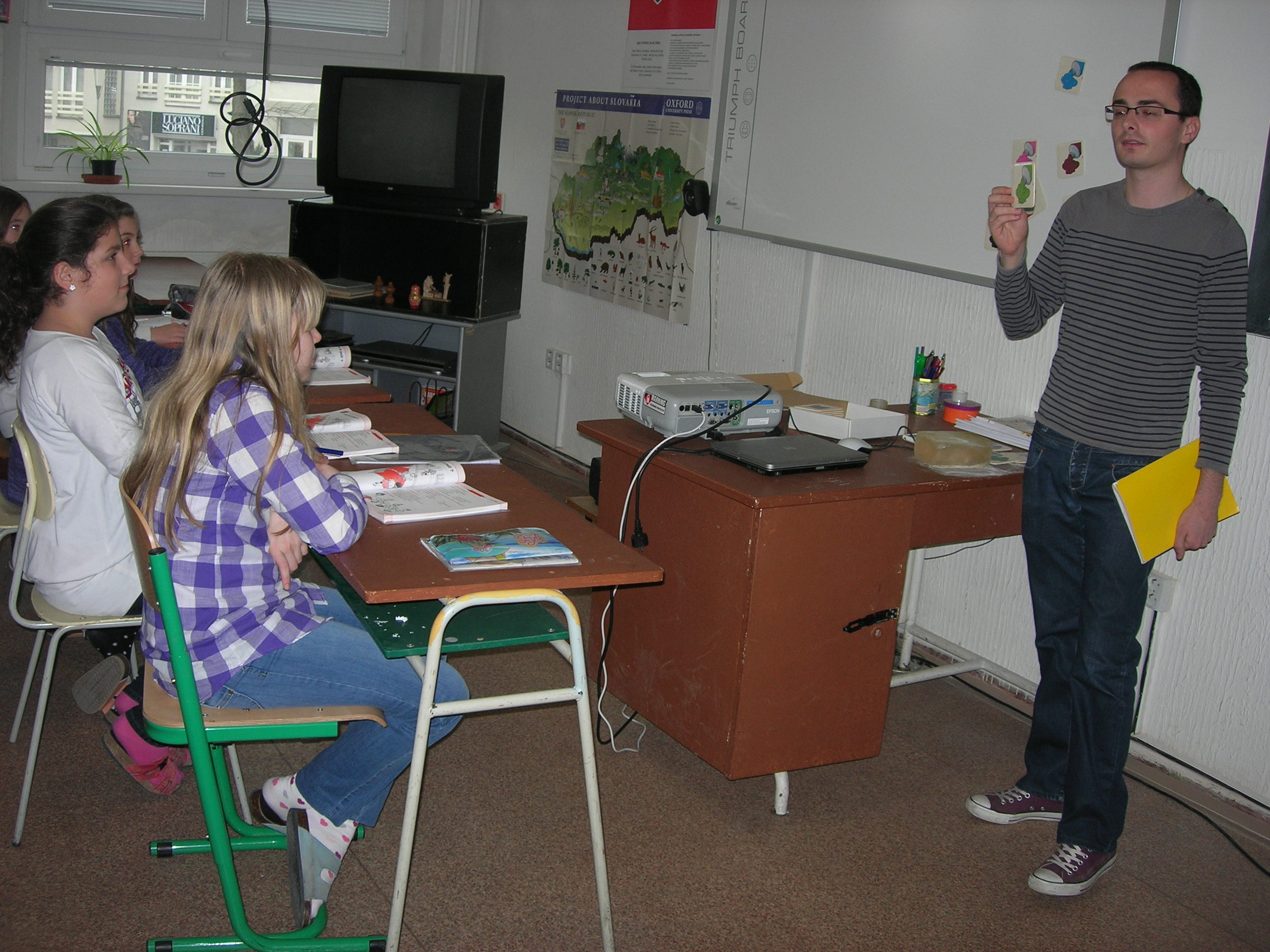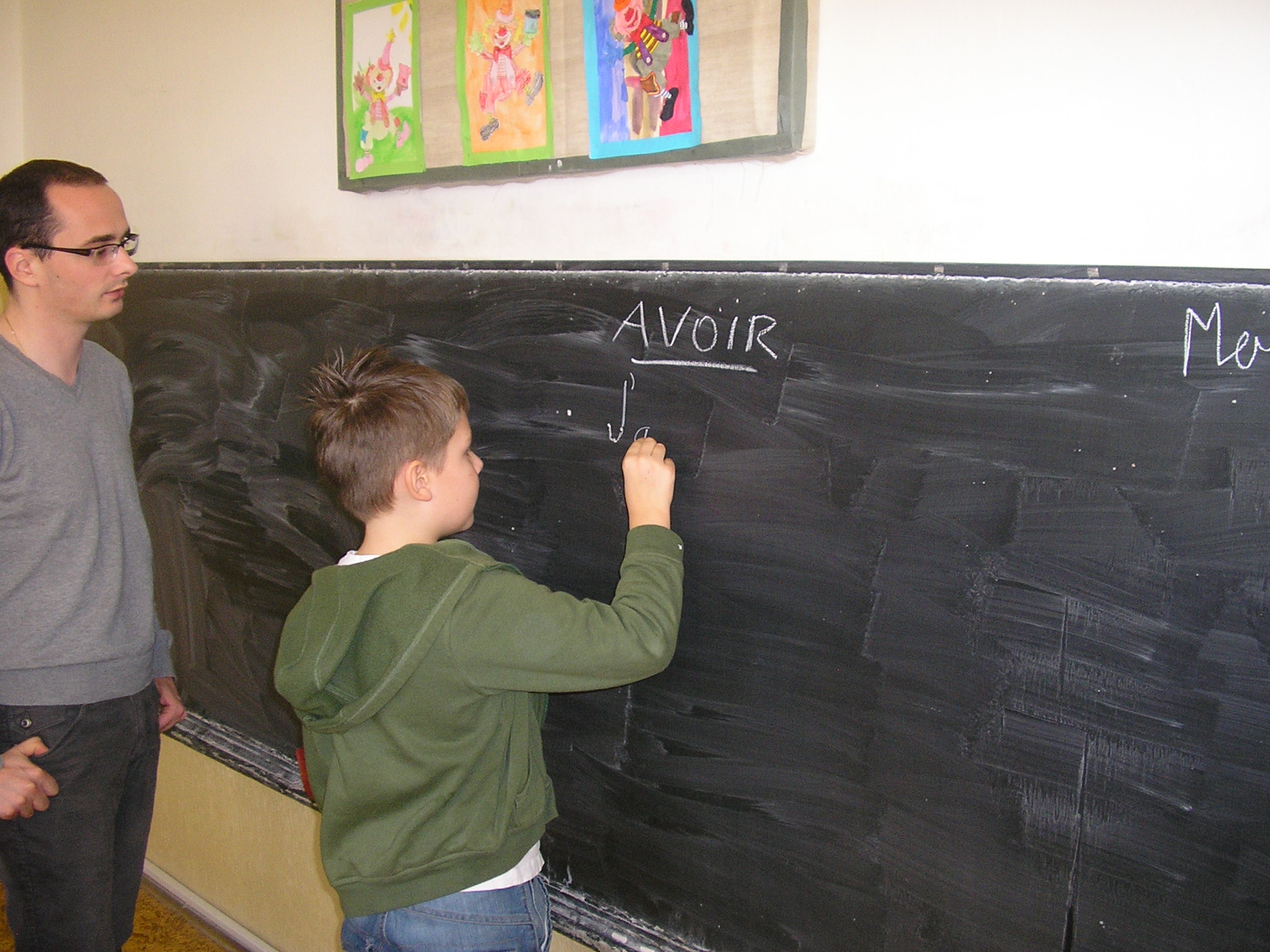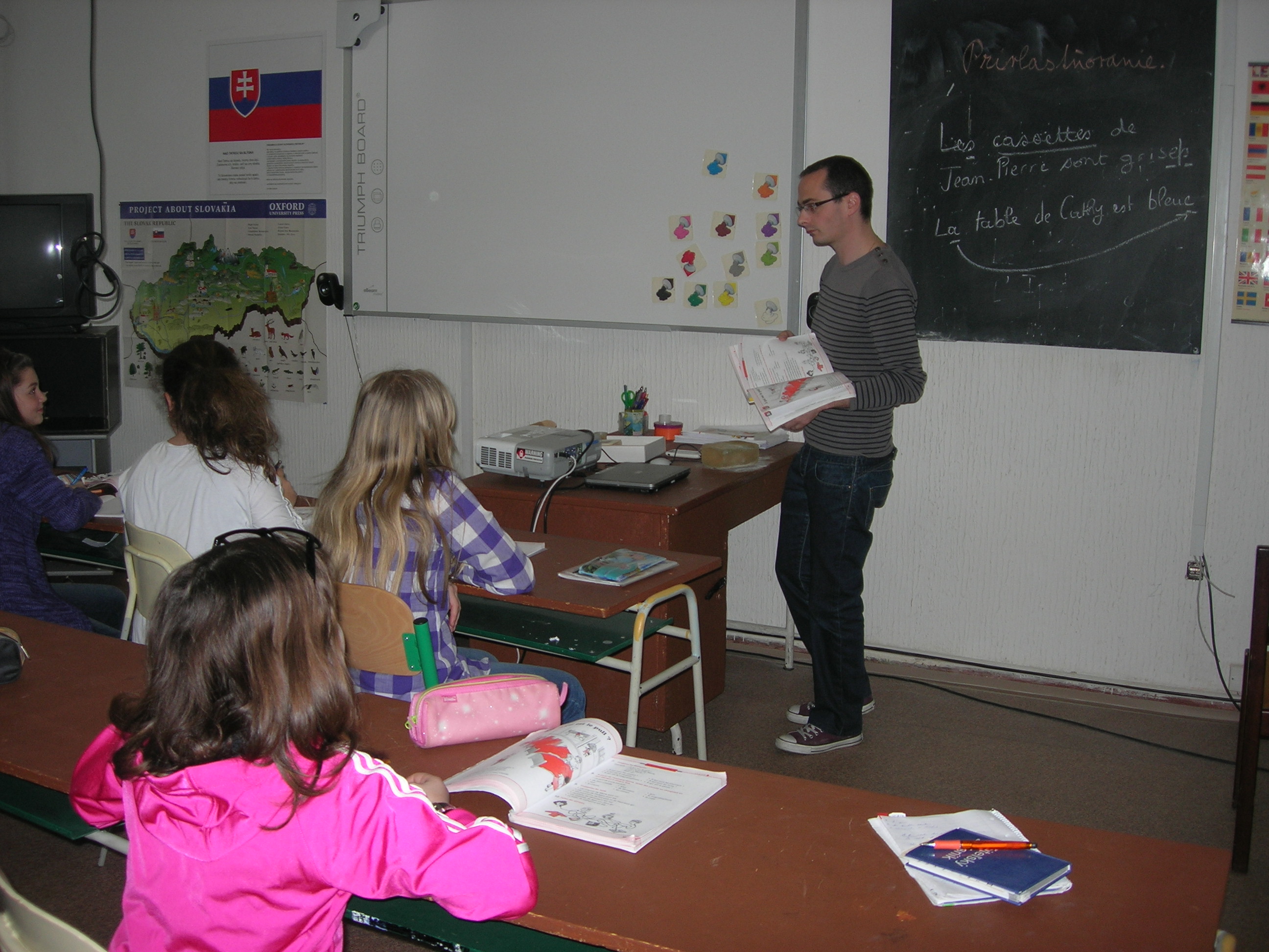 Jérémy je francúzsky študent, študuje na univerzite v Montpellier, je budúci učiteľ pre 3 až 11-ročné deti. Počas dvoch týždňov odučil takmer 30 hodín francúzskeho jazyka na prvom a druhom stupni našej školy. Na úvodných hodinách mali deti možnosť klásť mu otázky. Dozvedeli sa tak o zvykoch a sviatkoch, o tradičných jedlách či o školskom systéme vo Francúzsku. Hneď si viac začali pochvaľovať slovenské školy, keď zistili, že vo Francúzsku sa vyučuje do neskorých popoludňajšich hodín a starší žiaci sú v škole aj v sobotu doobeda. Na ďalších hodinách pokračovali v preberaní učiva alebo nacvičovali modelové situácie v obchode. Jérémyho veľmi zaujímalo, ako sa na Slovensku vyučuje, aké učebnice používame. Bol sa pozrieť aj na hodiny dejepisu a slovenského jazyka. Po návrate do Francúzska nám napísal e-mail. Všetkých pozdravuje a pekne ďakuje za príjemné prijatie. Dúfa, že žiakov jeho prítomnosť motivovala v ďalšom učení. Chcel by sa o pár rokov vrátiť, aby zistil aké pokroky žiaci dosiahli. Takže francúzštinári, snažte sa!