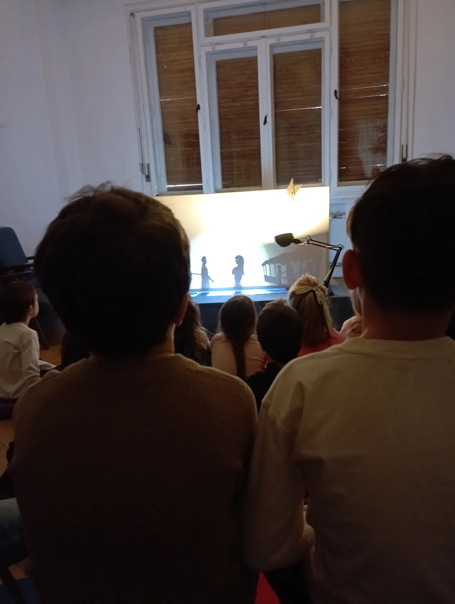Predstavenie bolo predvedené podmanivou formou tieňového divadla. Na záver sme vďaka rozhovoru s bábkohercom mali možnosť spoznať, čo všetko je potrebné k vytvoreniu takéhoto diela.