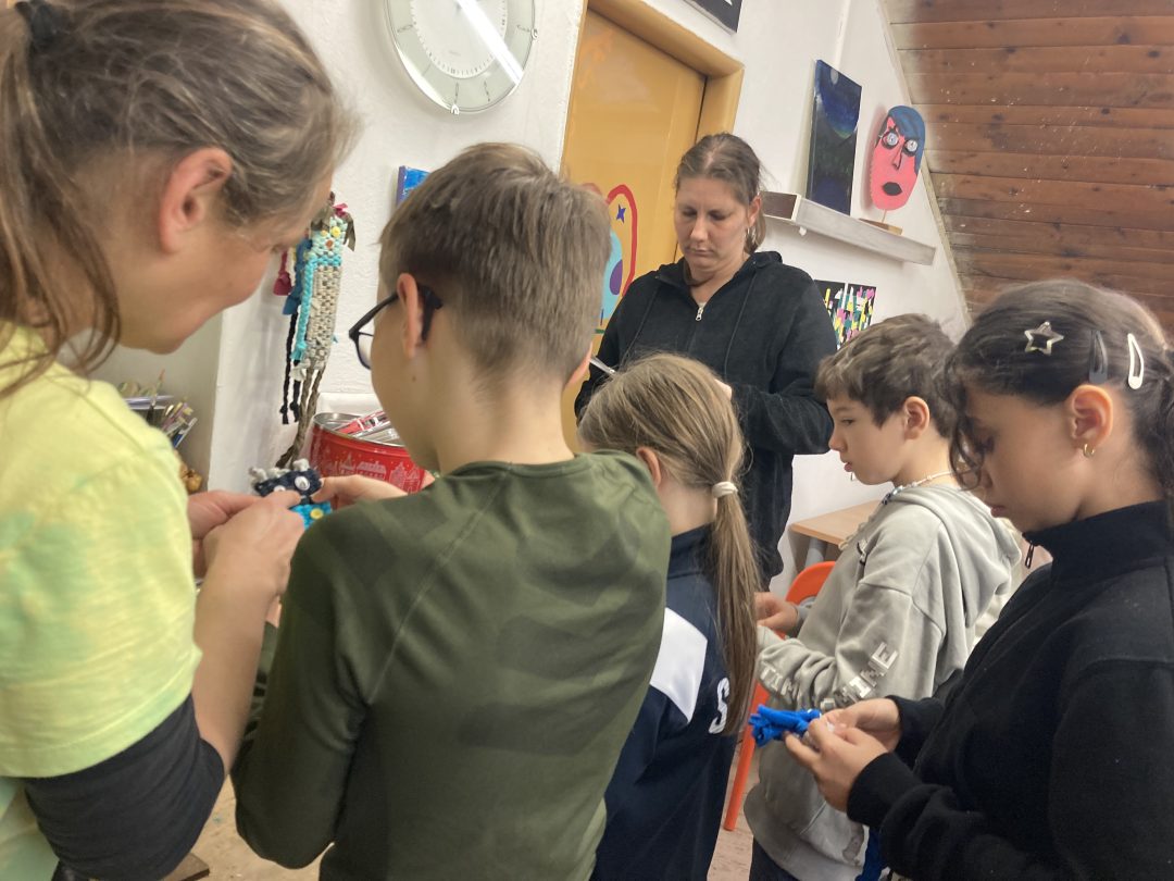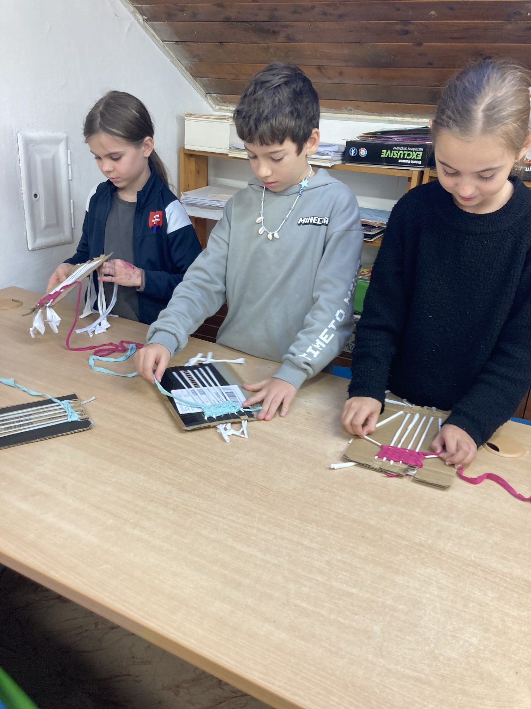 Žiaci zo 4.A boli v CVČ na Štefánikovej ulici na alternatívnej hodine výtvarnej výchovy. Témou bolo tkanie panáčikov. Táto tvorivá činnosť deti úplne pohltila, práce sa im vydarili a spokojní si ich odniesli so sebou.