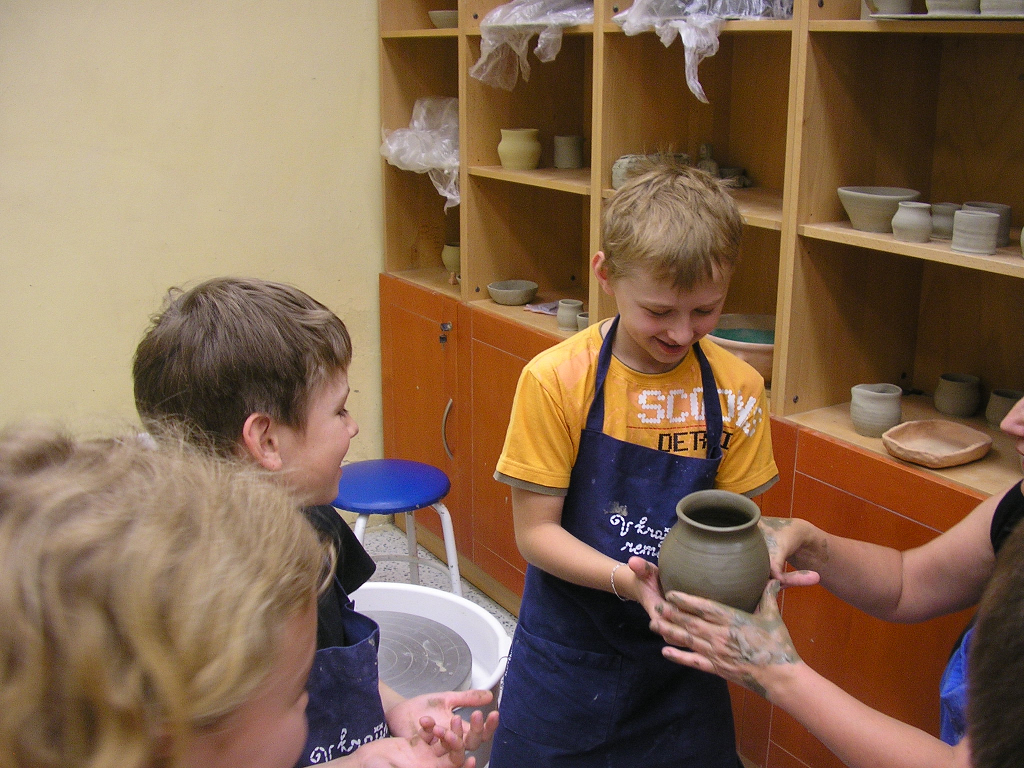 Tvorivé dielne  predstavujú inovatívnu a zážitkovú formu vzdelávania, prostredníctvom ktorej deti nahliadajú do histórie remesla. Naši žiaci si skúsili prácu na hrnčiarskom kruhu, modelovanie z hliny, utkali si náramok  na doštičke a oboznámili sa s maľbou na sklo a podmaľbou. Práca ich nesmierne nadchla a vlastnoručne zostaveným výrobkom sa veľmi tešili.