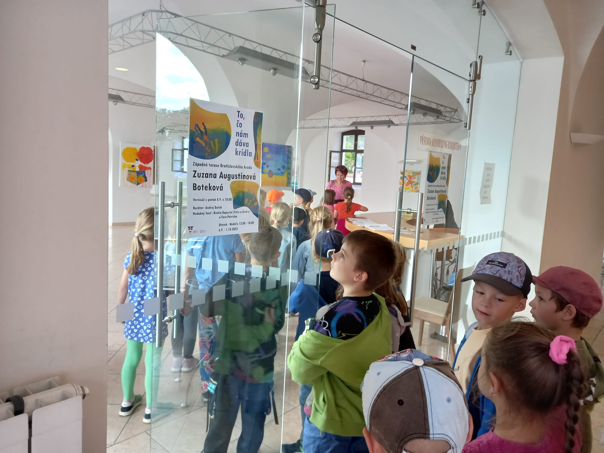 V mesiaci september mali prváci, druháci a tretiaci v rámci činnosti ŠKD možnosť navštíviť umeleckú výstavu To, čo nám dáva krídla autorky Zuzany Augustínovej Botekovej, ktorá bola nainštalovaná v priestoroch Západnej terasy Bratislavského hradu. Deťom sa výstava páčila, pretože vystavené obrazy boli farebné, veľmi pozivítne ladené a každý si v nej našiel svoj obľúbený exponát.