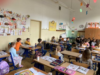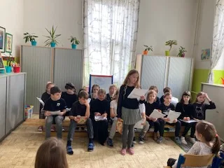 Žiaci zo 4. B si pripravili pre žiakov z 1. ročníka dramatizované čítanie z knižky Vraniak Albín. Vybrali si ju, lebo je o odvahe a zmysle pre spravodlivosť. To sú vlastnosti, ktoré má každý, len ich musí v sebe objaviť. Malým spolužiakom sa čítanie páčilo, účinkujúcich odmenili potleskom a sľúbili im, že si knižku určite dočítajú doma sami, keď to už budú vedieť.