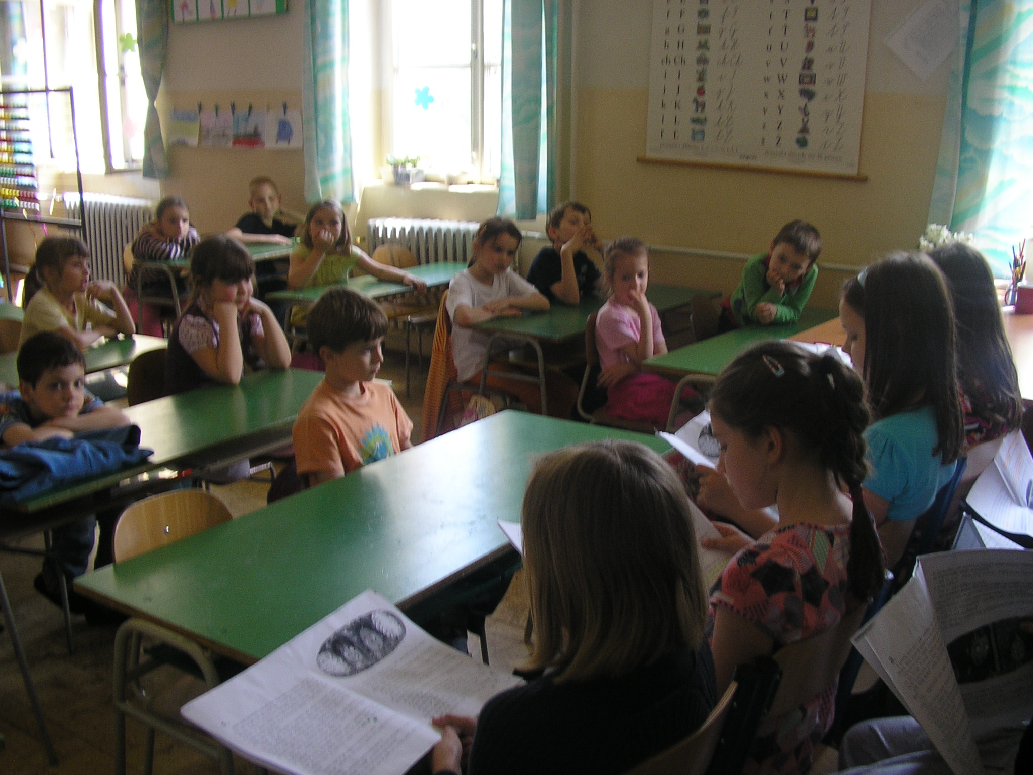 Štvrtáci si pripravili pre prváčikov ukážku čítania.