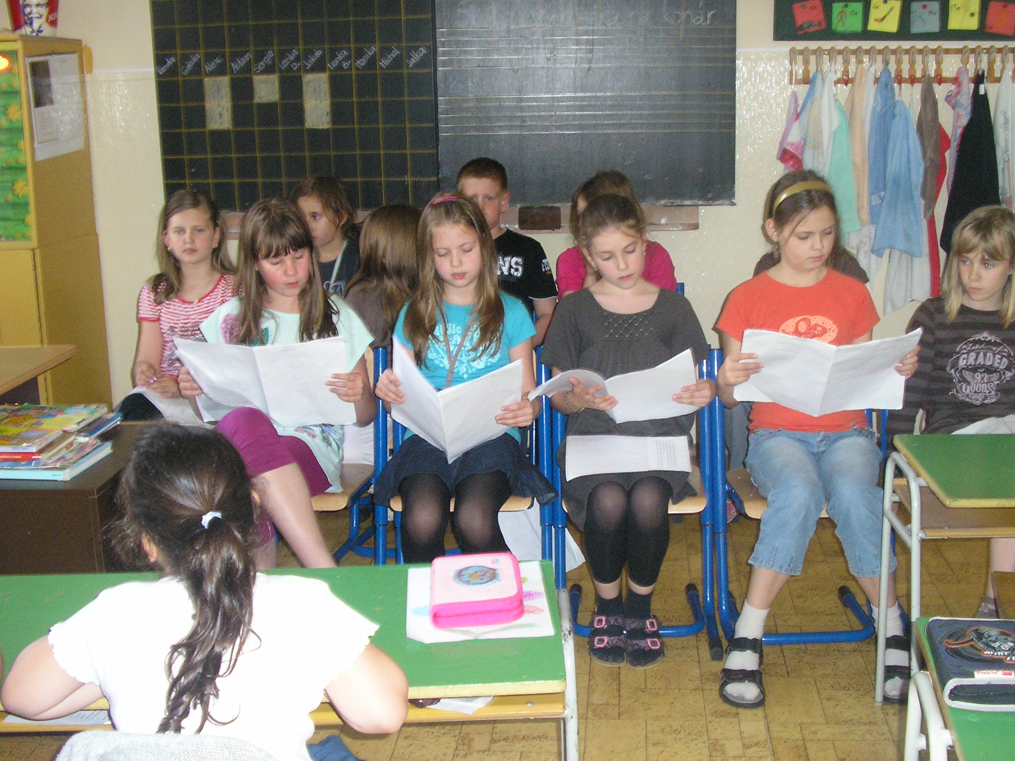 Deti zo 4.A si na hodinách čítania pripravili pre prvákov zaujímavé spestrenie vyučovania. Nacvičili si dramatizované čítanie príbehov malej Kláry z knižky Dokonalá Klára od Gabriely Futovej. Veľkí štvrtáci svojou čitateľskou zručnosťou motivovali svojich najmenších spolužiakov k veľkej usilovnosti pri čítaní.
