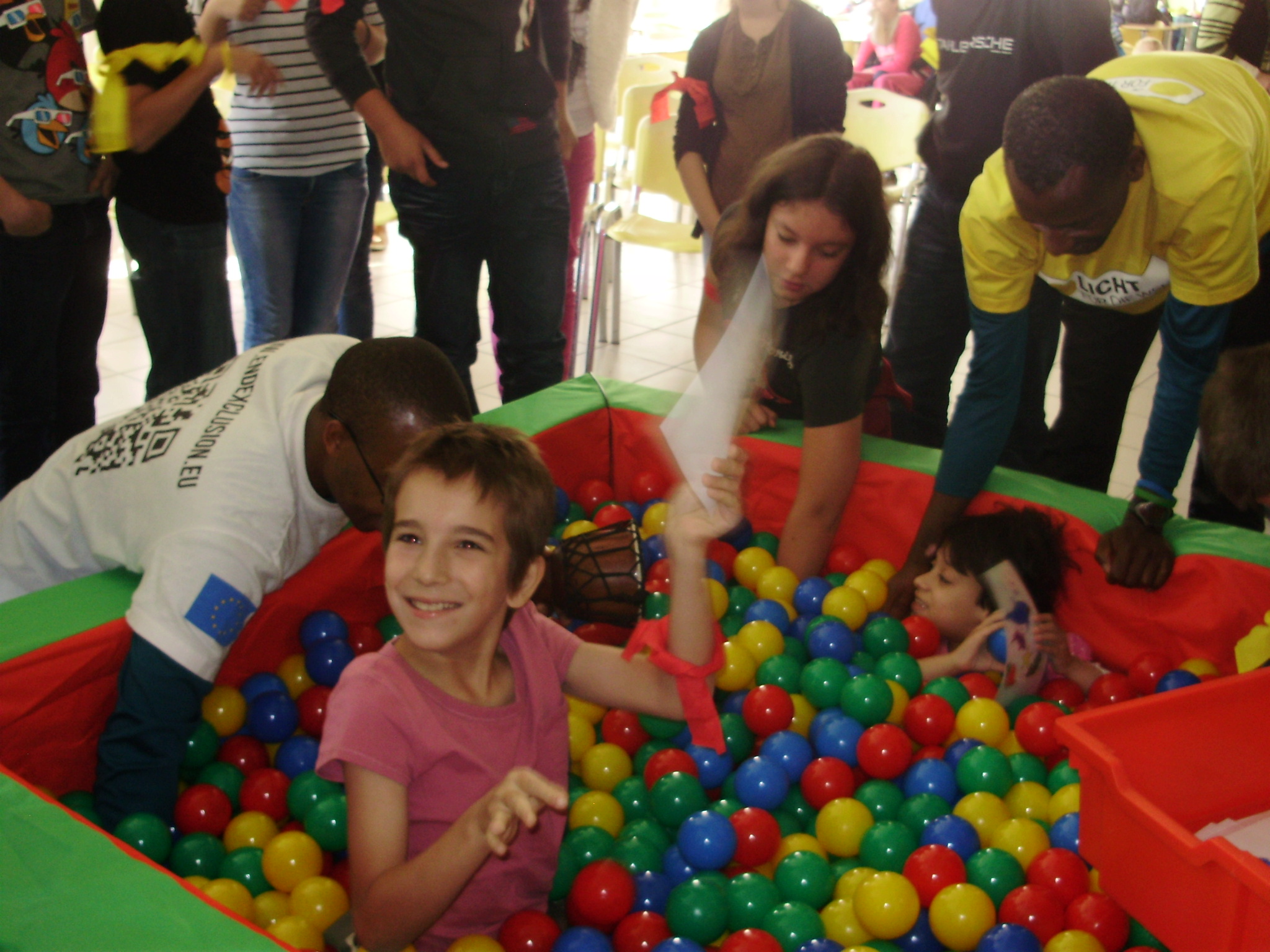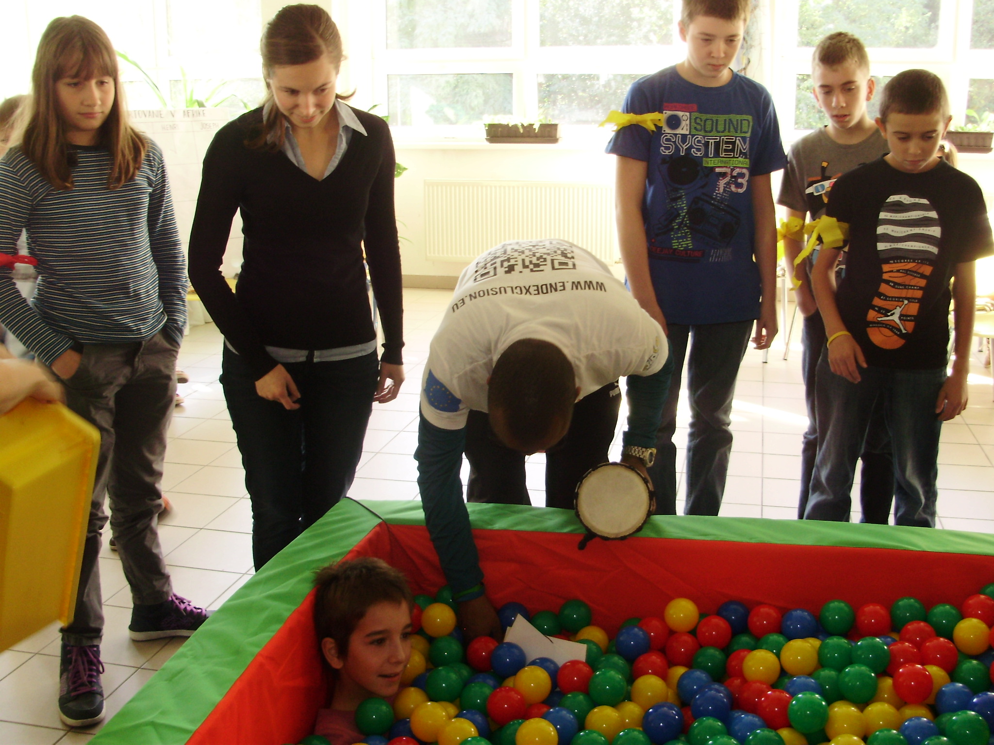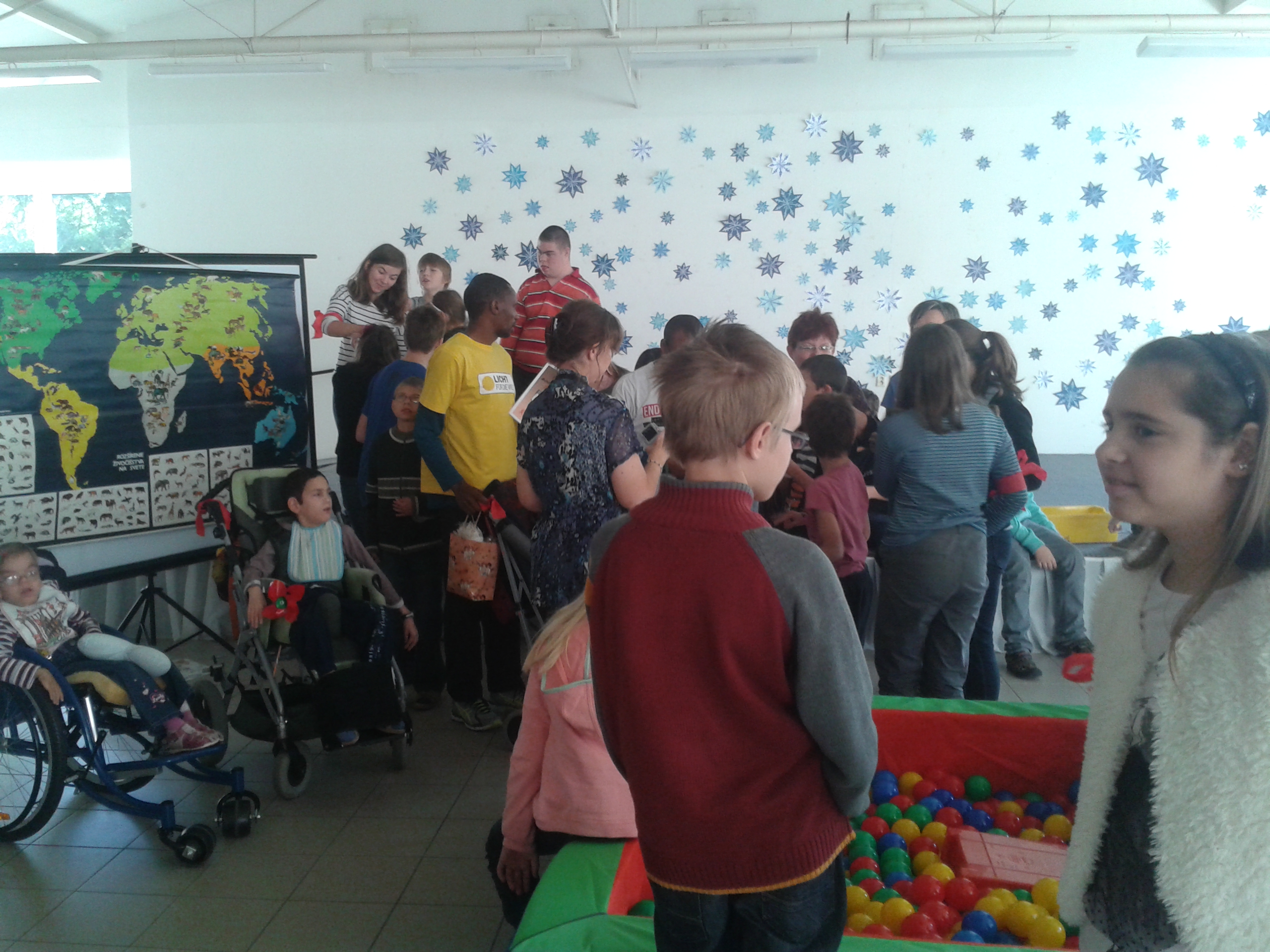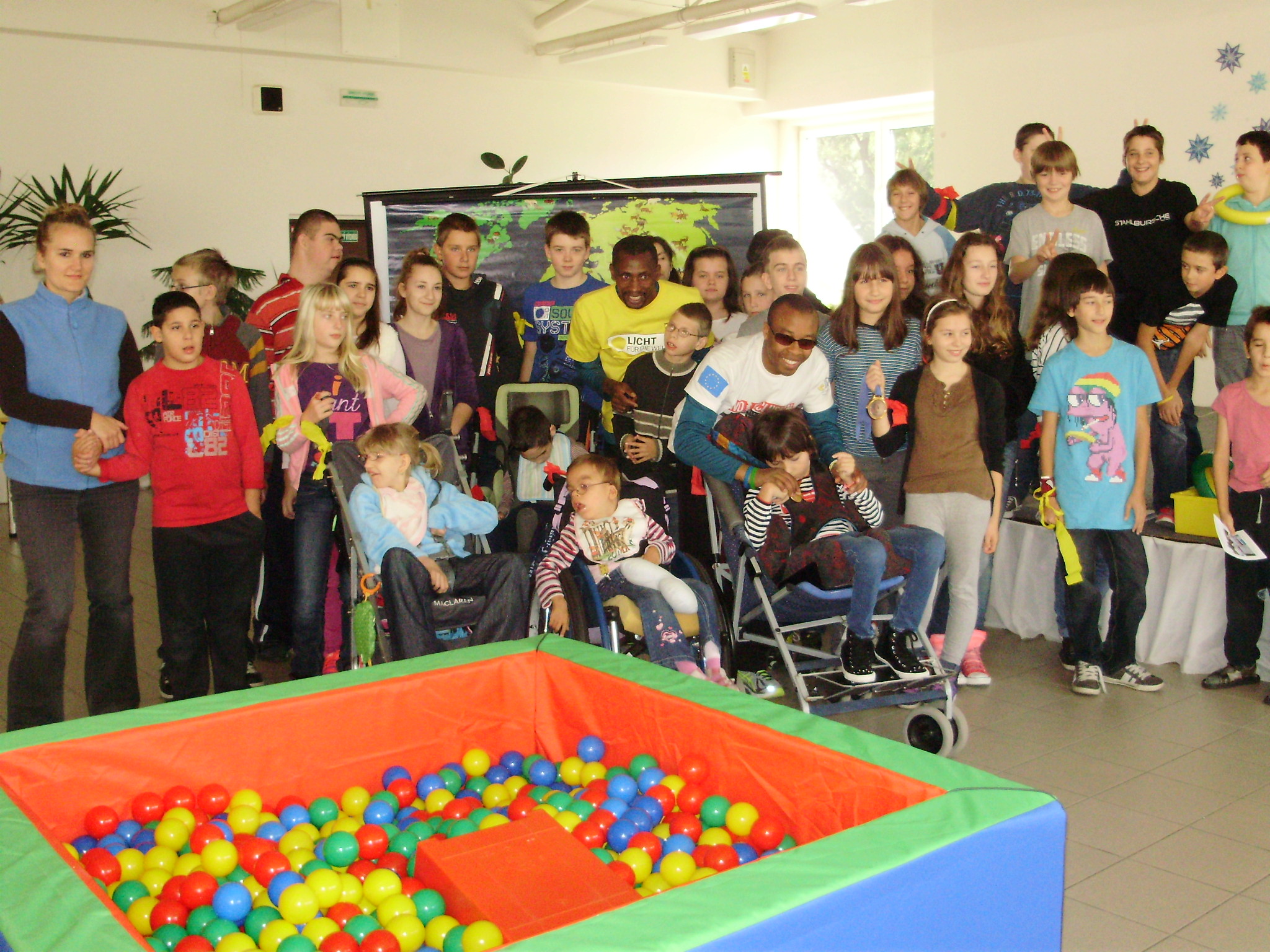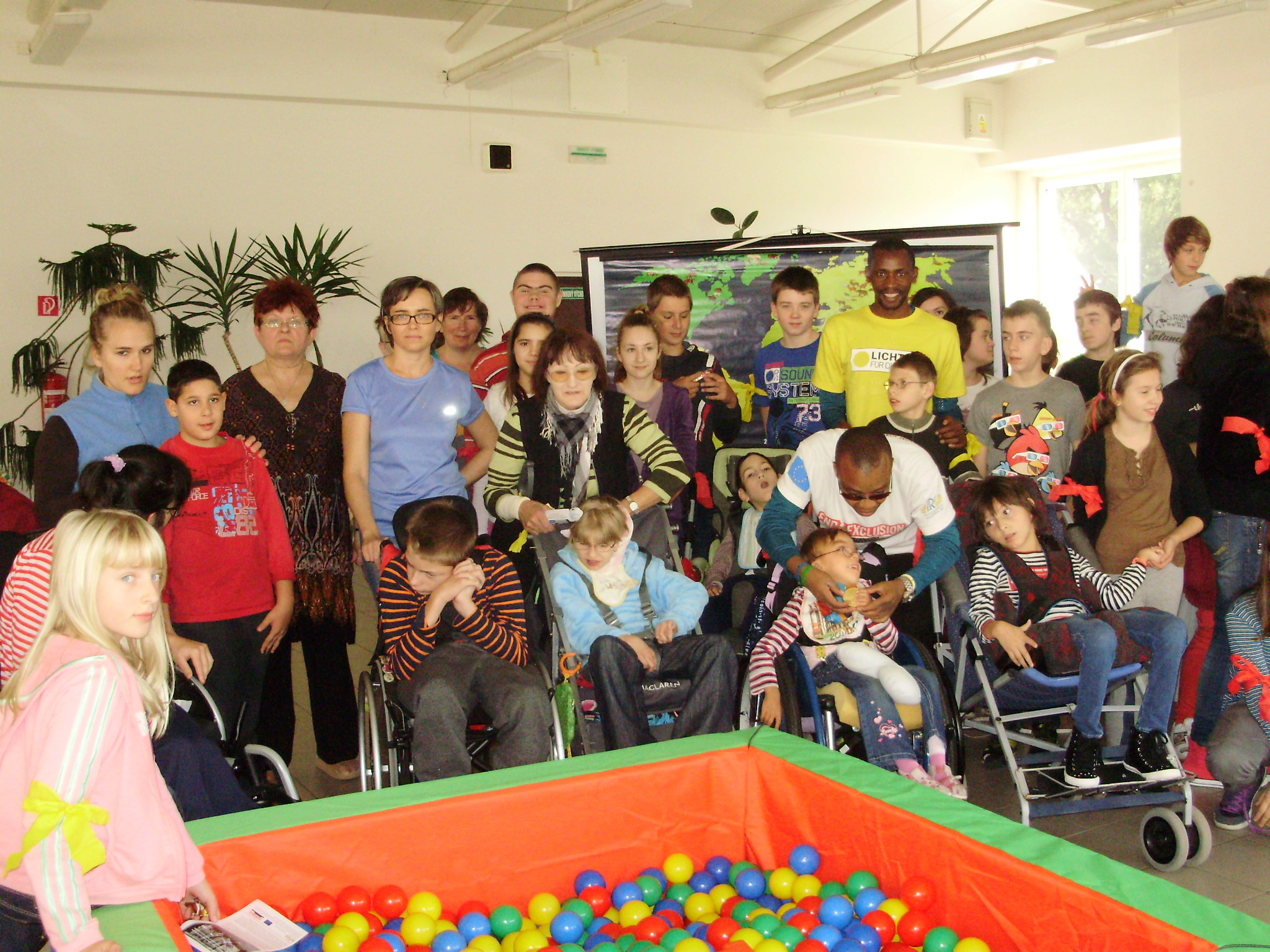 Naši kamaráti mali celý čas úsmev na tvári. Boli ponorení v bazéne s guľôčkami a hrali sme sa, že plávajú v mori. Boli sme rozdelení na červený a žltý tím. Vyťahovali sme z mora obrázky morských živočíchov a plnili spoločne rôzne iné úlohy. Dobré bolo, že nikto neprehral ani nevyhral. Športoval tam s nami aj slepý bežec Henry Wanyoike s jeho navigátorom a ten sa volal Joseph Kibunja. Henry stratil zrak keď mal 21 rokov následkom slabej mŕtvice. V roku 2000 vyhral svoju prvú zlatú medailu na paraolympijských hrách v Sydney v behu. Joseph behá vedľa Henryho a sú spojení povrázkom priviazaným k zápästiam. Mali sme s nimi aj besedu, na ktorej sme sa ich pýtali na rôzne veci. Na otázku prečo sa rozhodol Henry behať, odpovedal: ,,Chcem demonštrovať, že aj ľudia ako ja chcú a môžu niečo dokázať. Máme schopnosti, ktoré dokážeme rozvinúť, ak dostaneme príležitosť.“Sami sme si skúsili aj beh naslepo. Myslíme si, že šport podporuje rehabilitáciu ľudí s postihnutím, pomáha im získavať sebadôveru. Otvára oči a mení spôsob, akým ostatní vnímajú ľudí s postihnutím. Zistili sme, že šport je účinným nástrojom na podporu zaradenia ľudí s postihnutím do spoločnosti. Boli sme veľmi radi, že sme mohli zase navštíviť našich kamarátov, s ktorými sa stretávame už roky.