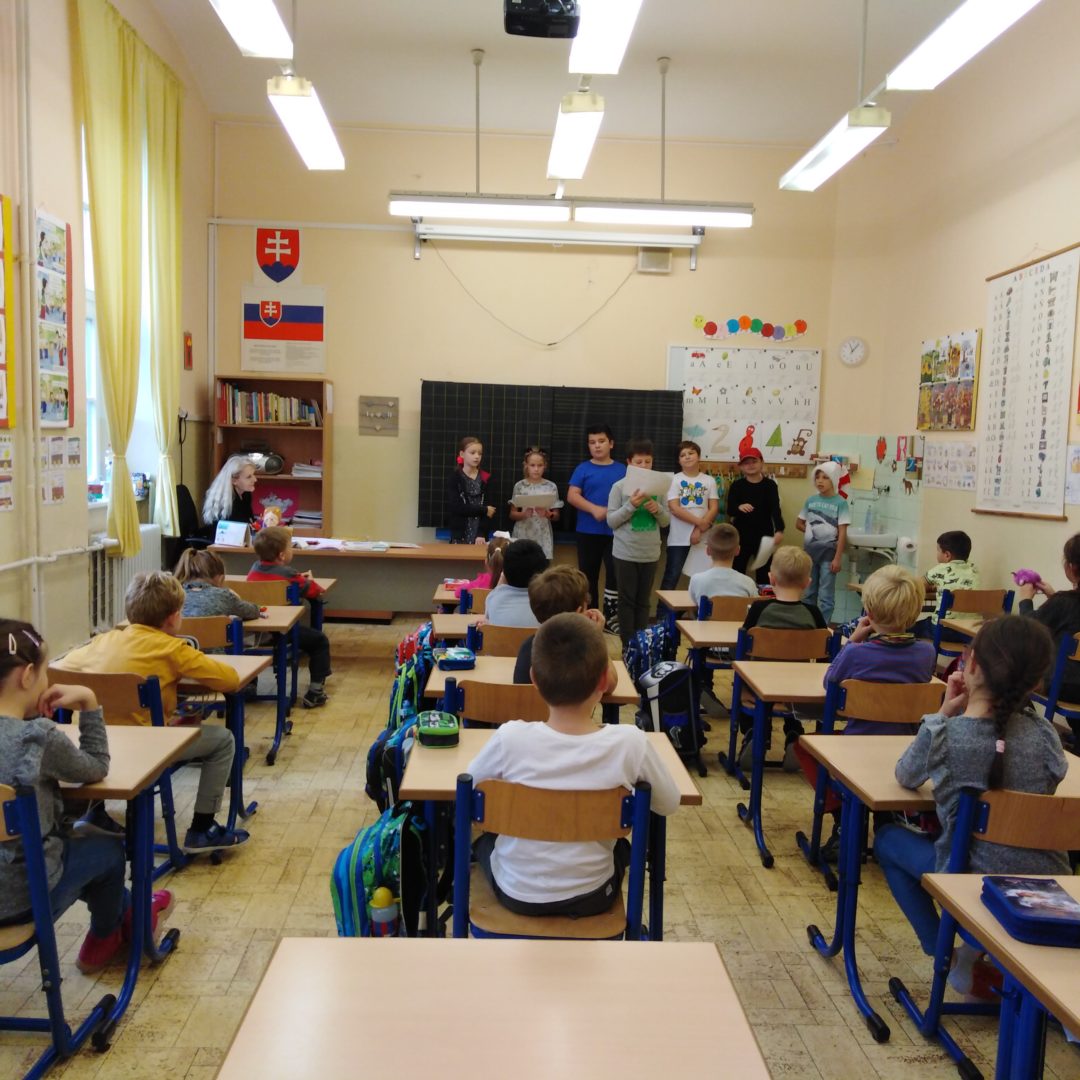 Žiaci zo 4. B si pripravili pre prvákov dramatizáciu úryvku z knižky Jirího Trnku Záhrada. Príbeh o zvieratkách sa im páčil. Keď sa naučia dobre čítať, knižku si prečítajú celú až do konca. Aj takto sa snažíme vzbudzovať záujem detí o literatúru a motivovať ich k zlepšovaniu čitateľských zručností.
