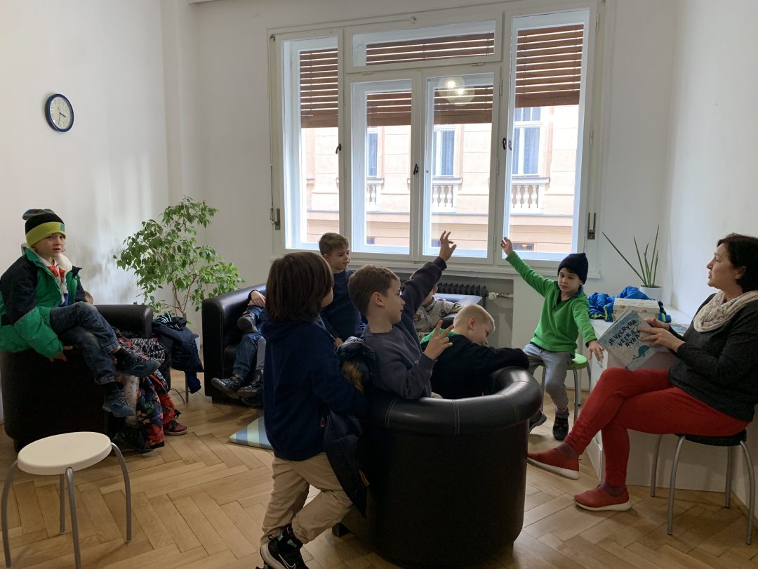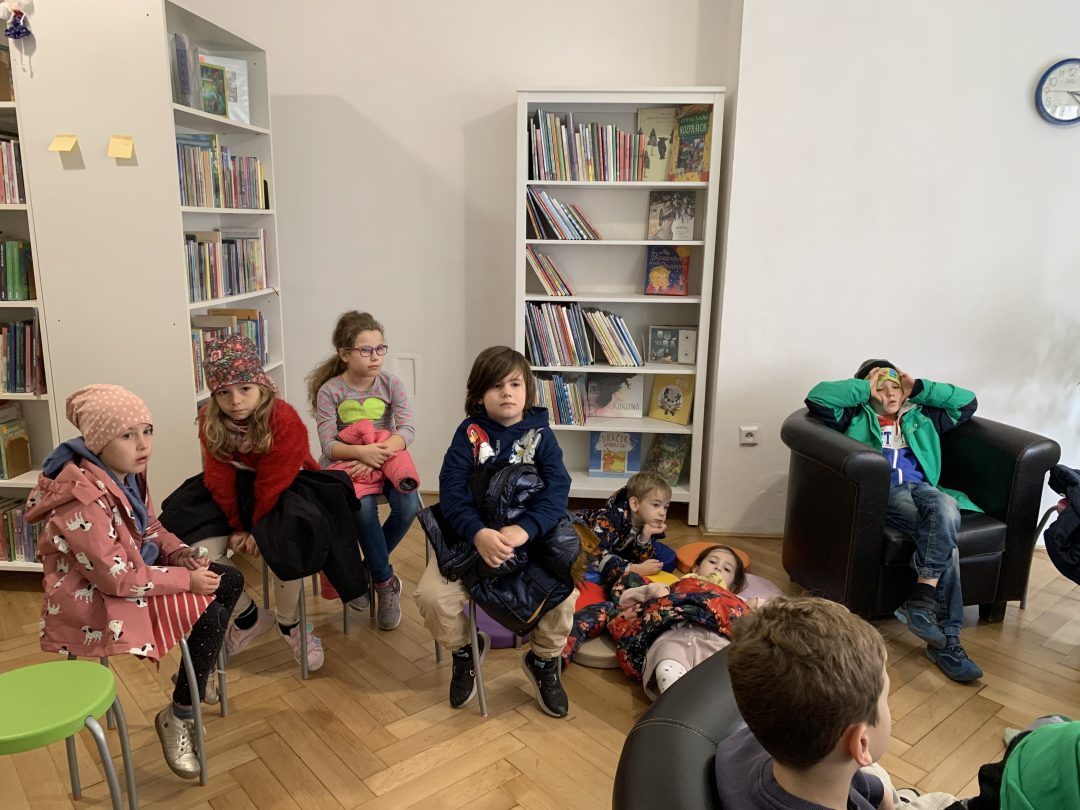 Návšteva v Staromestskej knižnici sa naozaj vydarila – prváci boli na čítaní príbehu Veľryba Kita – je veľryba len veľká ryba? Krásny príbeh plný kamarátstiev, ale aj nových informácií prváčikov zaujal. Stihli sa zahrať aj hru na hádanie zvieratiek z rozprávok. A štvrtáčky (ktoré už vedia o veľrybe Kite všetko) si zatiaľ vyhľadávali zaujímavosti v encyklopédiách a neskôr objavovali príbehy na voľnočasové čítanie.