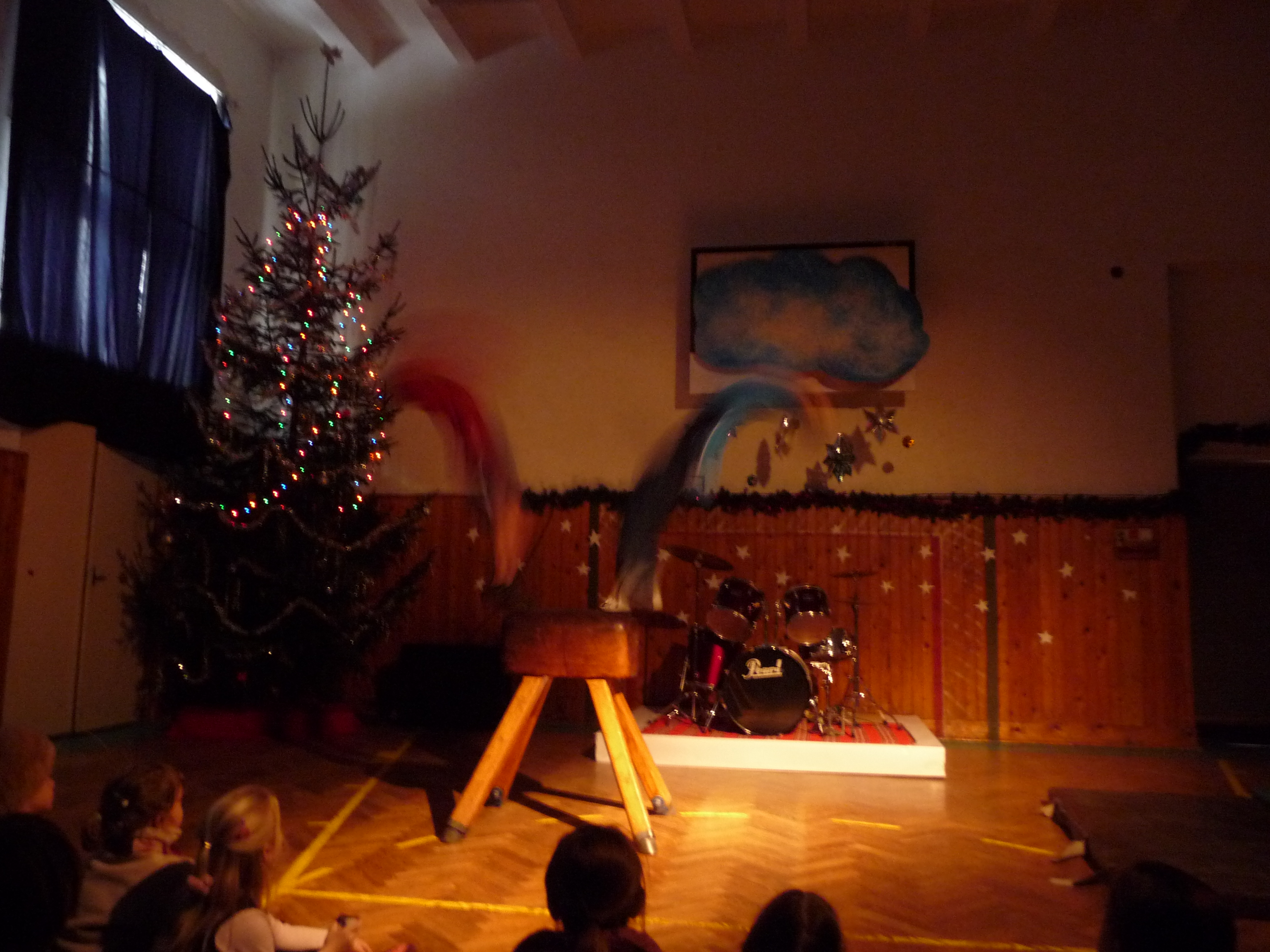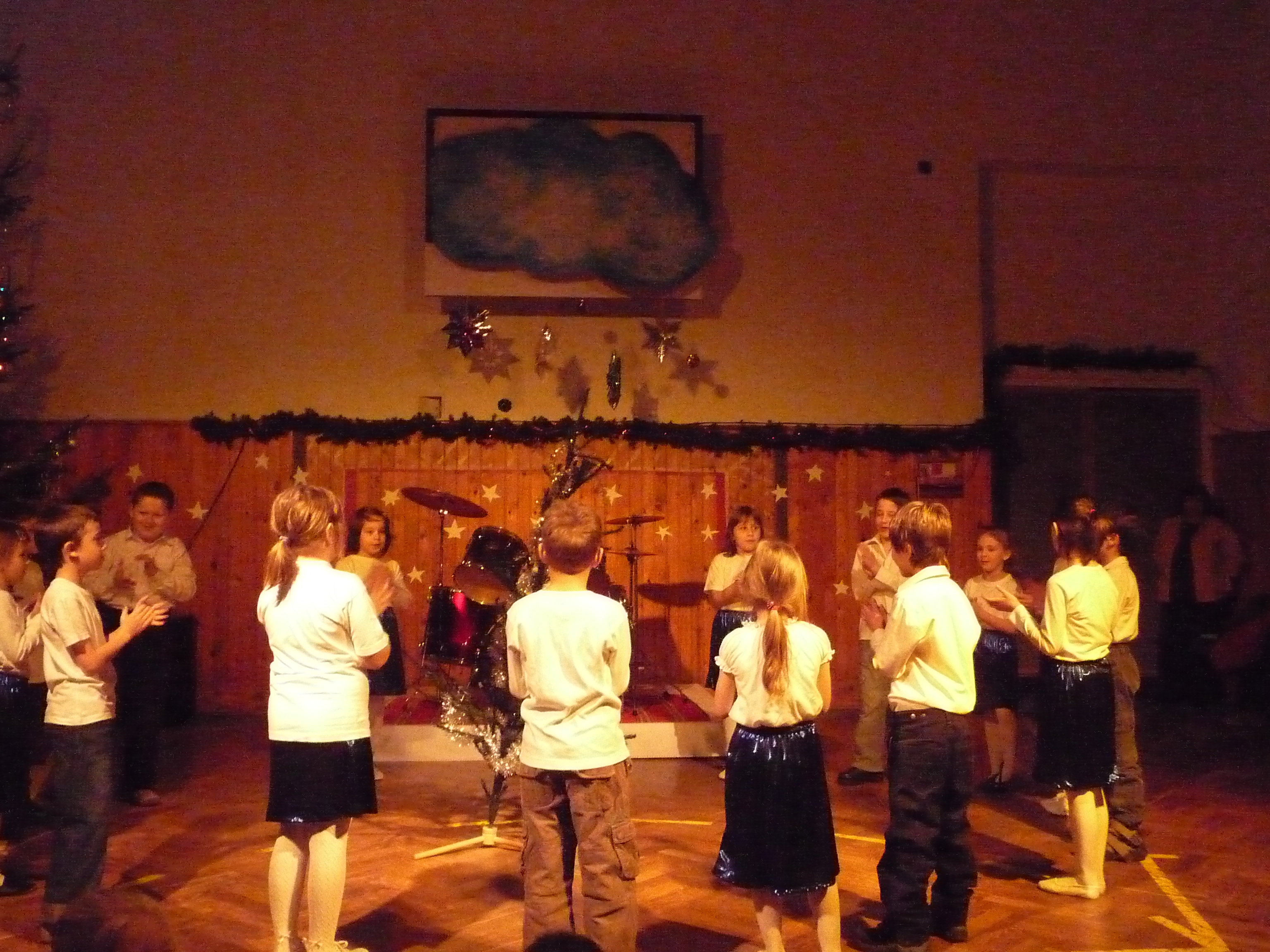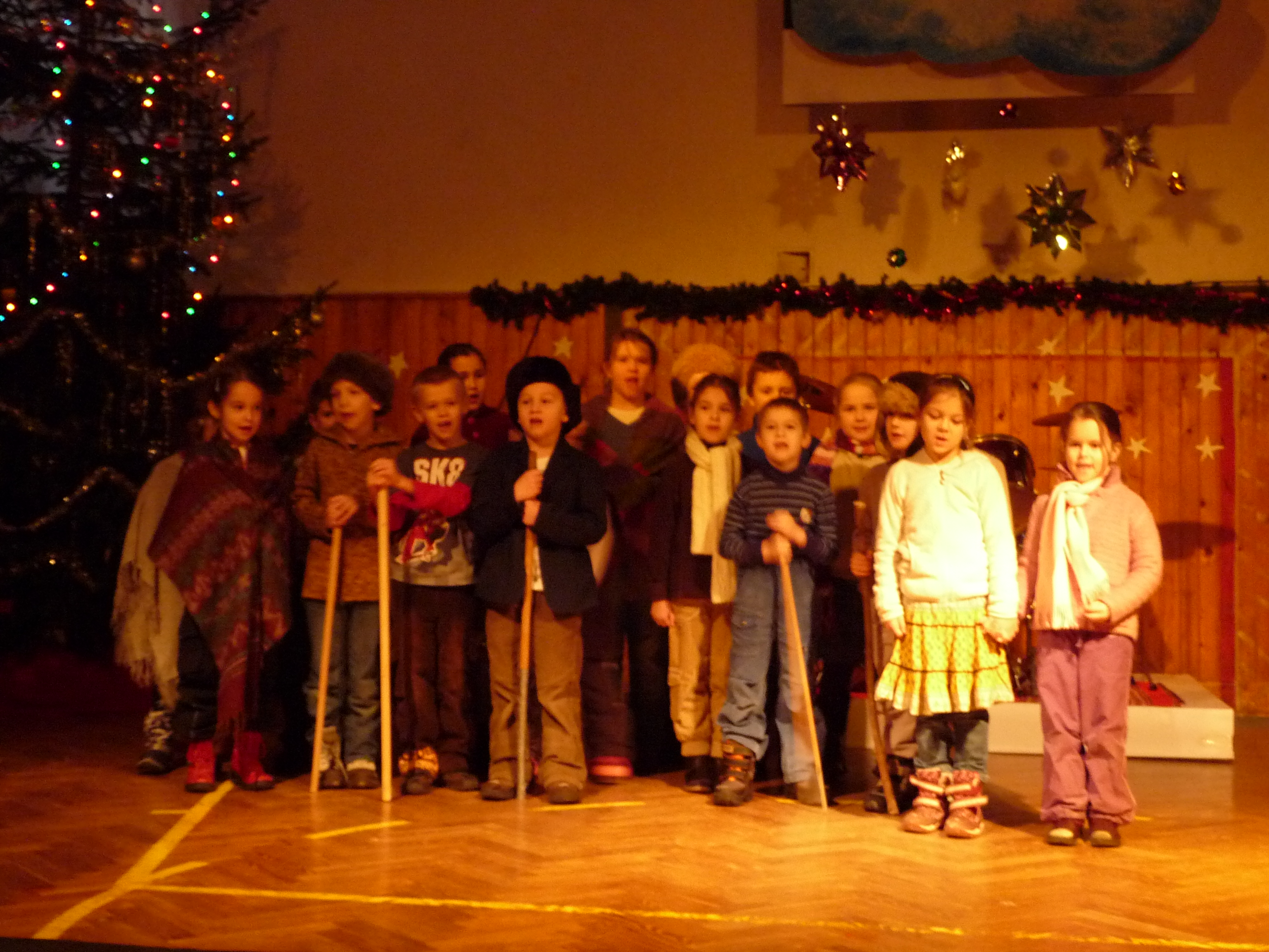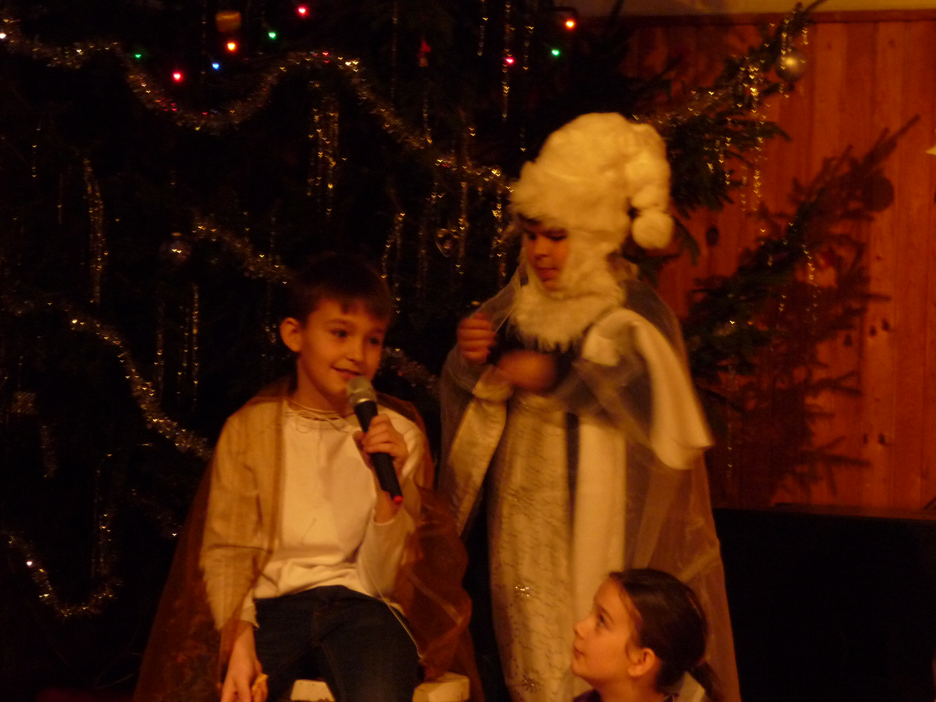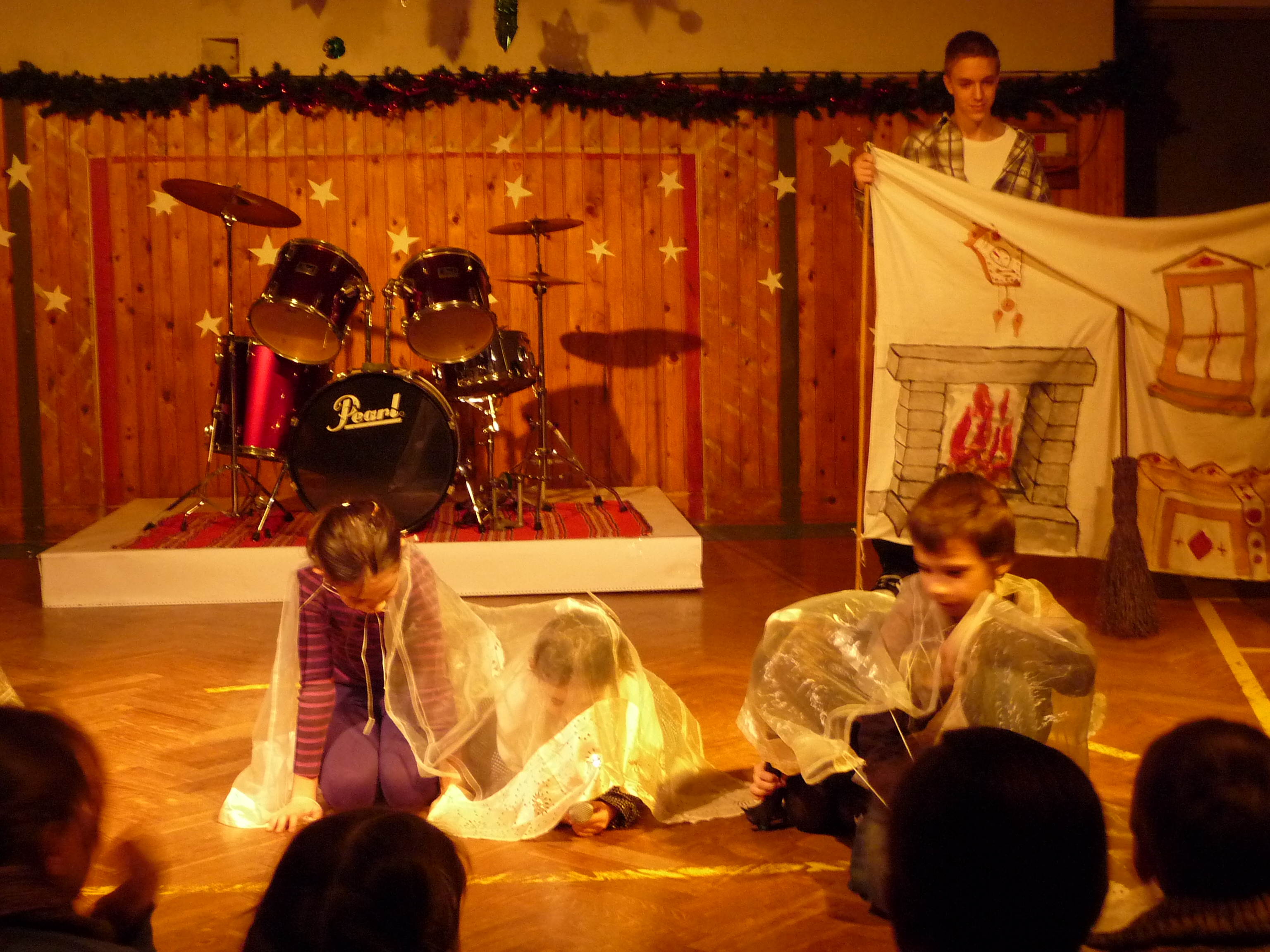 Na úvod sa nám predstavili koledníci a vinšovníci z prvého stupňa, ktorí nám pripomenuli slovenské ľudové tradície. K Vianociam nepochybne patria aj rozprávky a snehová perina, preto nechýbali ani Tri oriešky pre Popolušku, O dvanástich mesiačikoch a Snehuliacke básničky s pravými hereckými výkonmi.