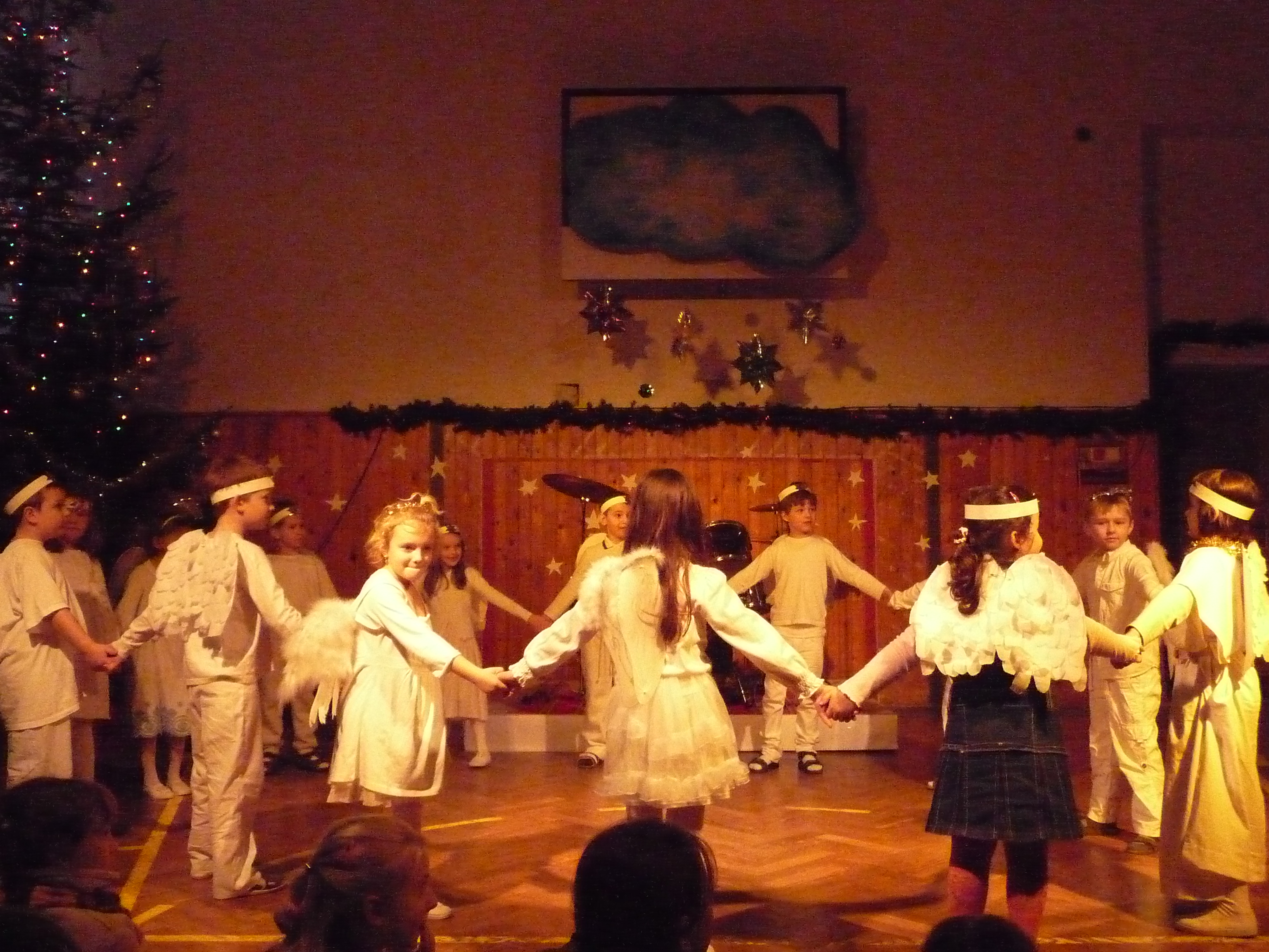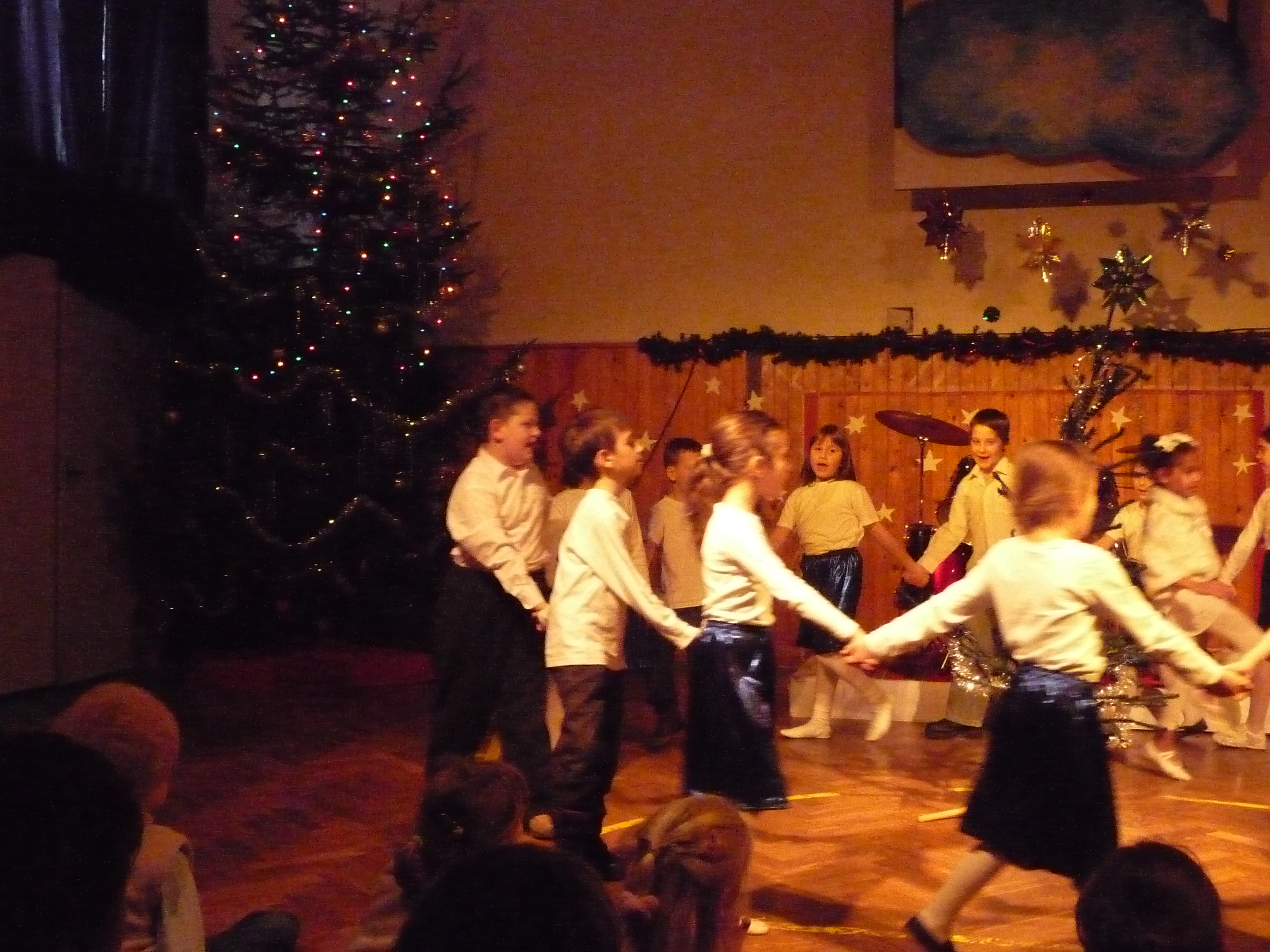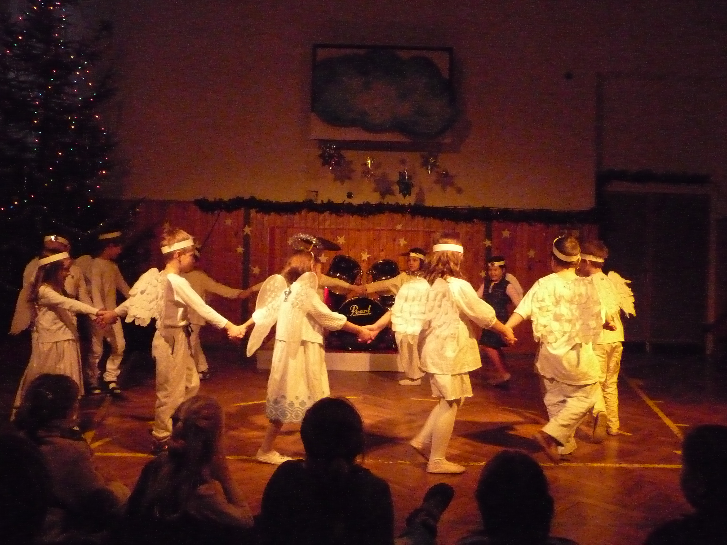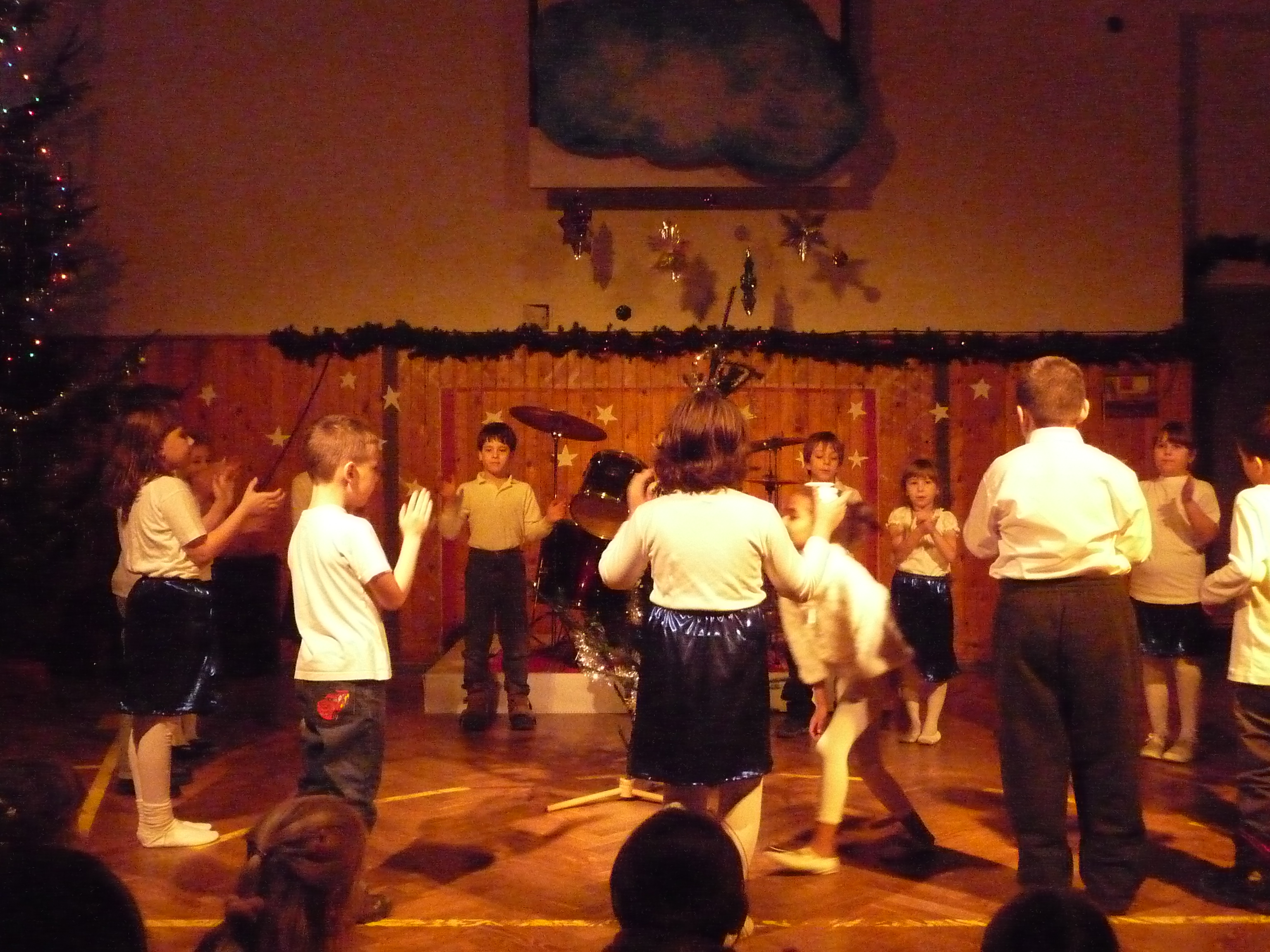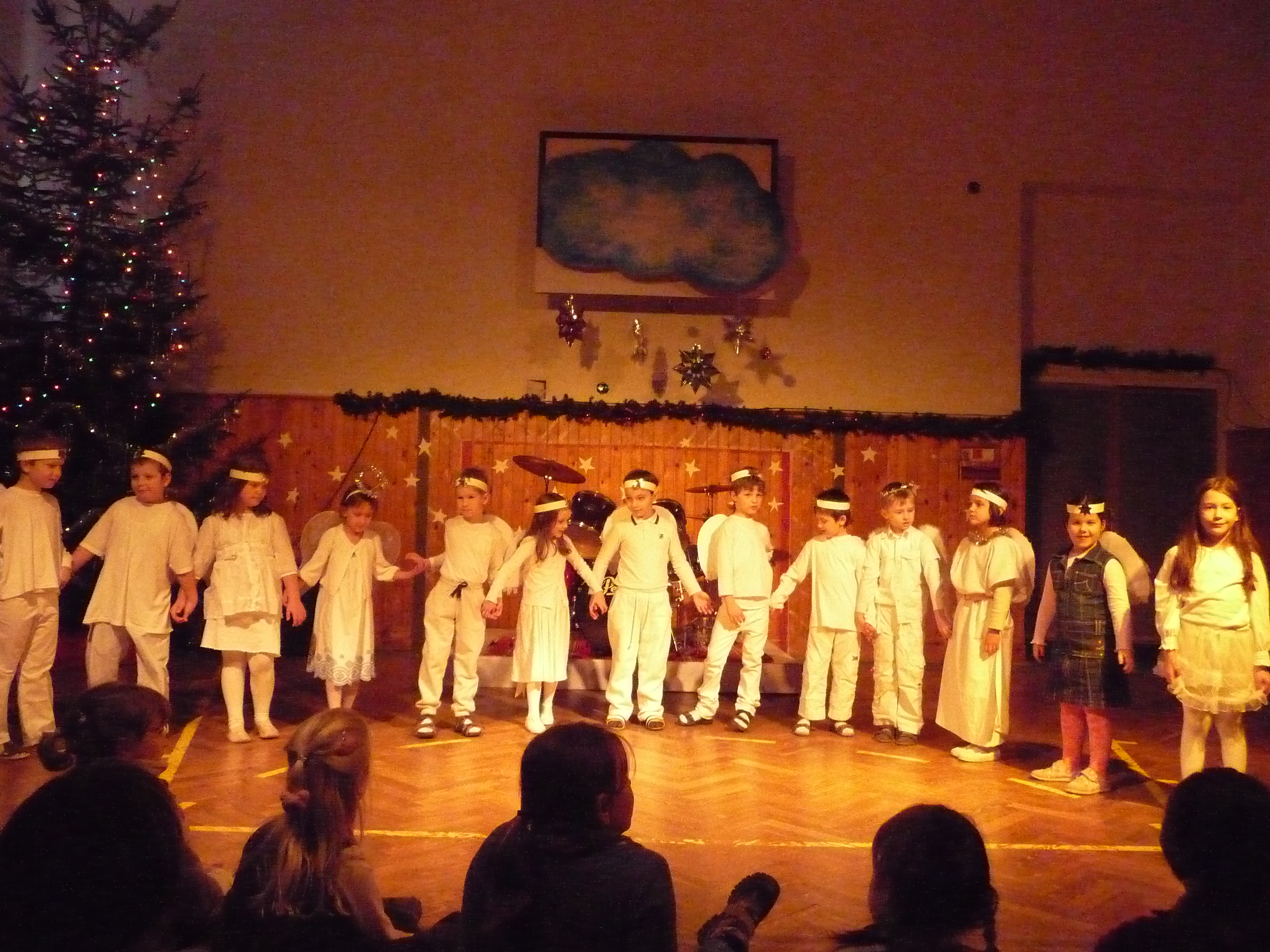 Na úvod sa nám predstavili koledníci a vinšovníci z prvého stupňa, ktorí nám pripomenuli slovenské ľudové tradície. K Vianociam nepochybne patria aj rozprávky a snehová perina, preto nechýbali ani Tri oriešky pre Popolušku, O dvanástich mesiačikoch a Snehuliacke básničky s pravými hereckými výkonmi.