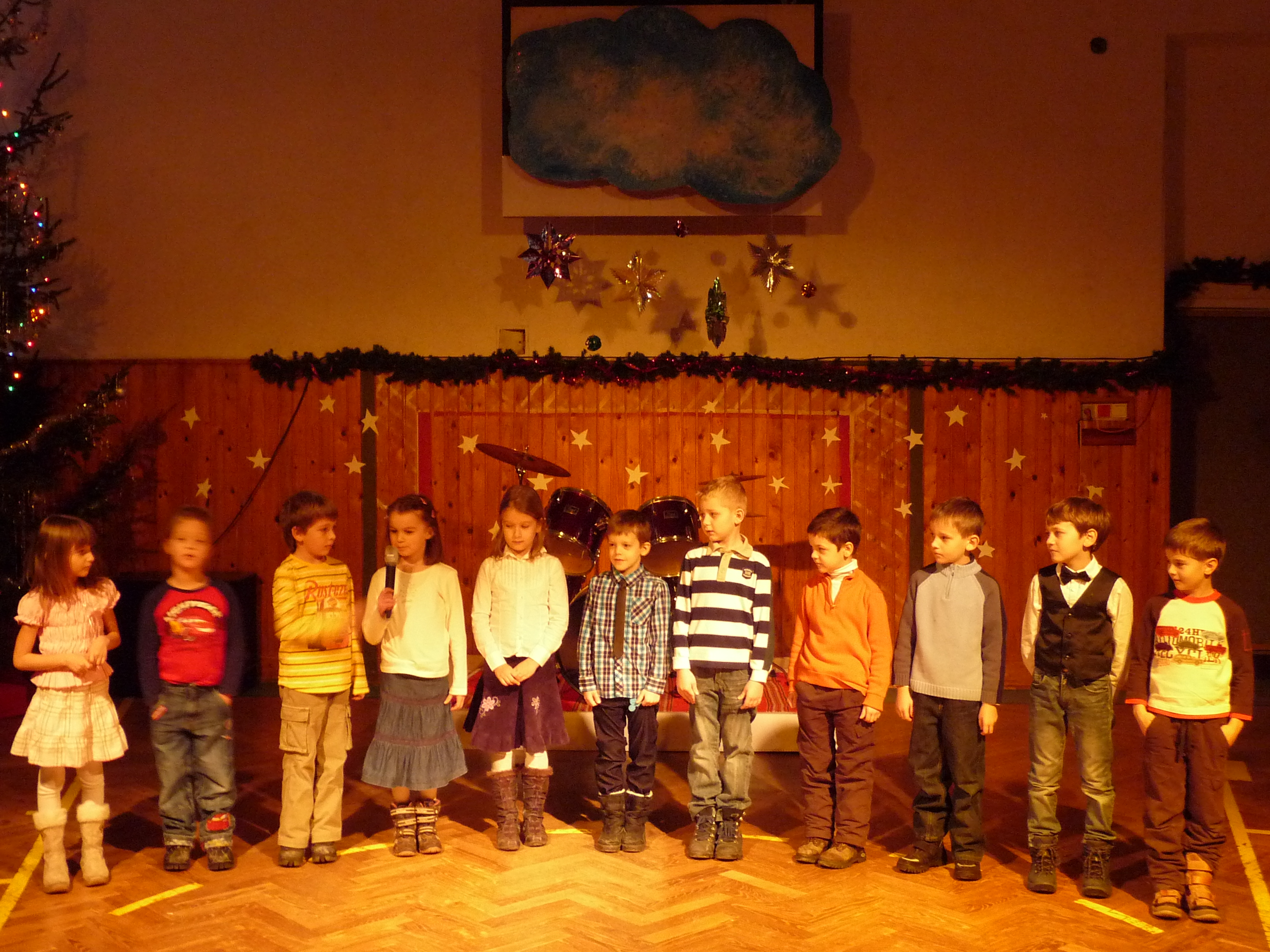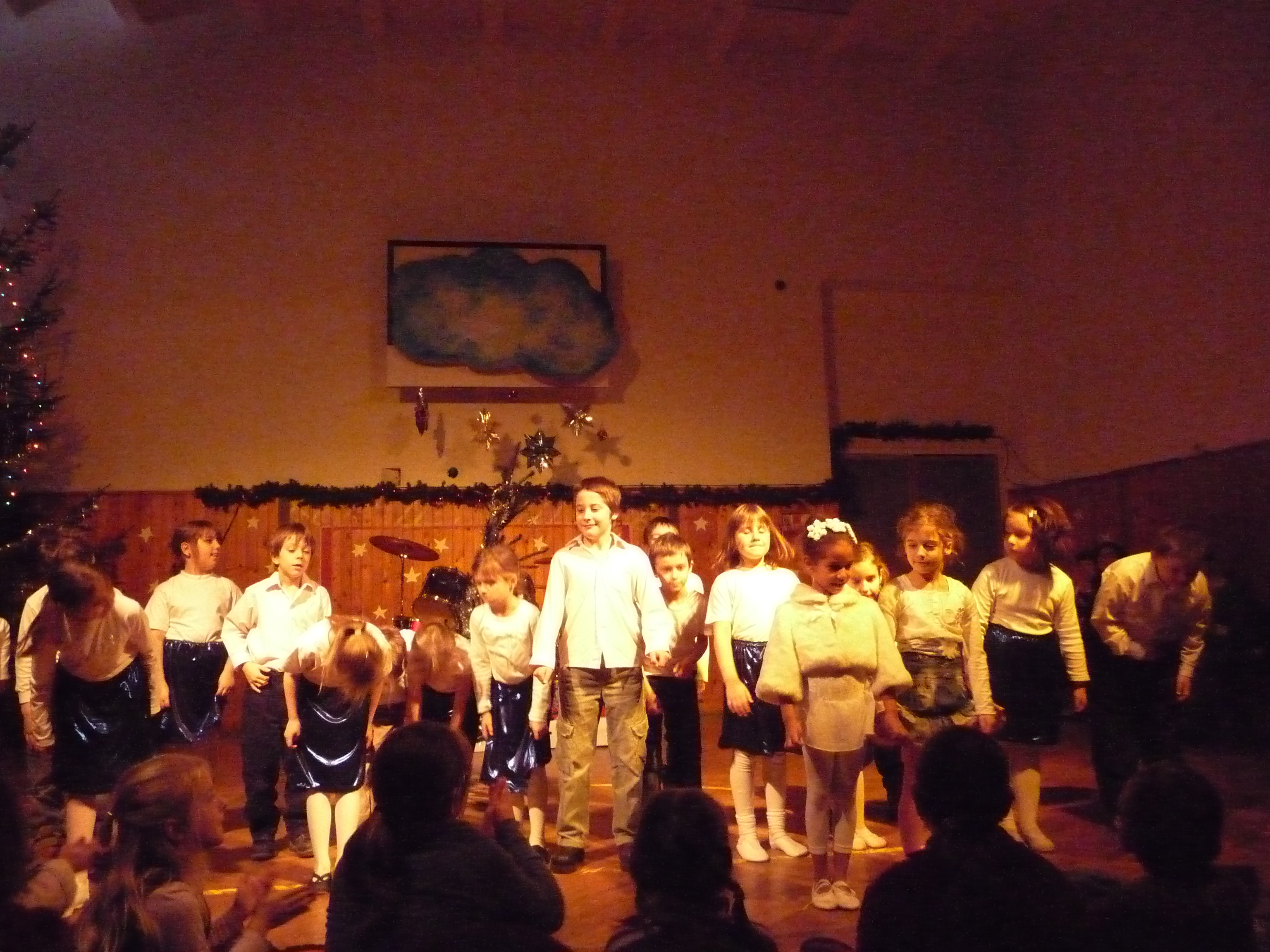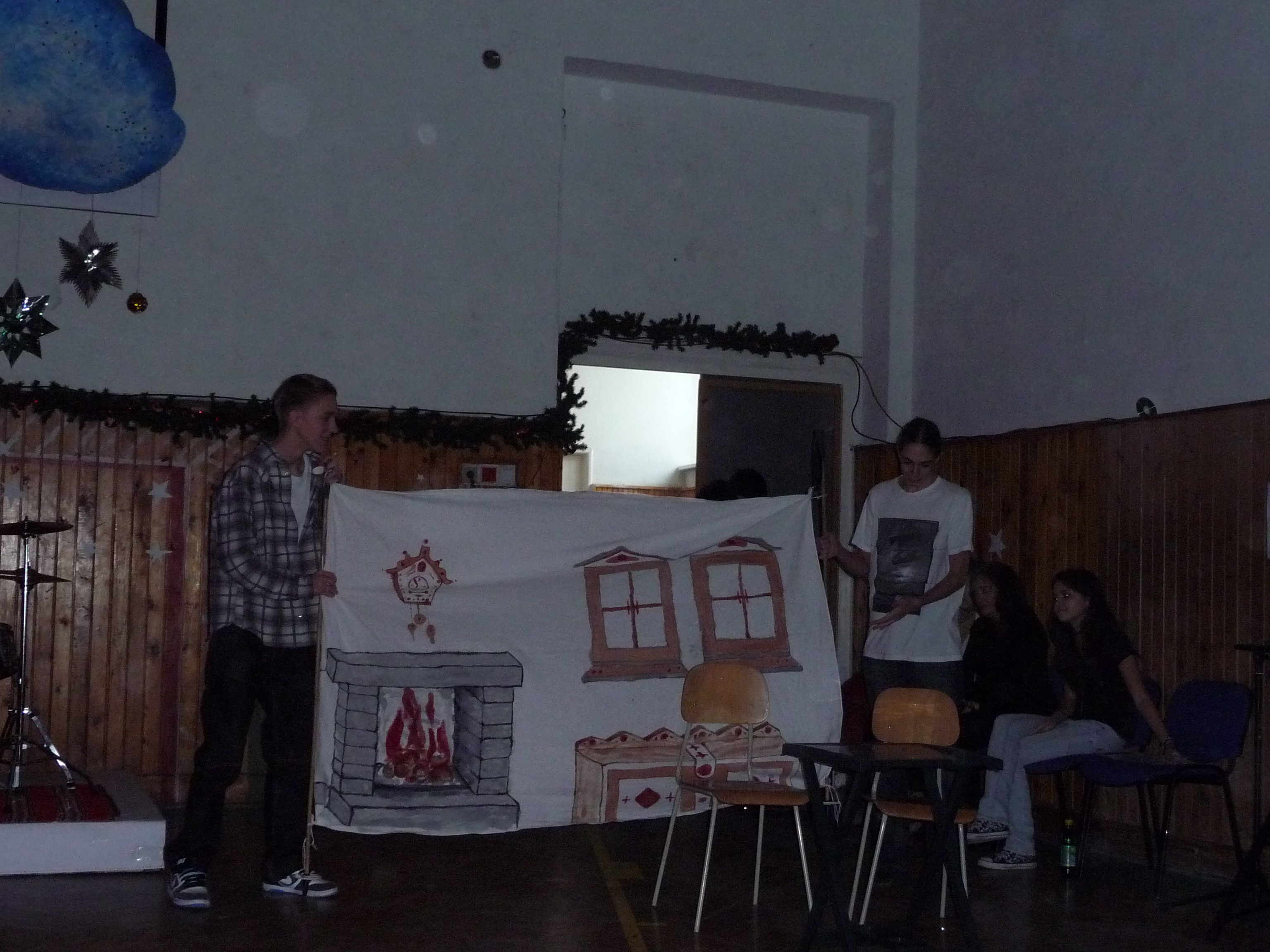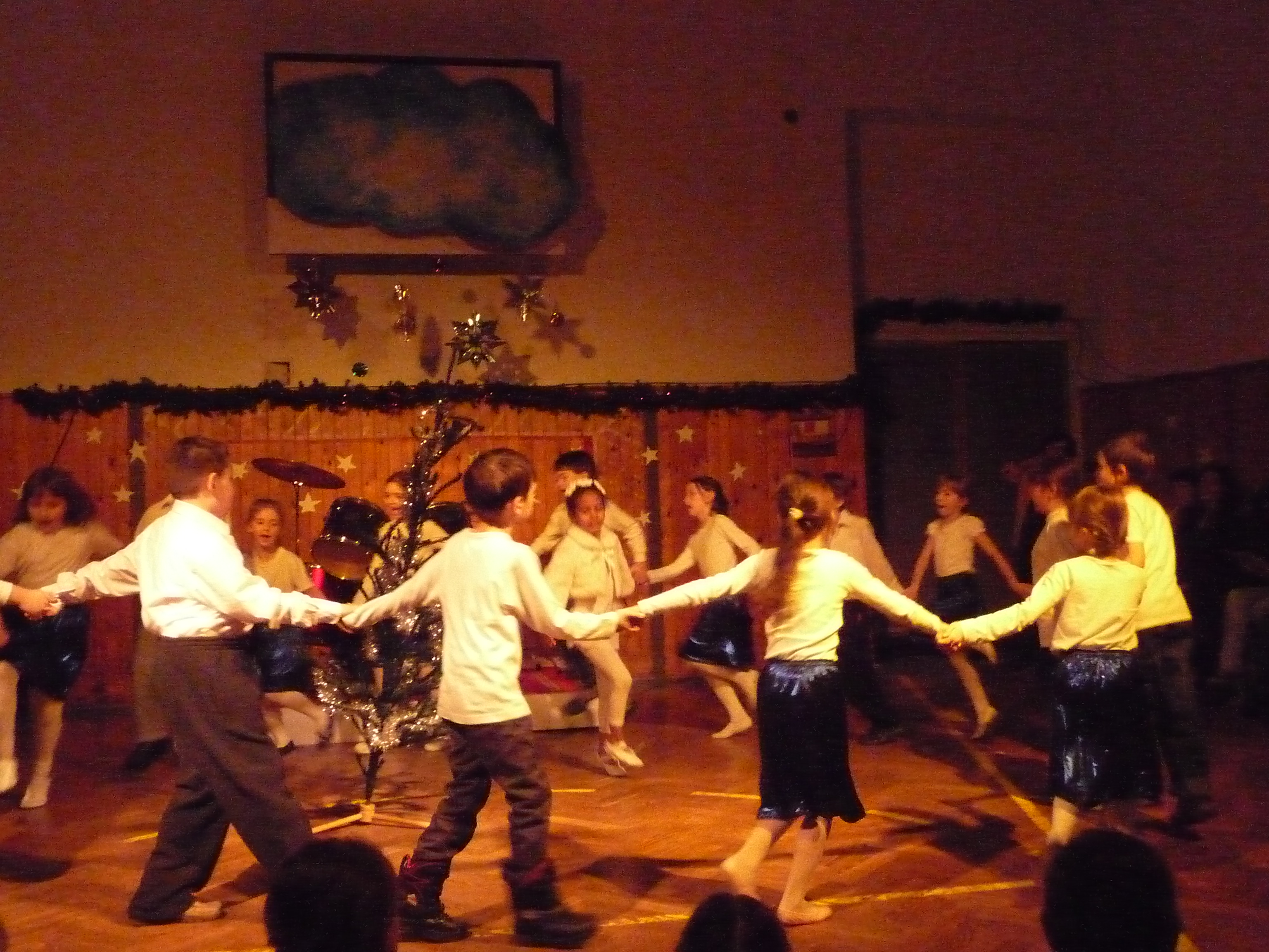 Na úvod sa nám predstavili koledníci a vinšovníci z prvého stupňa, ktorí nám pripomenuli slovenské ľudové tradície. K Vianociam nepochybne patria aj rozprávky a snehová perina, preto nechýbali ani Tri oriešky pre Popolušku, O dvanástich mesiačikoch a Snehuliacke básničky s pravými hereckými výkonmi.