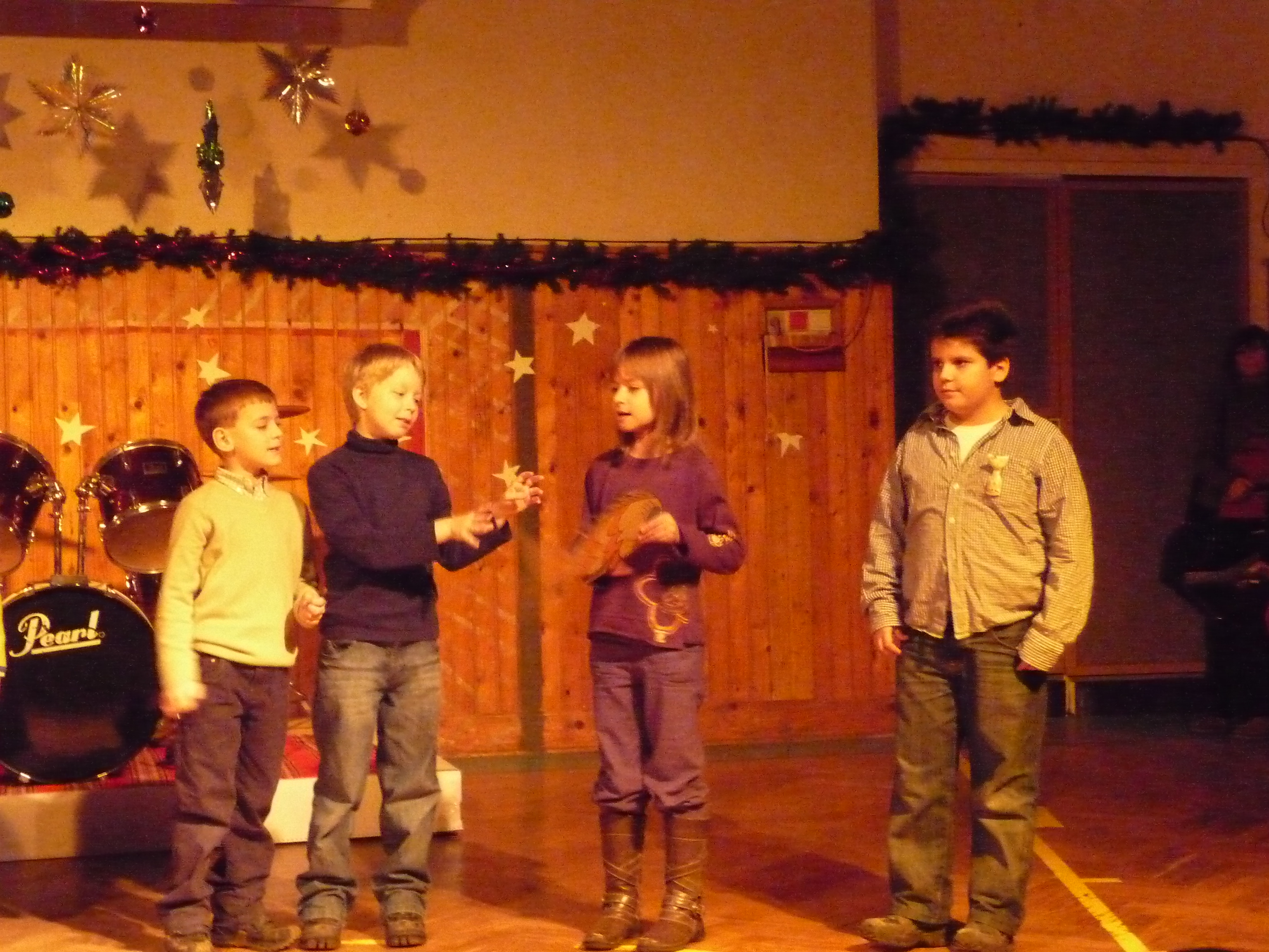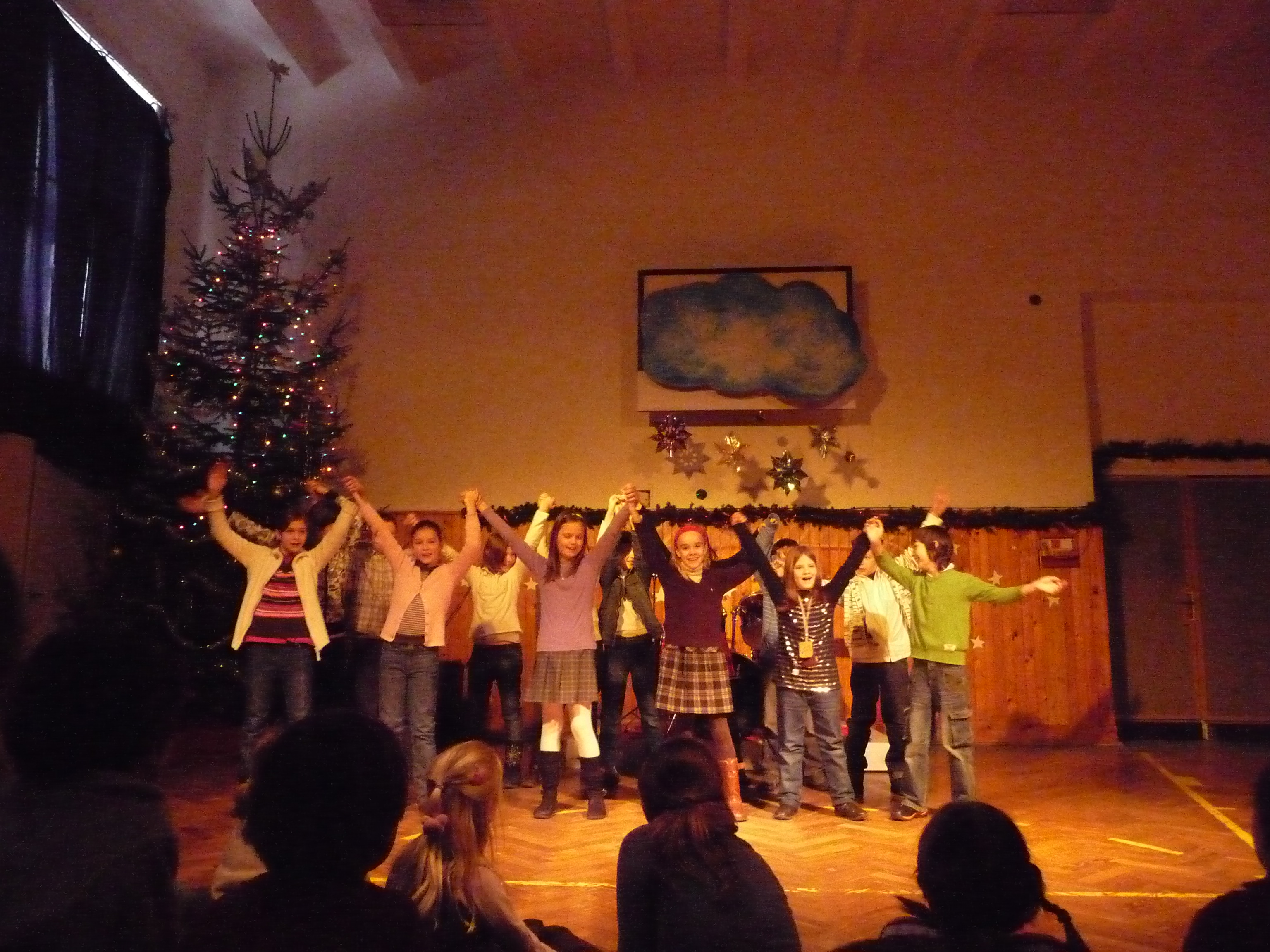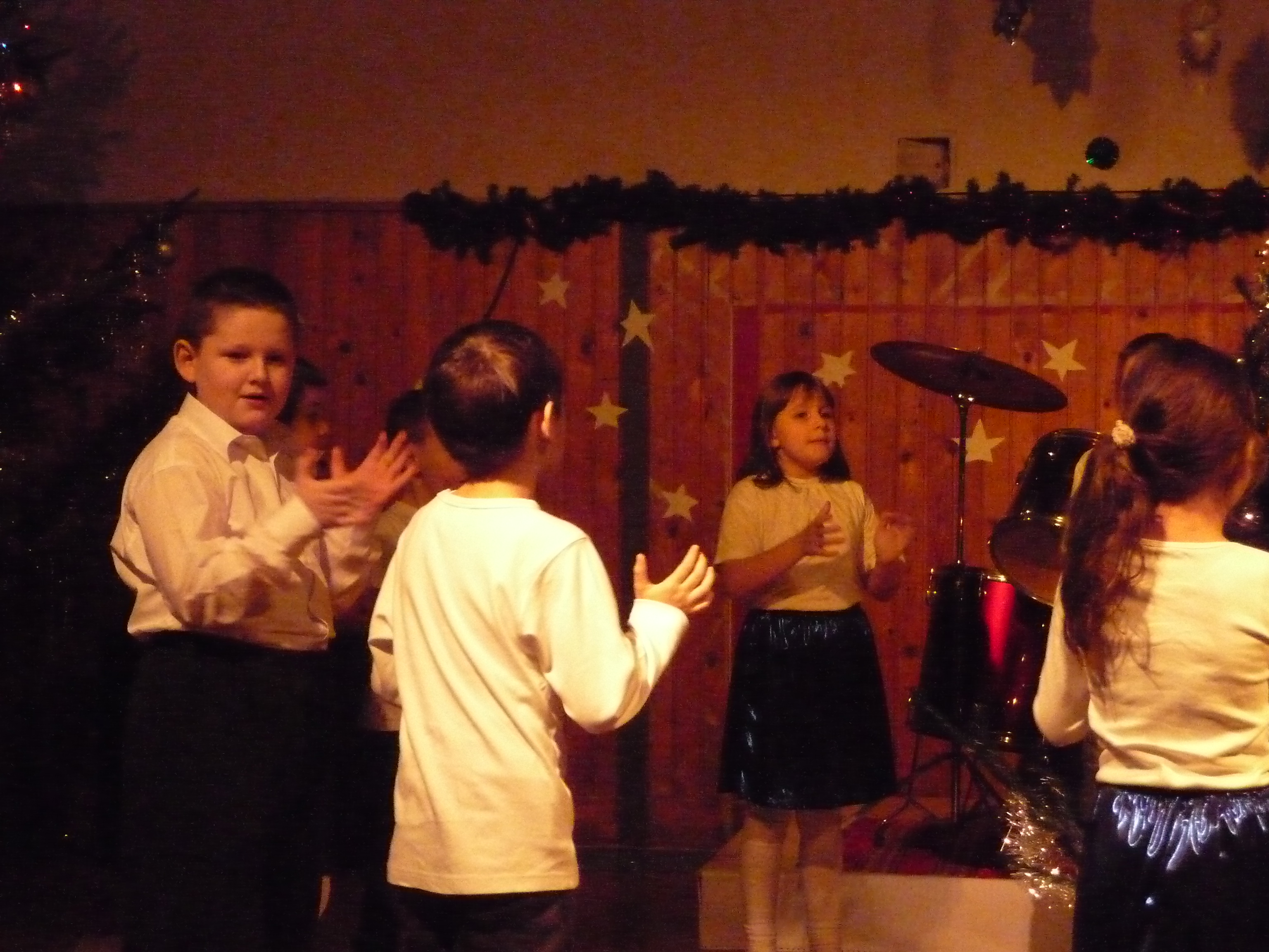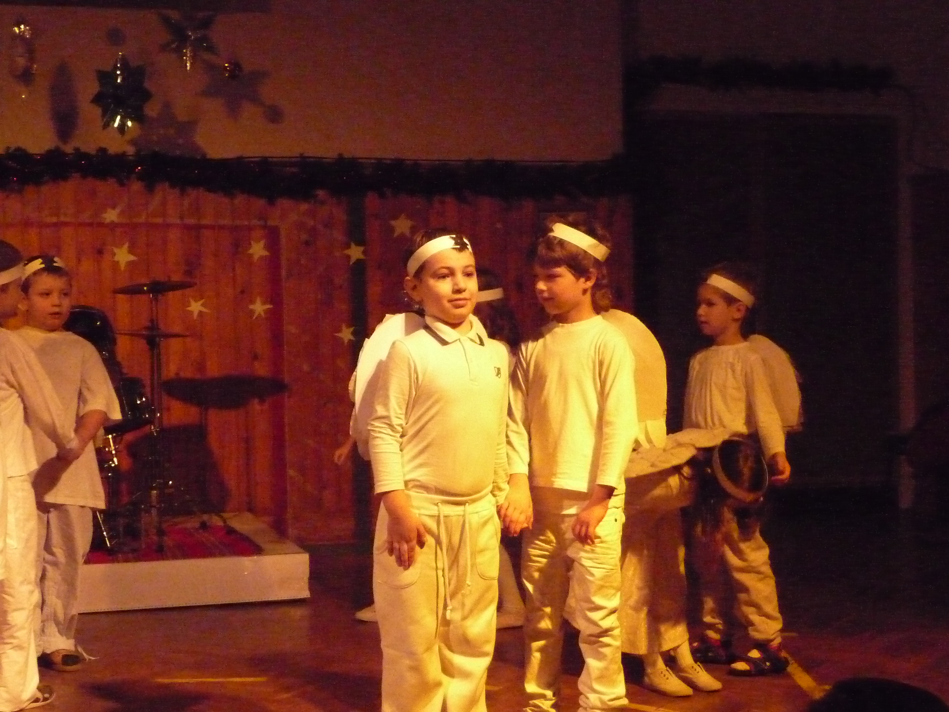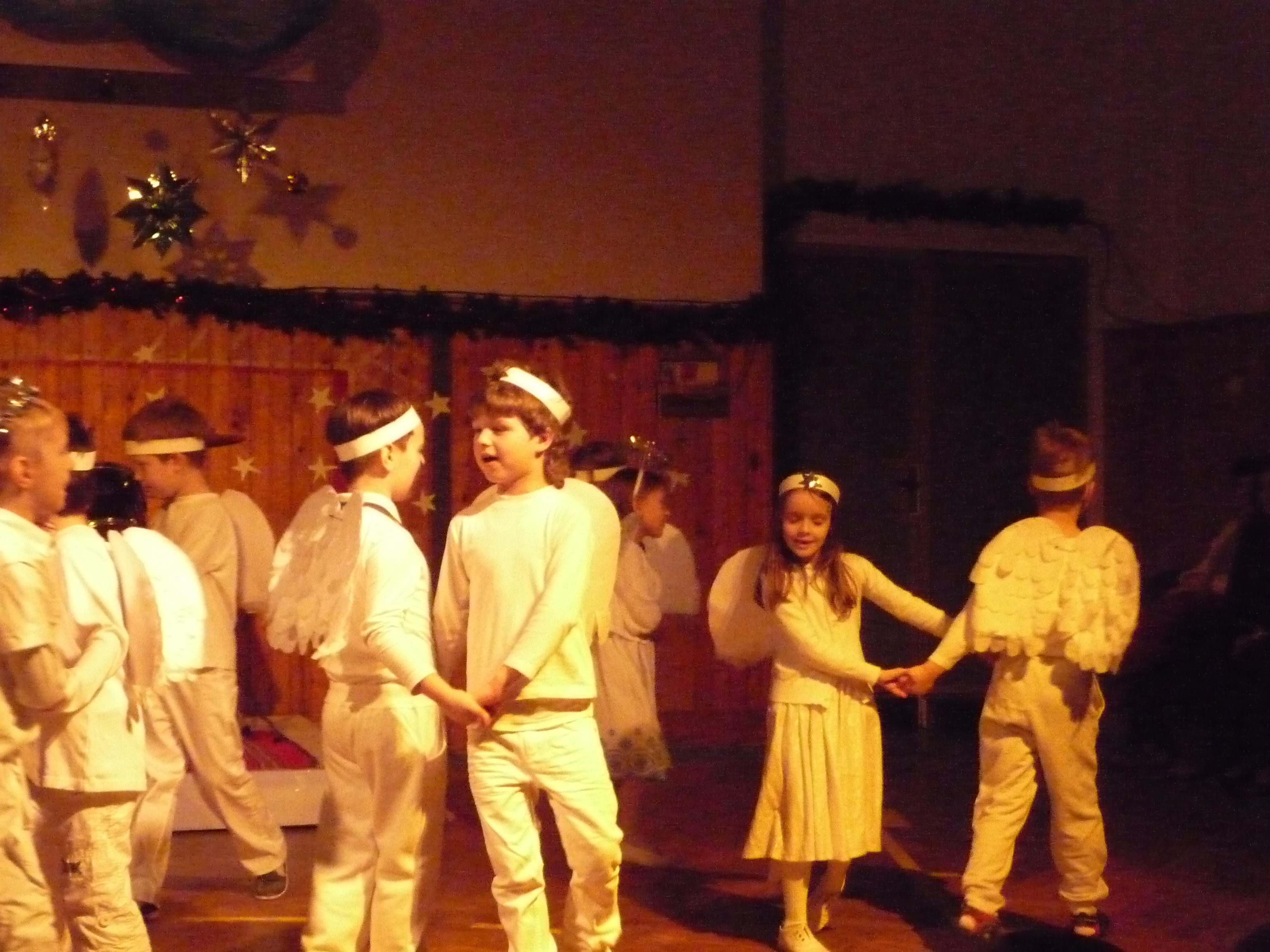 Na úvod sa nám predstavili koledníci a vinšovníci z prvého stupňa, ktorí nám pripomenuli slovenské ľudové tradície. K Vianociam nepochybne patria aj rozprávky a snehová perina, preto nechýbali ani Tri oriešky pre Popolušku, O dvanástich mesiačikoch a Snehuliacke básničky s pravými hereckými výkonmi.