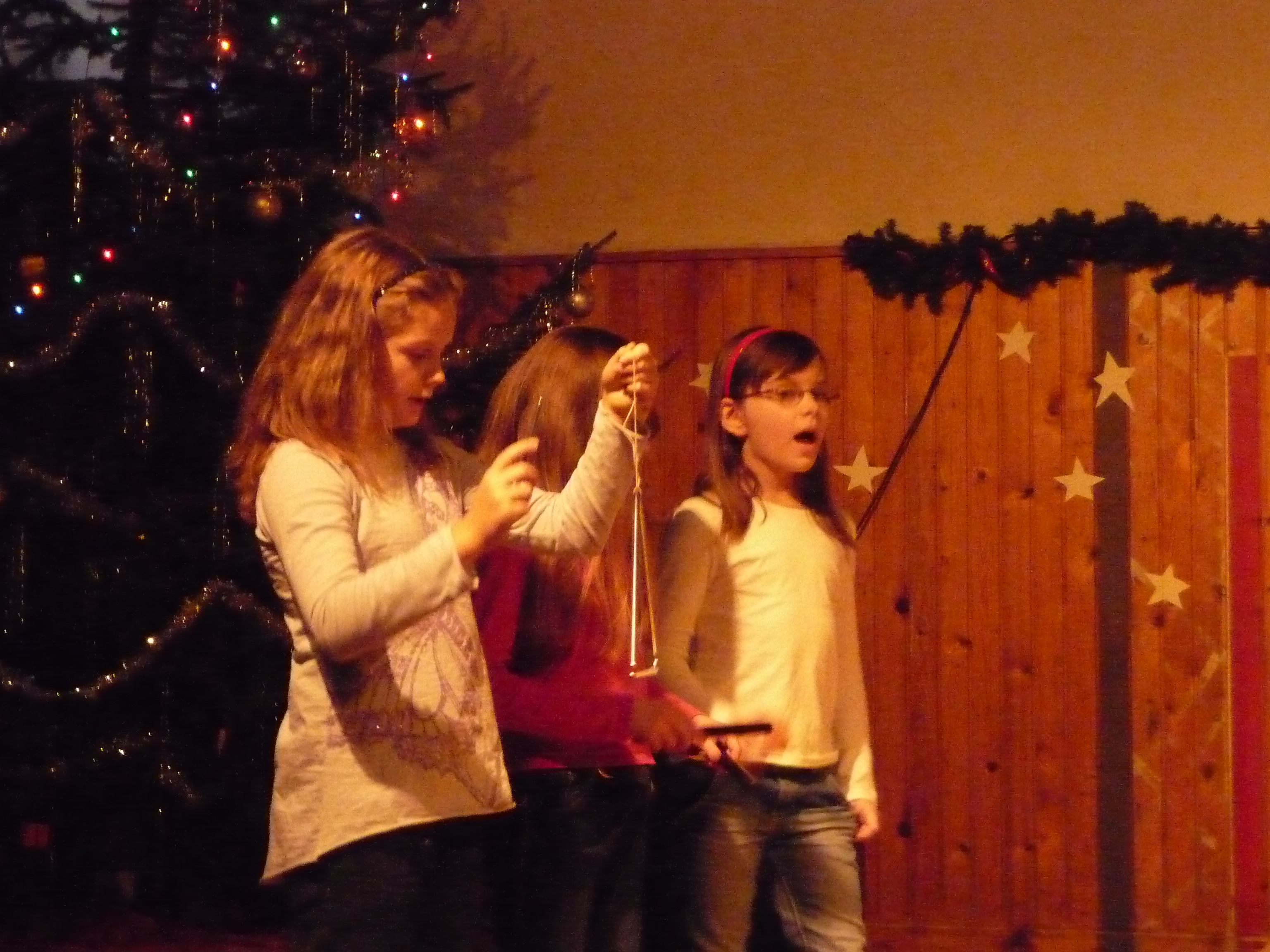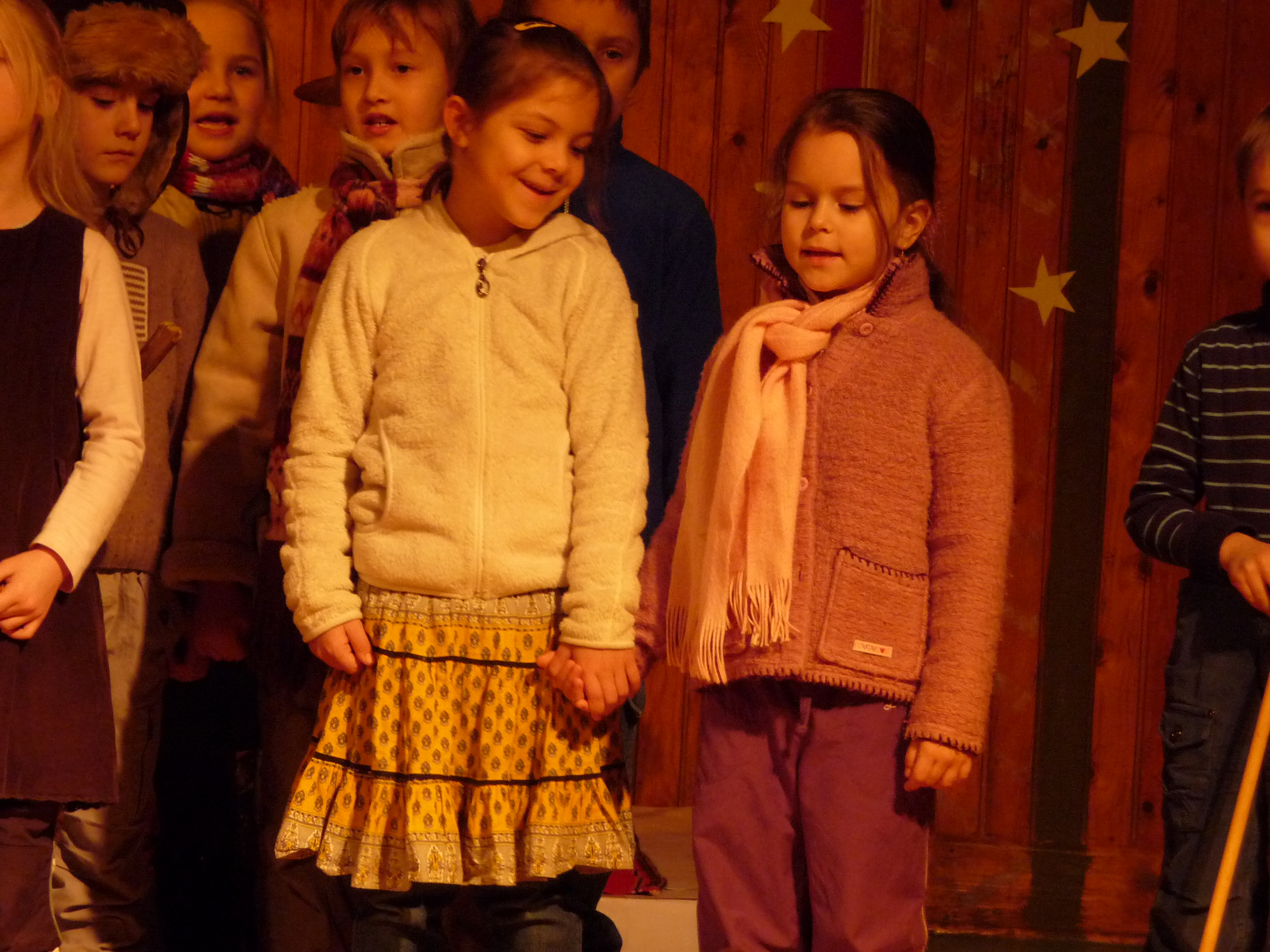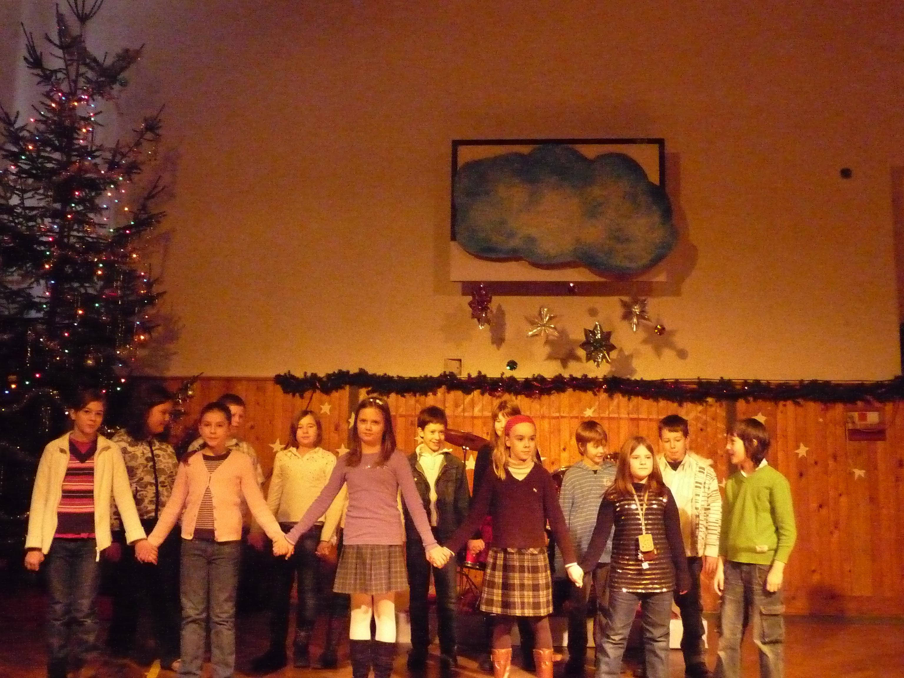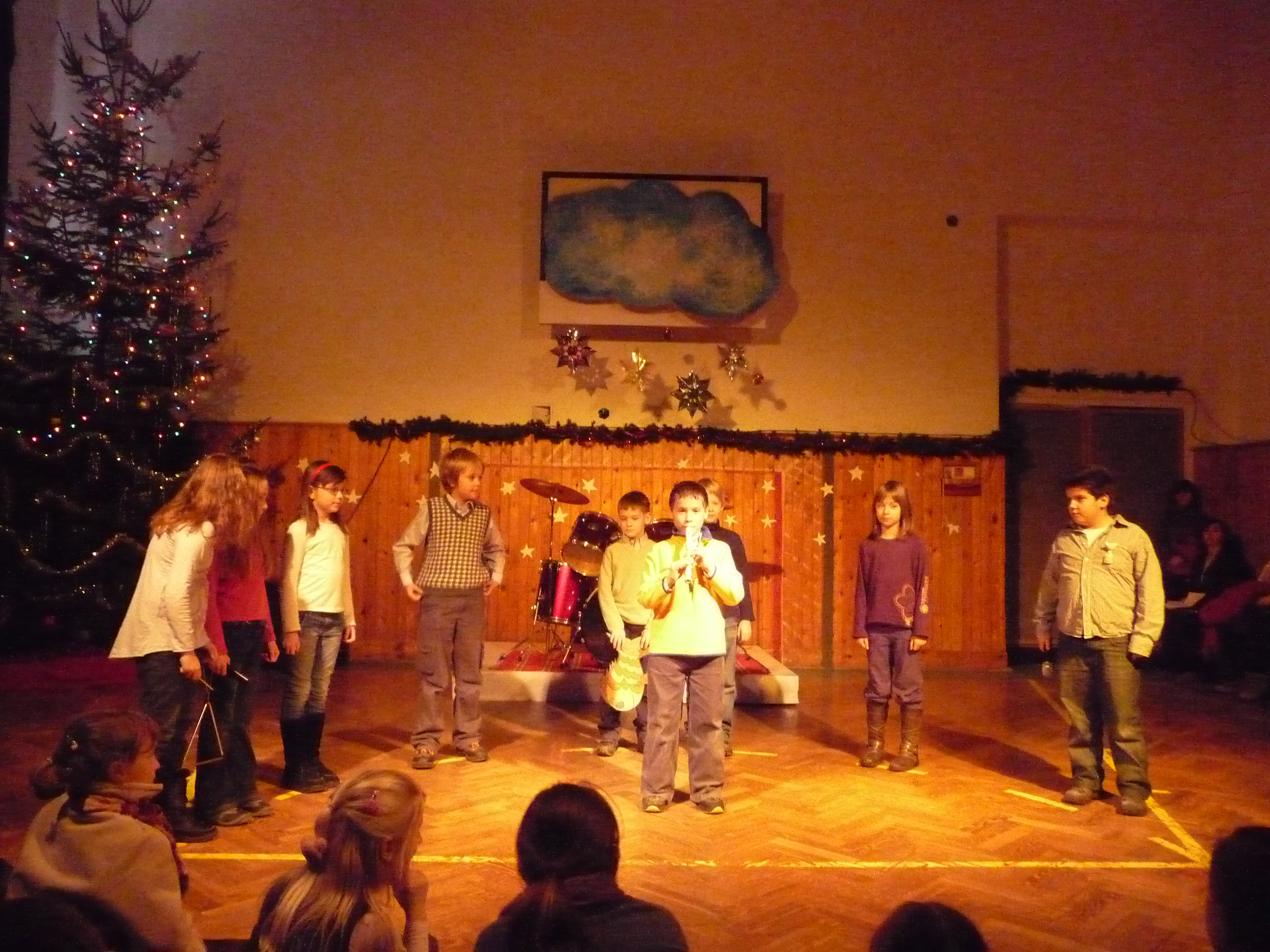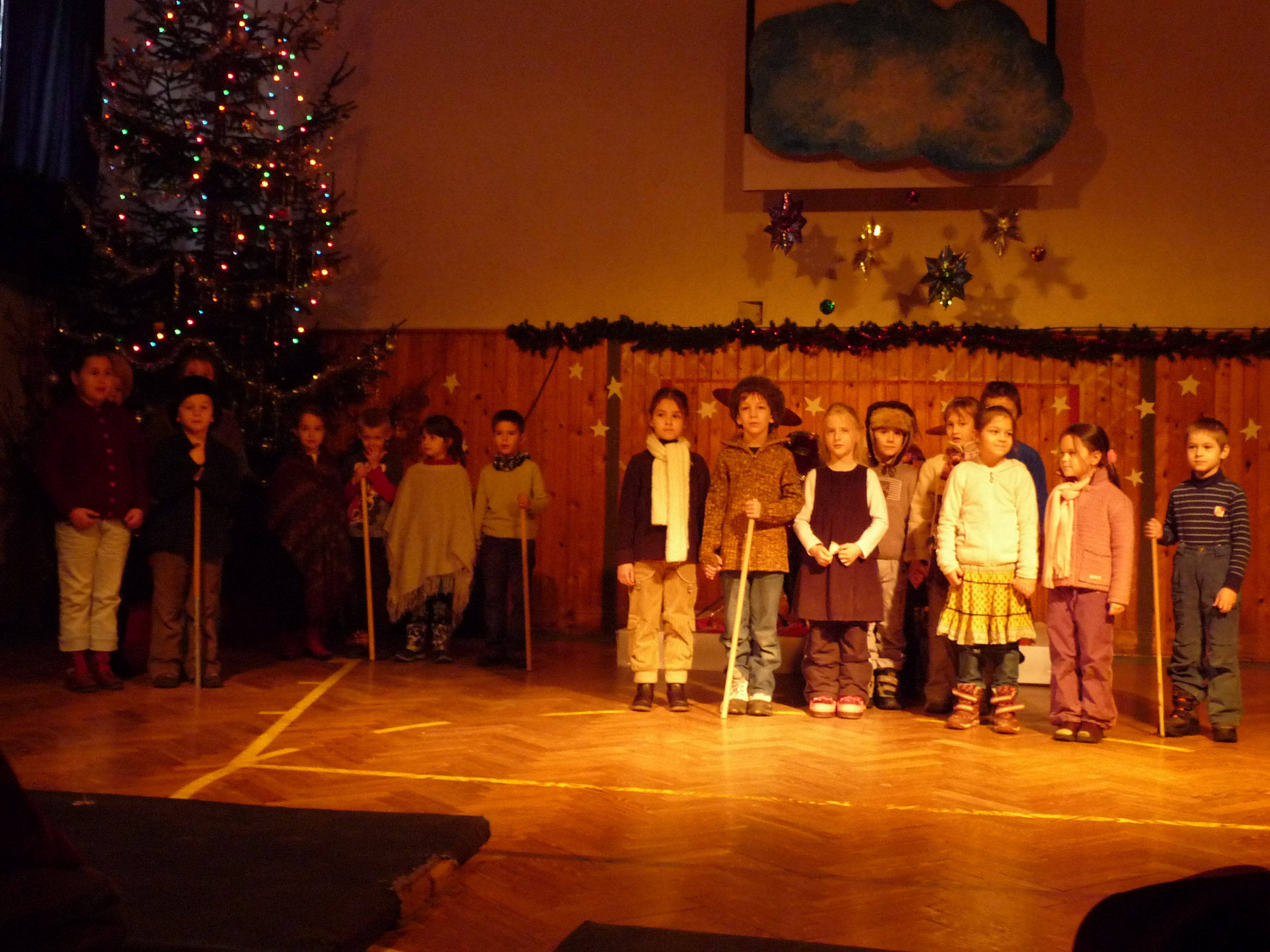 Na úvod sa nám predstavili koledníci a vinšovníci z prvého stupňa, ktorí nám pripomenuli slovenské ľudové tradície. K Vianociam nepochybne patria aj rozprávky a snehová perina, preto nechýbali ani Tri oriešky pre Popolušku, O dvanástich mesiačikoch a Snehuliacke básničky s pravými hereckými výkonmi.