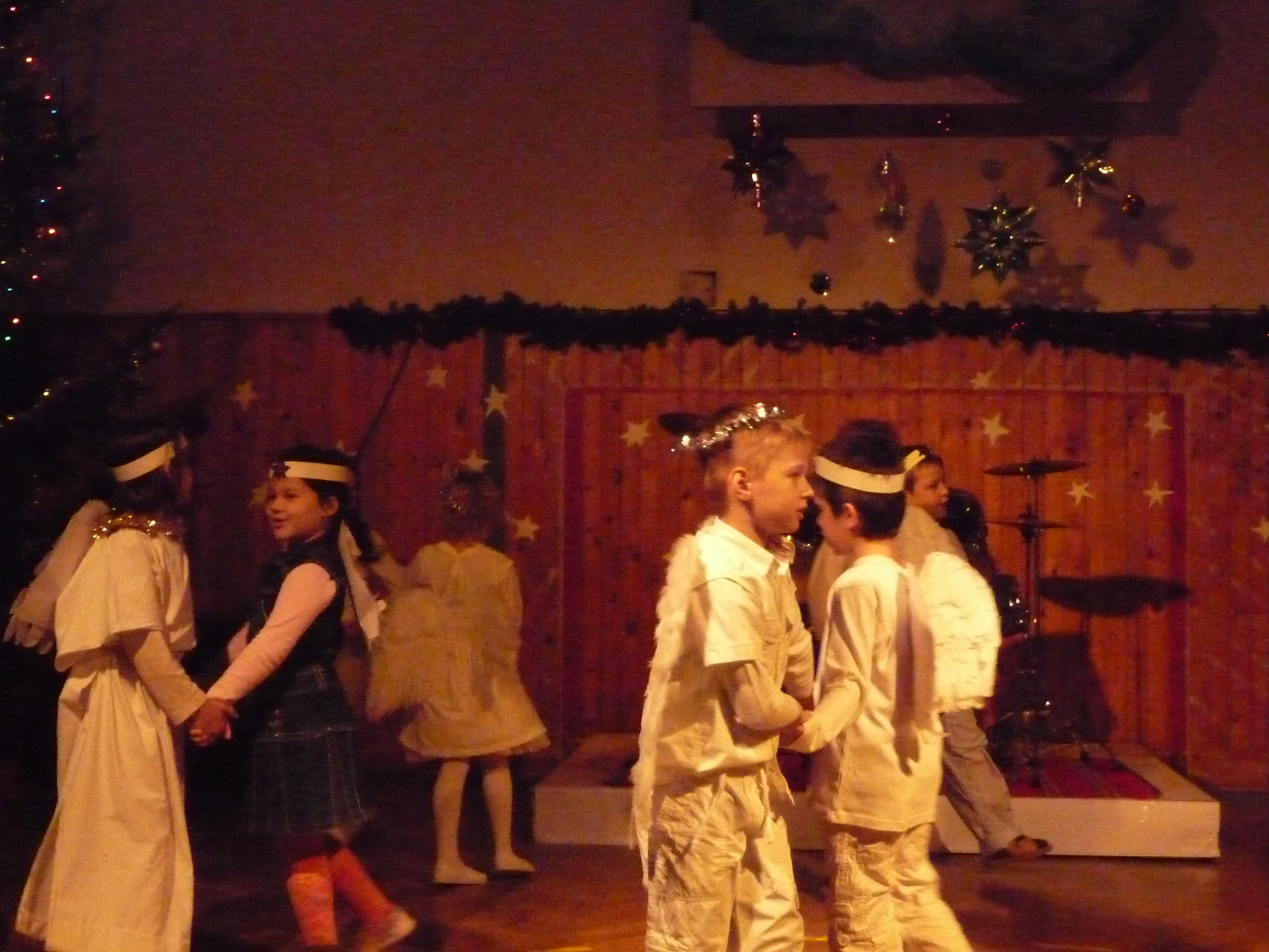 V ďalšej časti programu deti priblížili vianočnú atmosféru spoza hraníc Slovenska v ruštine, vo francúzštine a nemčine. Po krátkom anglickom vianočnom pásme videli prítomní, ako vyzerajú Anjelské Vianoce, spolu s účinkujúcimi hľadali malú Zatúlanú vločku. Predstavili sa nám aj sólisti v hre na gitare, klavíri a na husliach. Vo vianočnom programe sa zaskveli krásne slovenské ľudové tance a piesne. Nádherným spevom s vlastným hudobným sprievodom sa nám predstavila aj formácia Coco Bongo z IX. B triedy