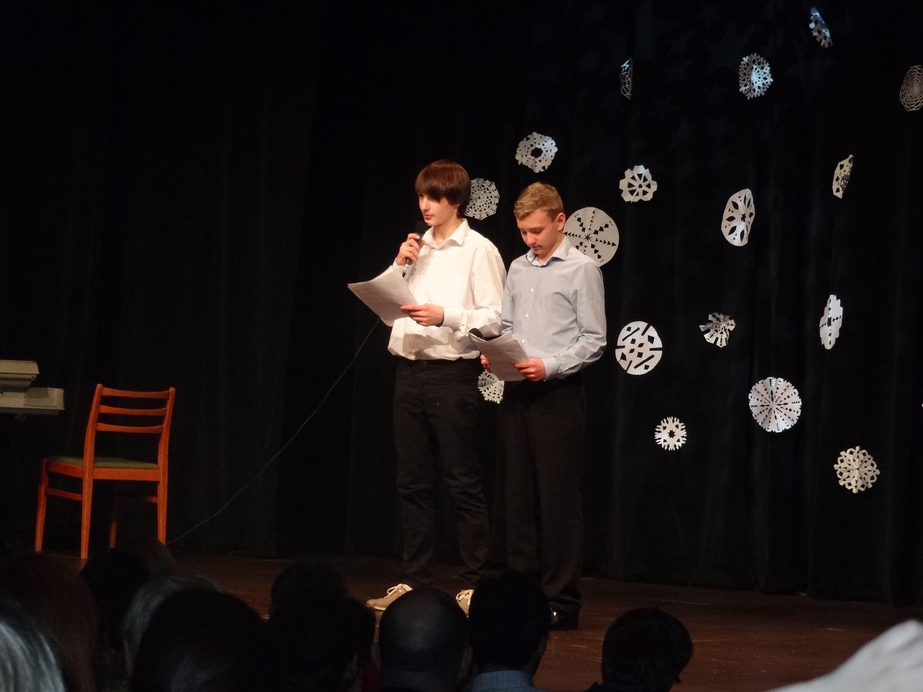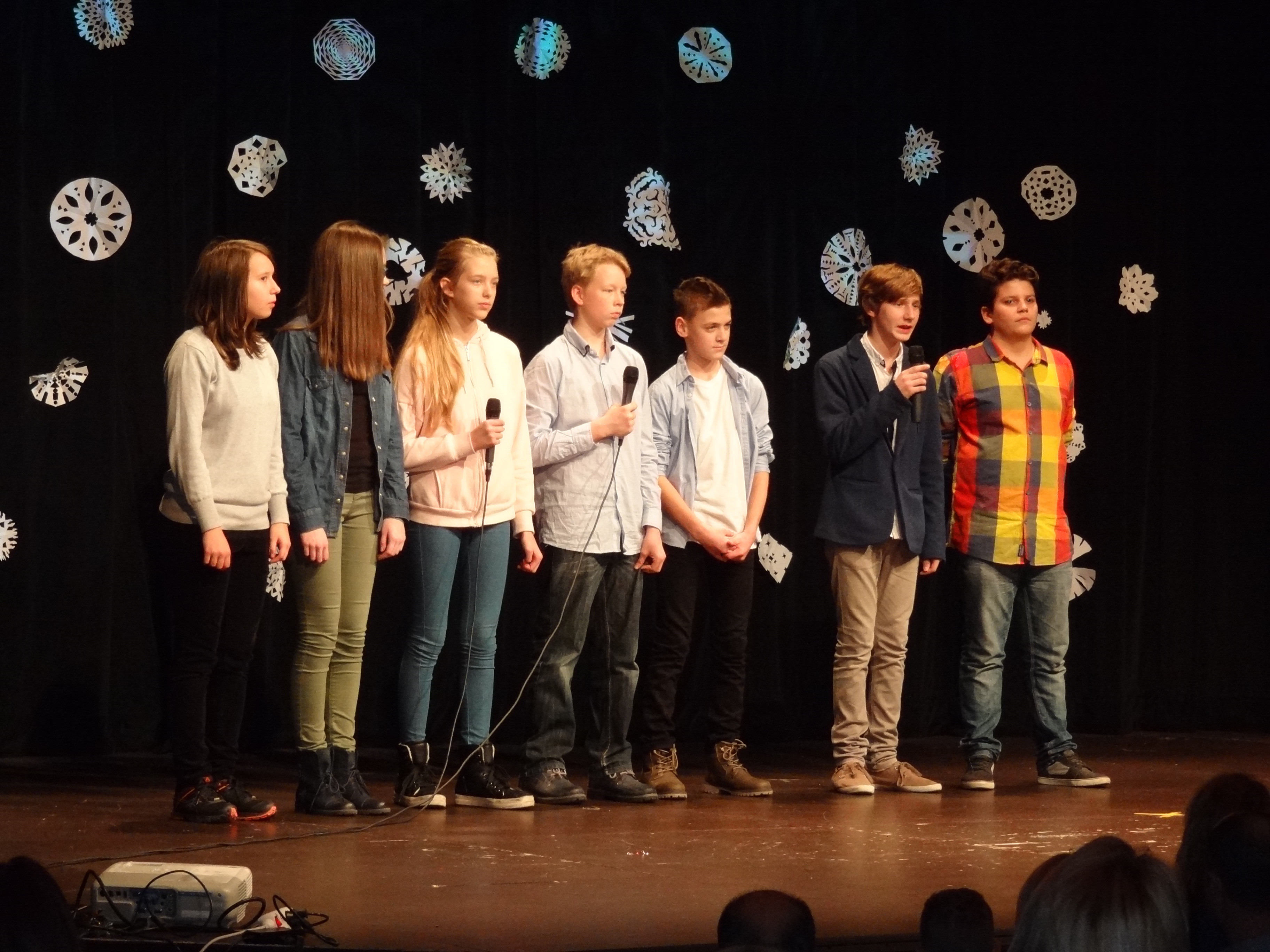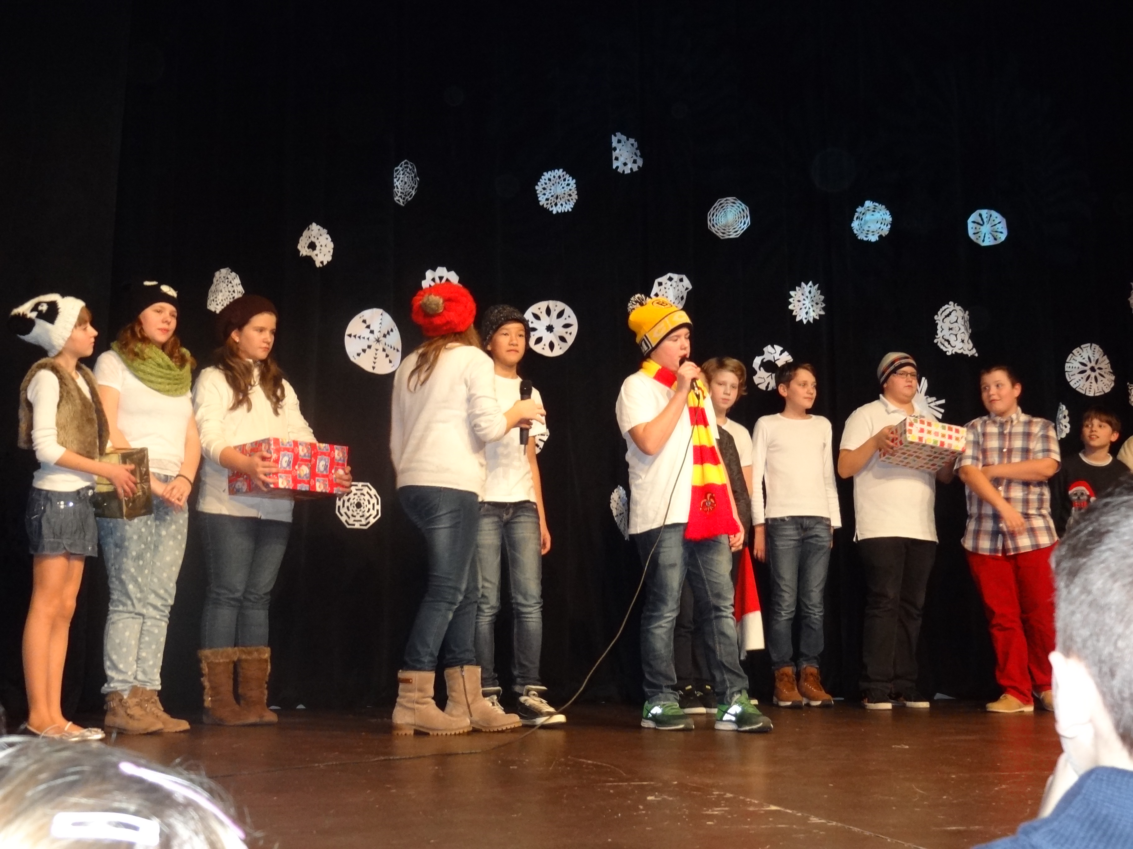 V našej škole študujú deti z rôznych štátov a svoje obyčaje predviedli aj v našom programe. Prostredníctvom piesne Christmas time v podaní 3.A, piesňou When Christmas comes to town žiakov 4.A, Let is snow 8.A s tanečným sprievodom 5.B či piesňou Aleluja v podaní Natálie Sirotovej s klavírnym sprievodom Natálie Gašparovskej a vokalistami zo 6.A nám deti priblížili vianočnú atmosféru spoza hraníc Slovenska. Svoje jazykové znalosti, ale aj zručnosti z hodín informatiky predviedli naši žiaci v jazykových scénkach o vianočných tradíciách Francúzska, Nemecka ,Ruska a Anglicka. Ku každej krajine bola premietaná deťmi vytvorená prezentácia v programe Powerpoint. Obsahovala preklad hovoreného textu a obrázky k téme.