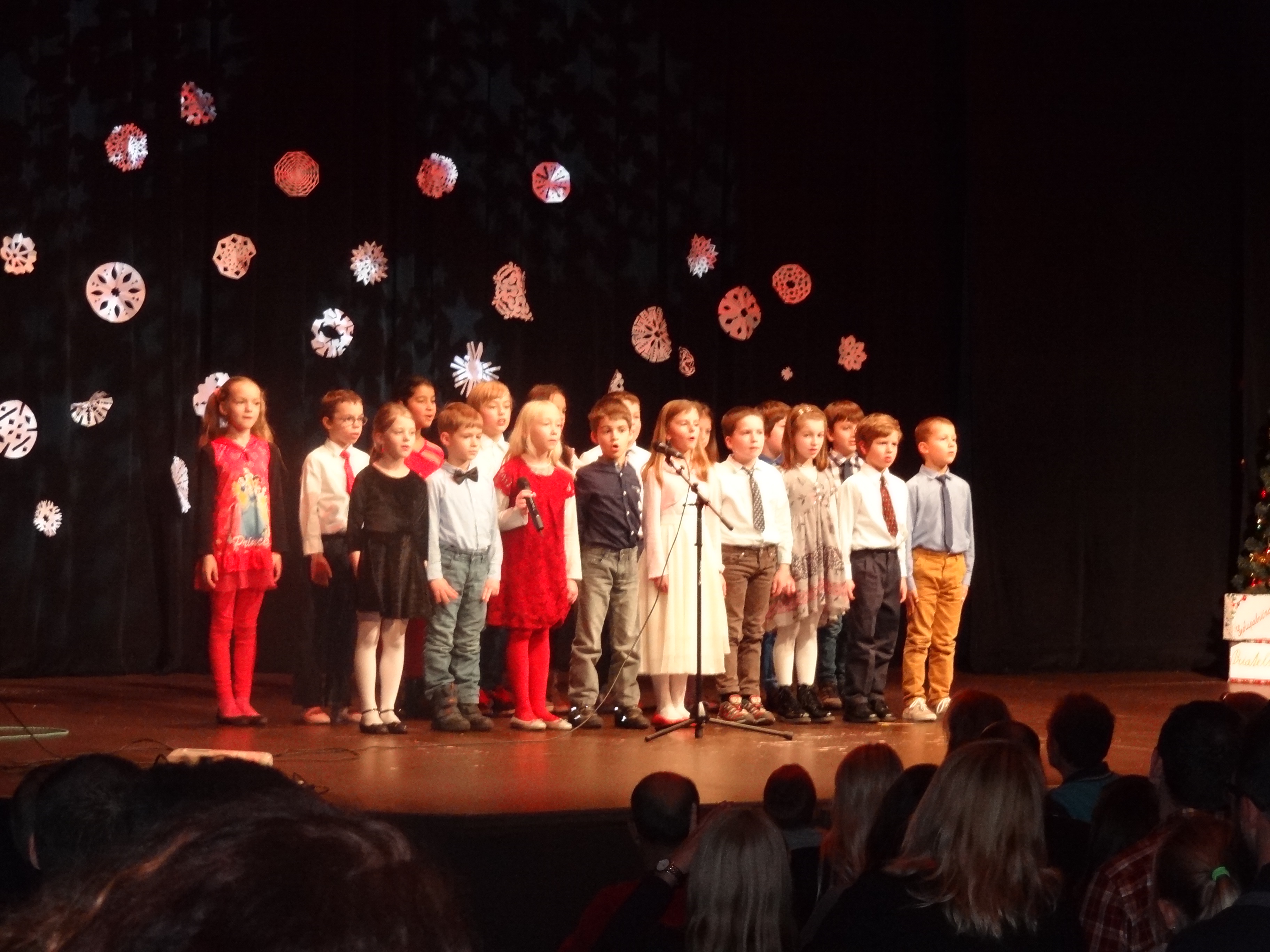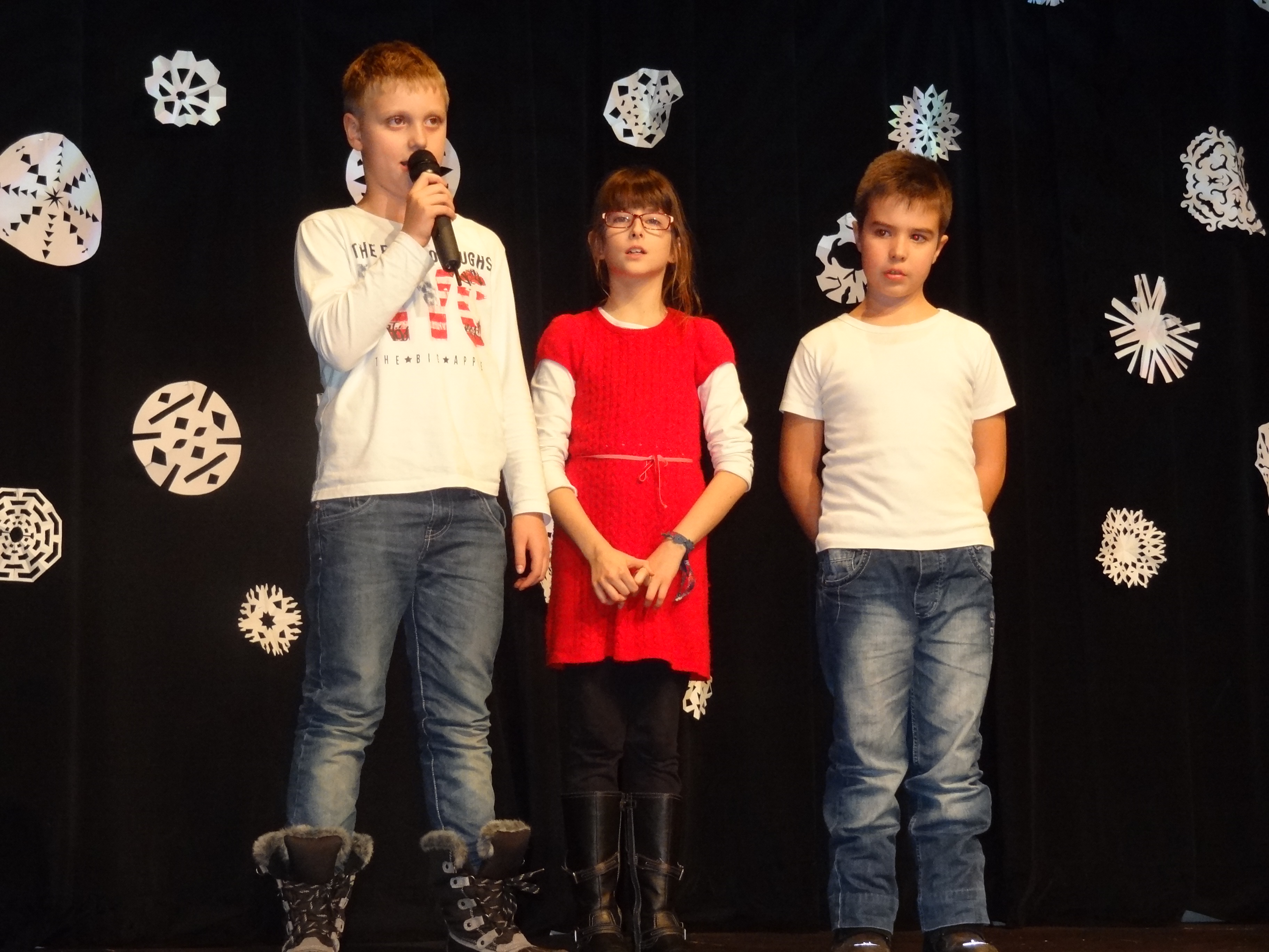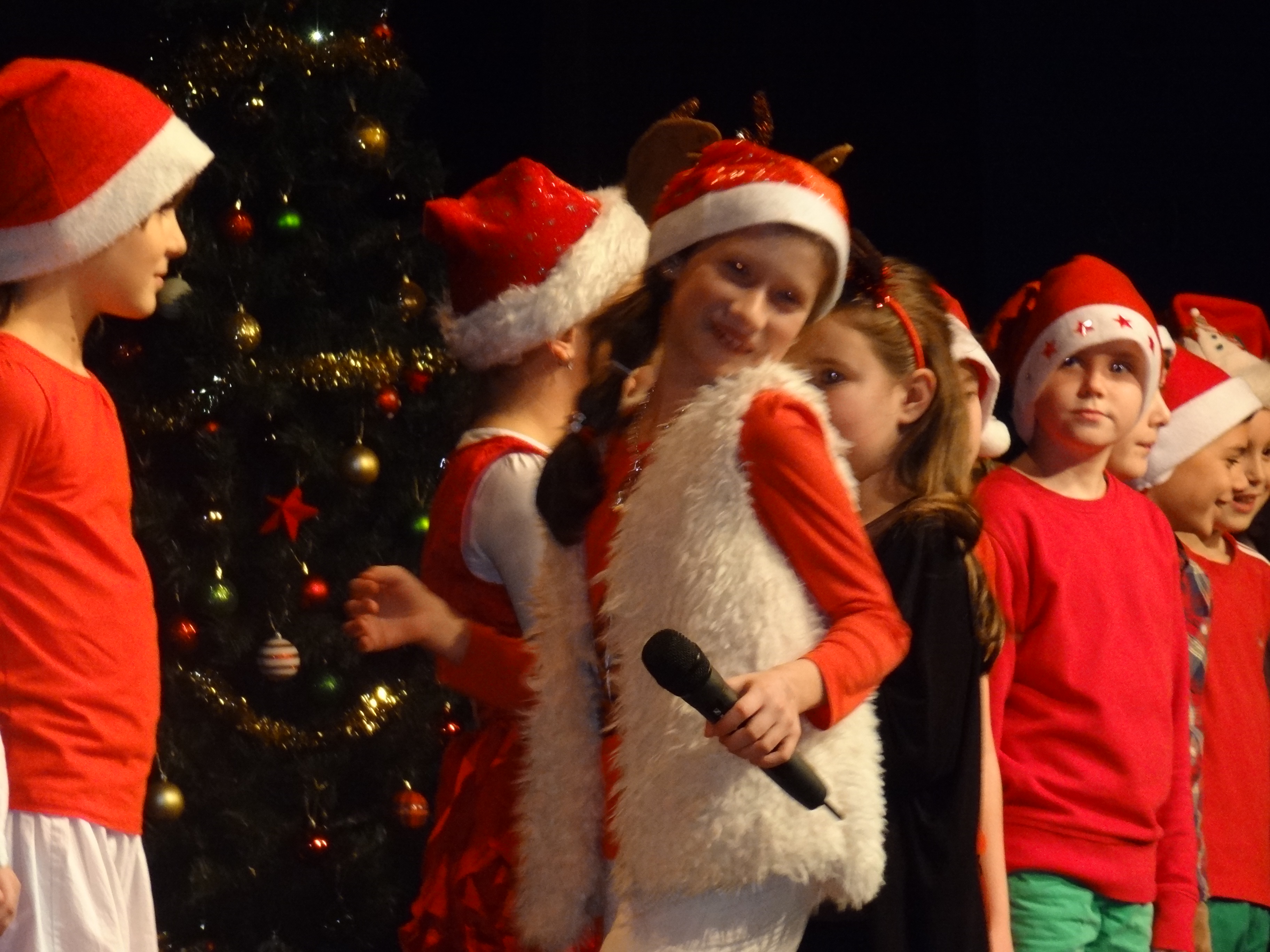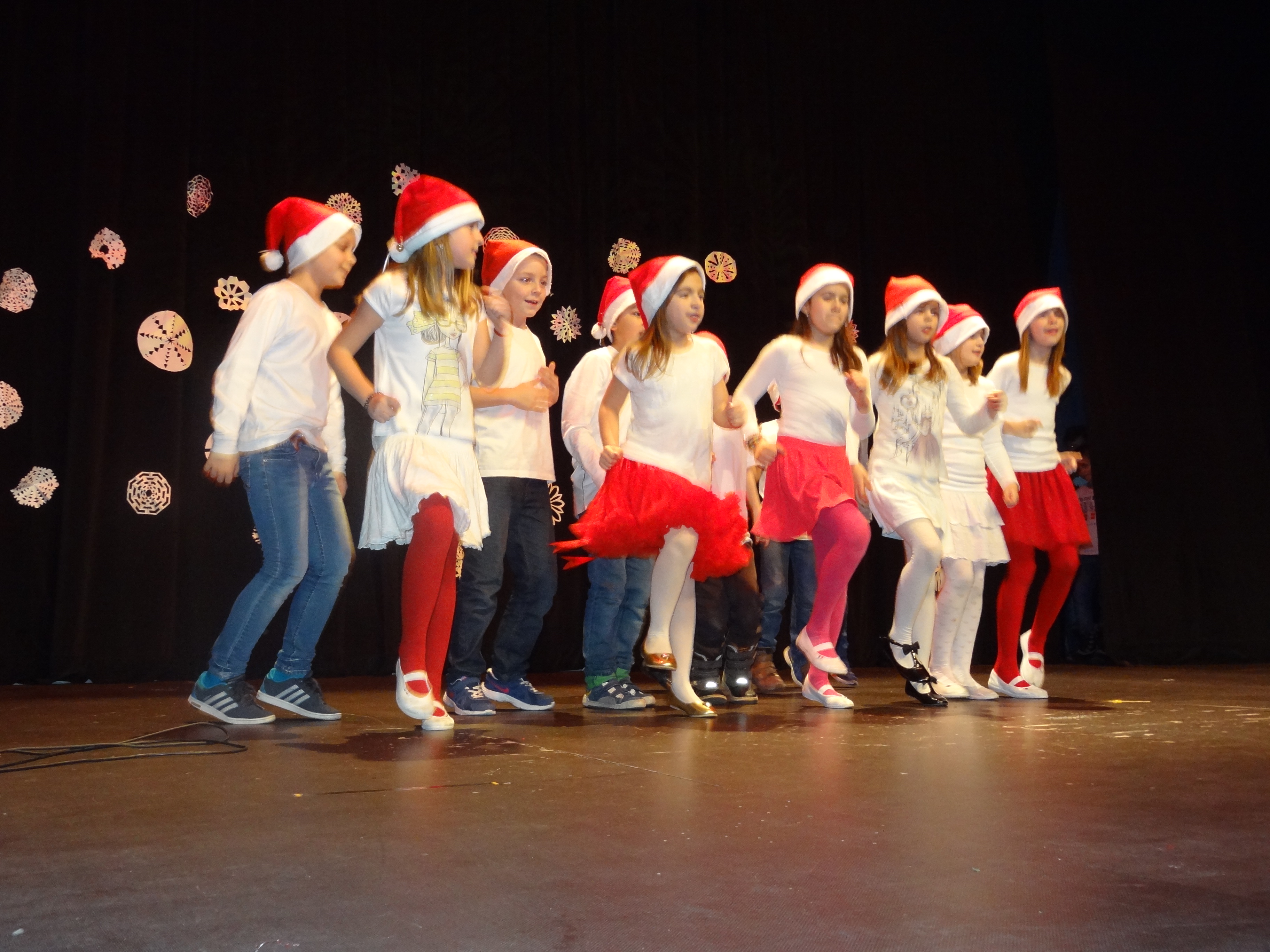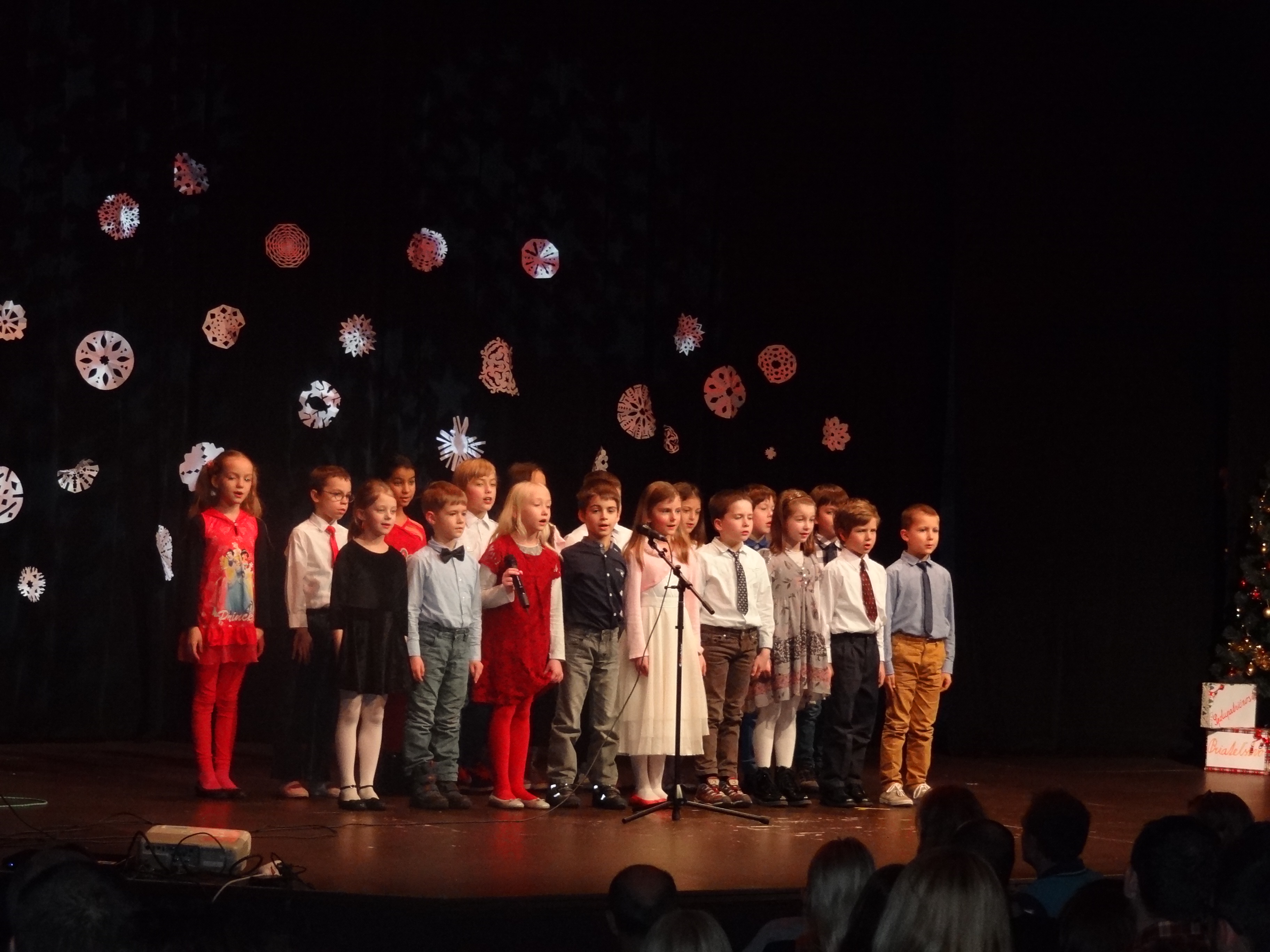 Obzvlášť milú a veselú atmosféru do tohto podujatia vniesli vystúpenia 1.stupňa.Divaci sa mohli tešiť z humornej scénky Nevďačné deti a Vianoce žiakov 2.A, z piesne Pastuškovia od detí 2.B, z piesne Vianoce, Vianoce od Petra Nagya v podaní žiakov 1.C, z piesne Už je zima, už je tu a zo scénky Štyria čerti v podaní triedy 1.A, z moderného tanca detí 1.B a z triedy 3.B vo veselej pesničke Trpaslíci a v kolede Tichá noc. Nechýbali ani k Vianociam neodmysliteľne patriace rozprávky. 3.B nám zahrala Medovníkový domček a 4.B Šípkovú Ruženku.