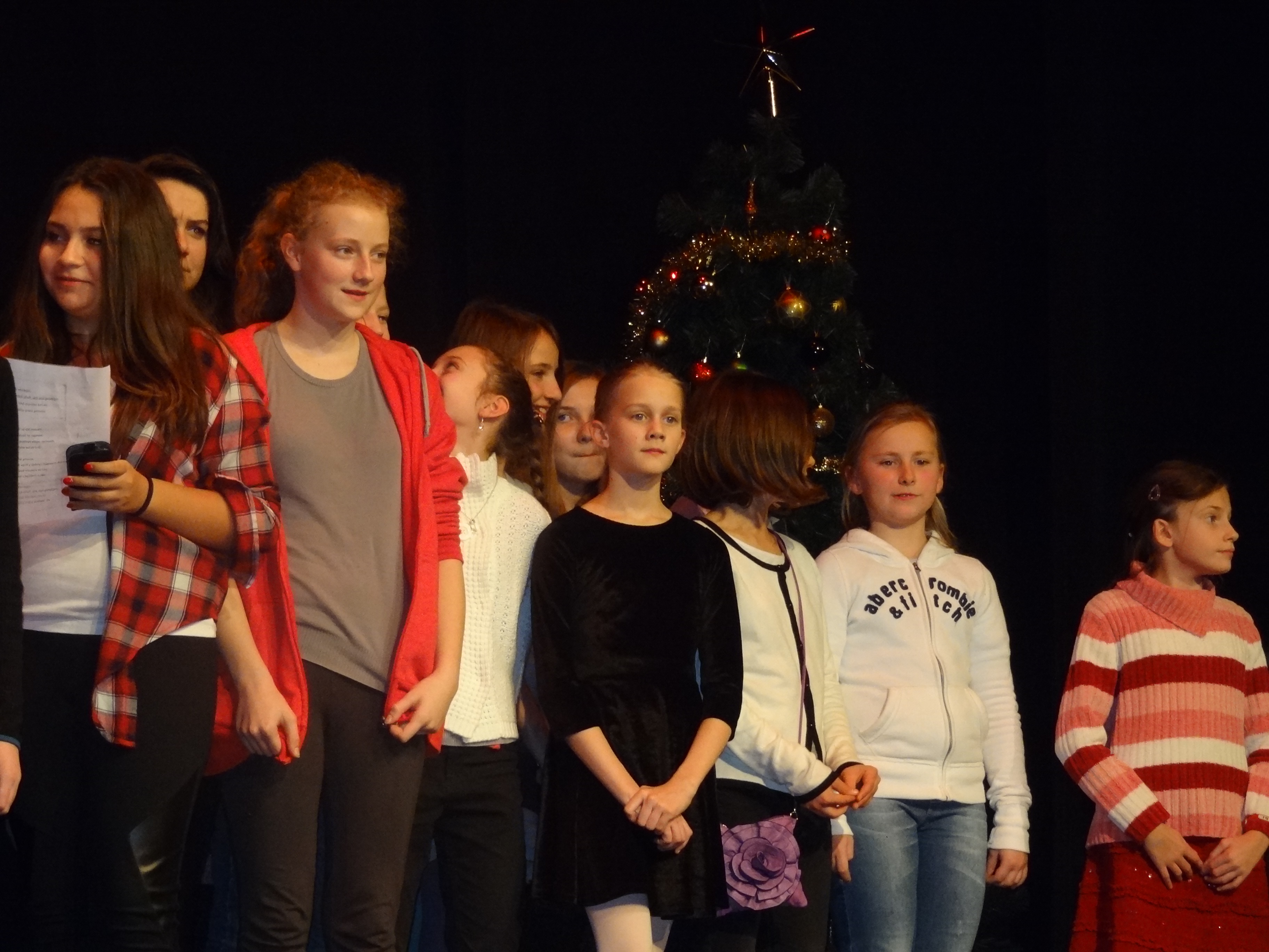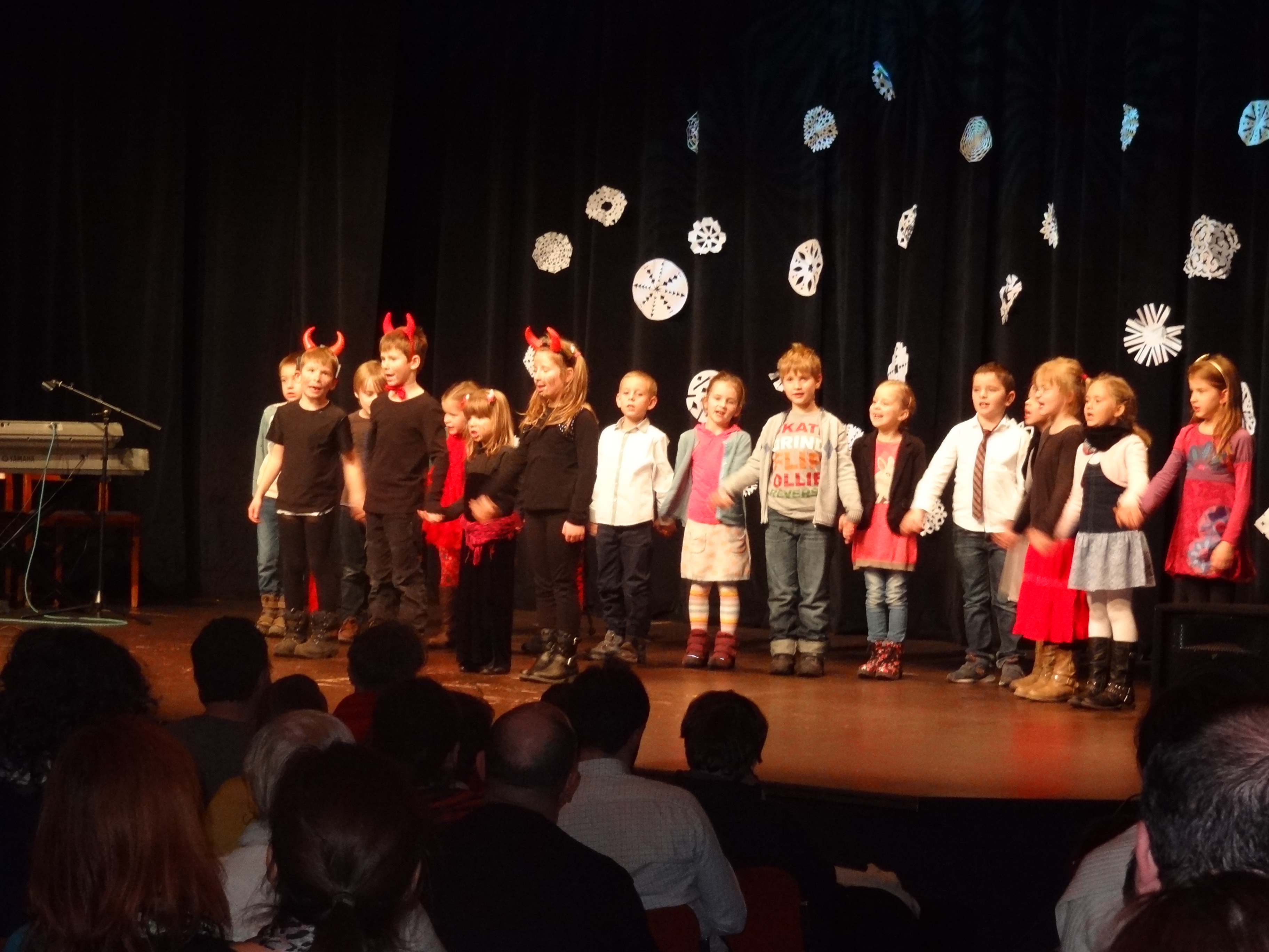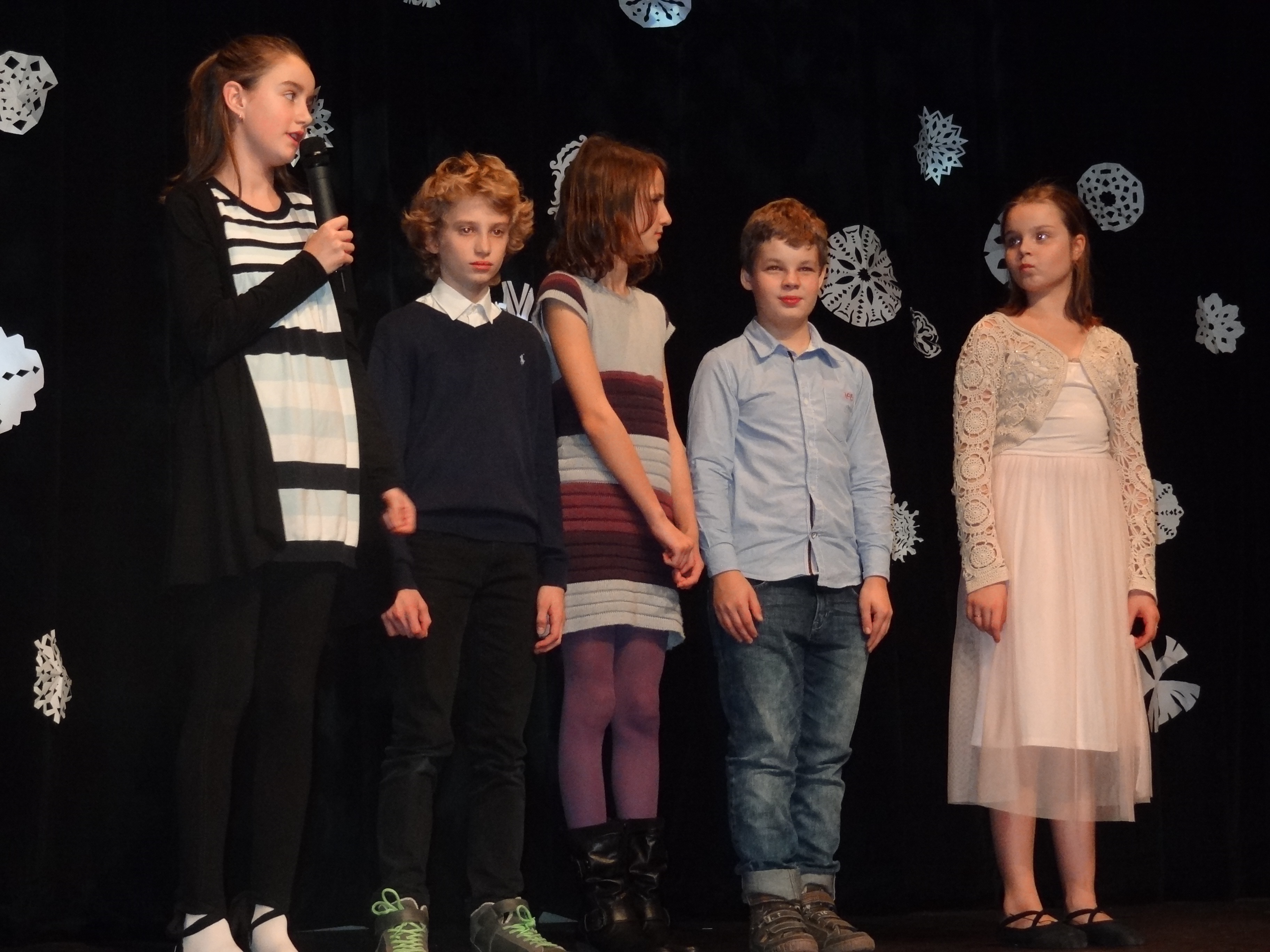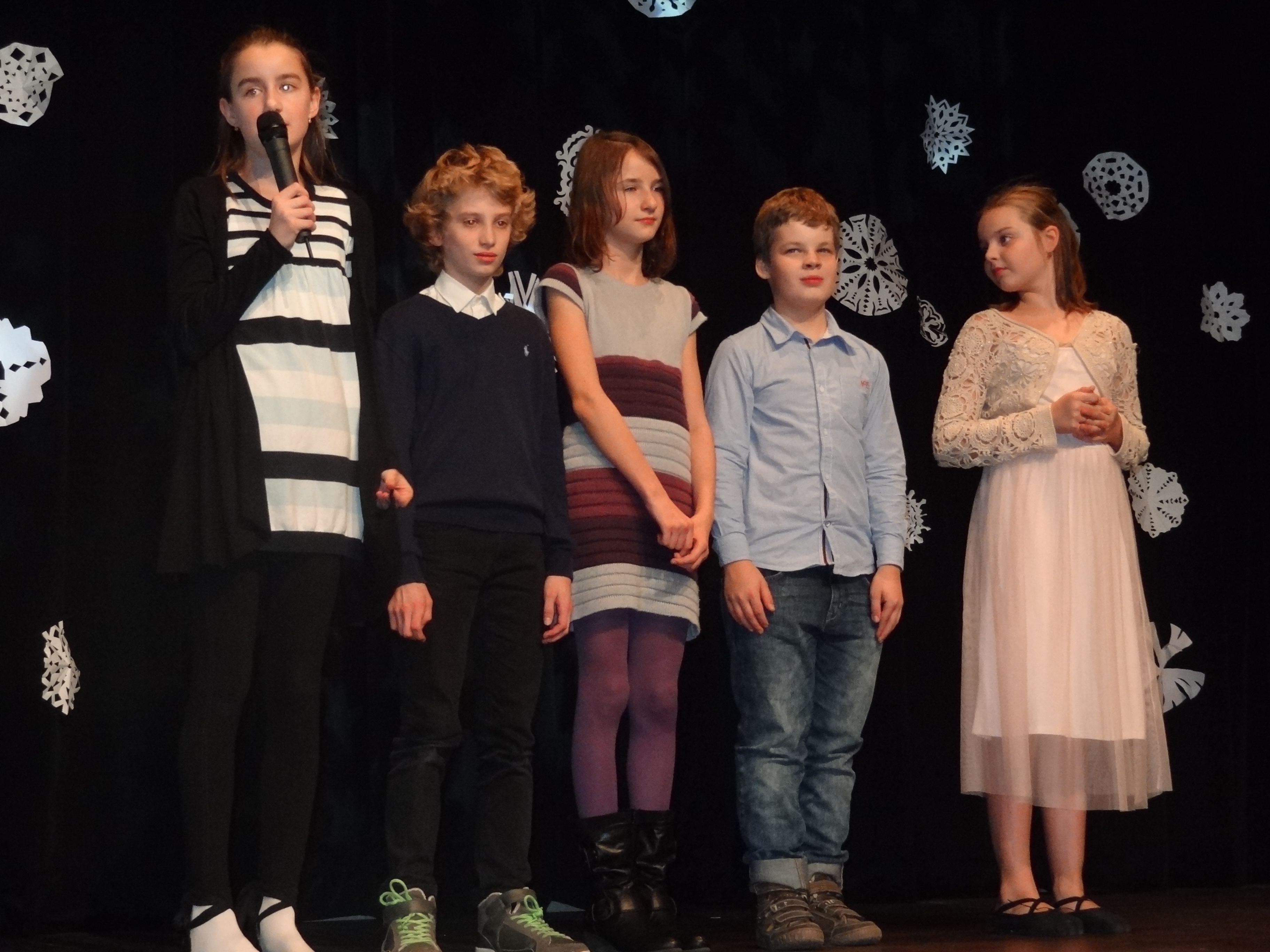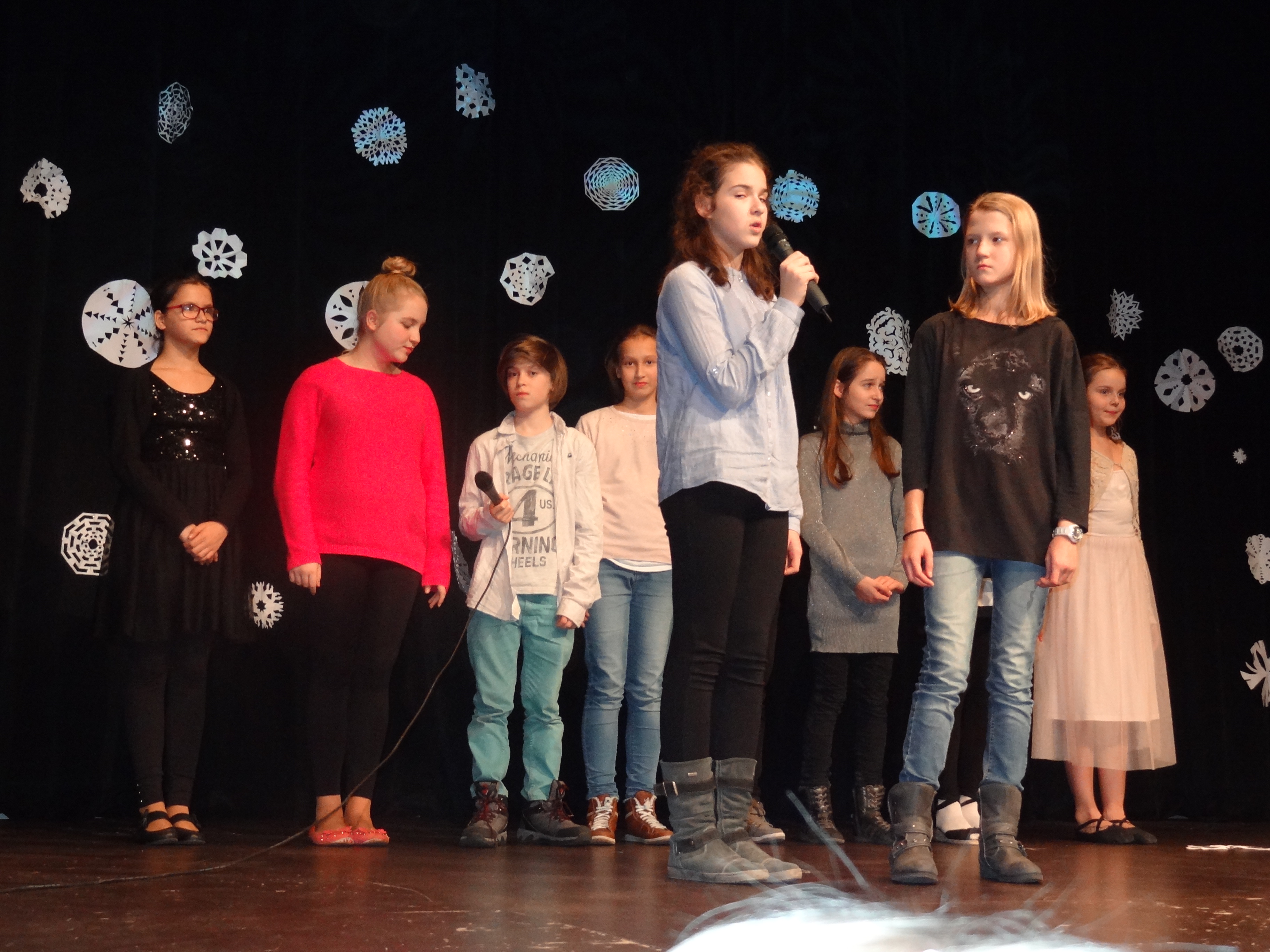 Obzvlášť milú a veselú atmosféru do tohto podujatia vniesli vystúpenia 1.stupňa.Divaci sa mohli tešiť z humornej scénky Nevďačné deti a Vianoce žiakov 2.A, z piesne Pastuškovia od detí 2.B, z piesne Vianoce, Vianoce od Petra Nagya v podaní žiakov 1.C, z piesne Už je zima, už je tu a zo scénky Štyria čerti v podaní triedy 1.A, z moderného tanca detí 1.B a z triedy 3.B vo veselej pesničke Trpaslíci a v kolede Tichá noc. Nechýbali ani k Vianociam neodmysliteľne patriace rozprávky. 3.B nám zahrala Medovníkový domček a 4.B Šípkovú Ruženku.