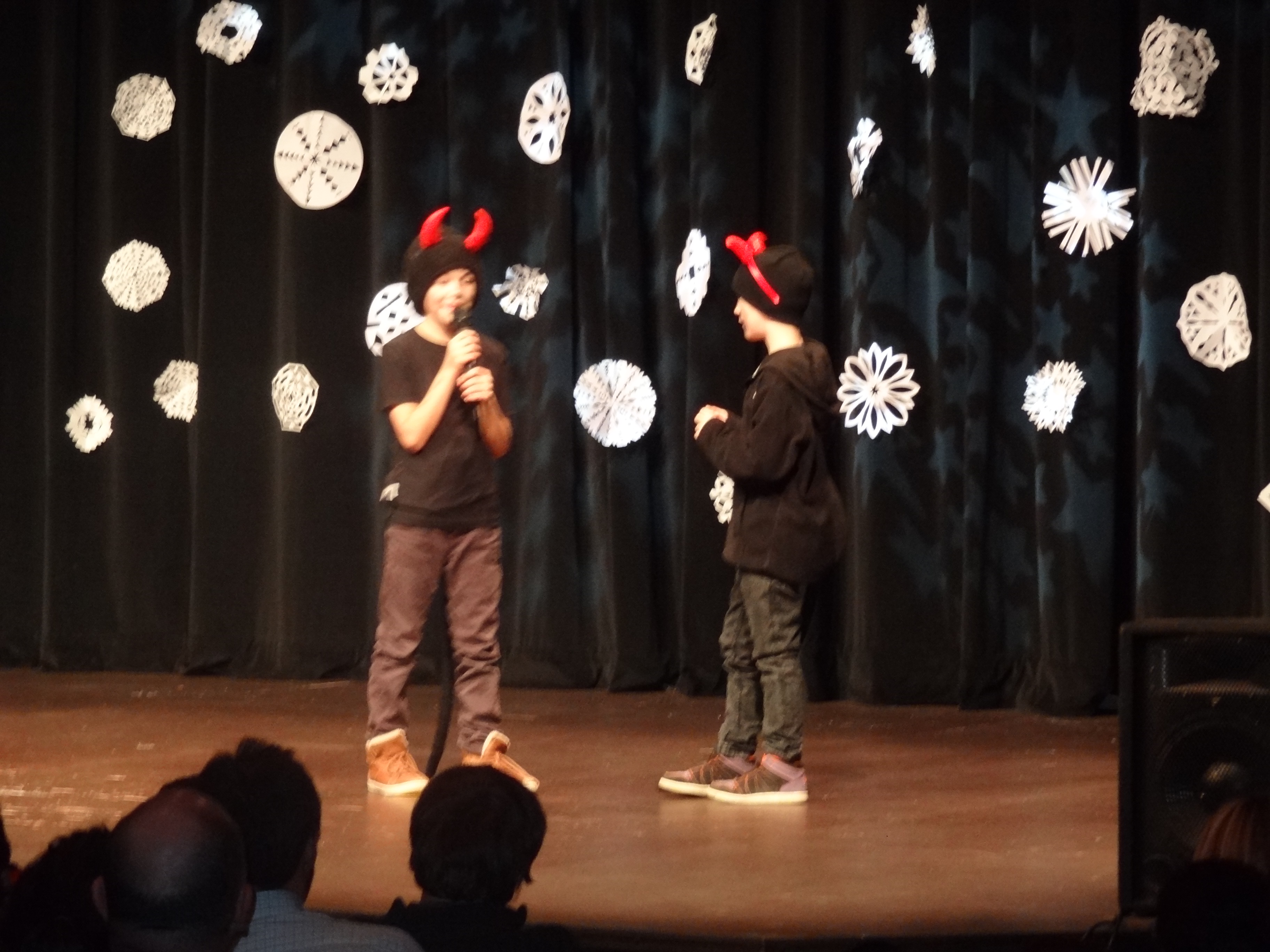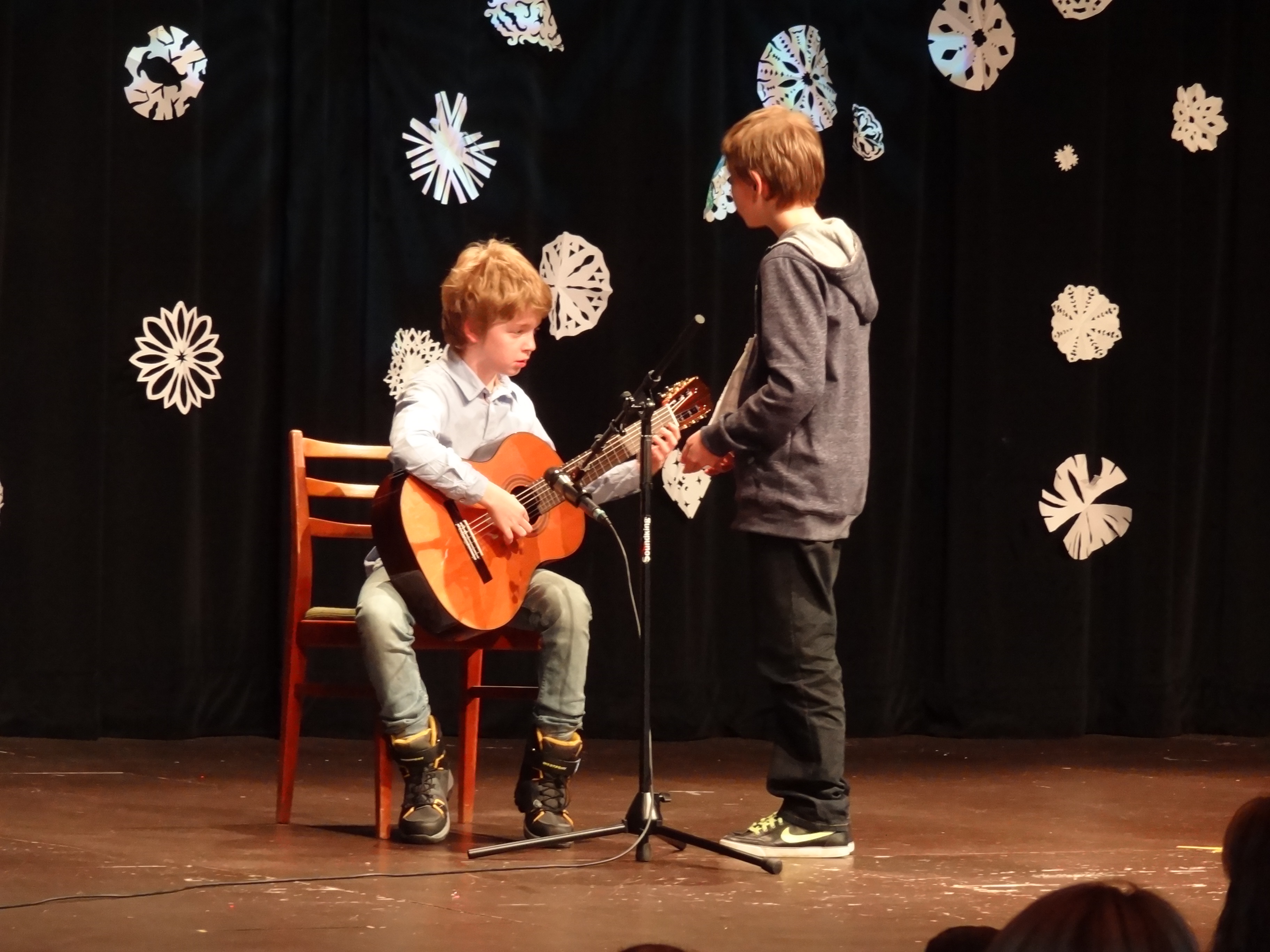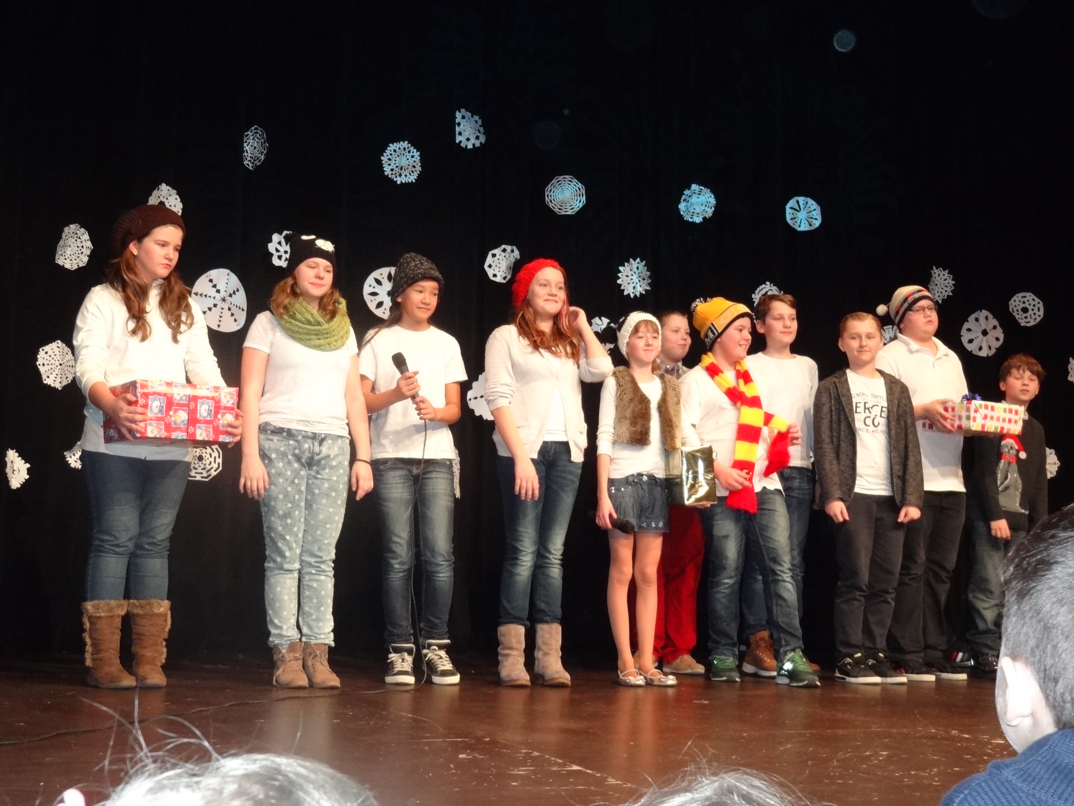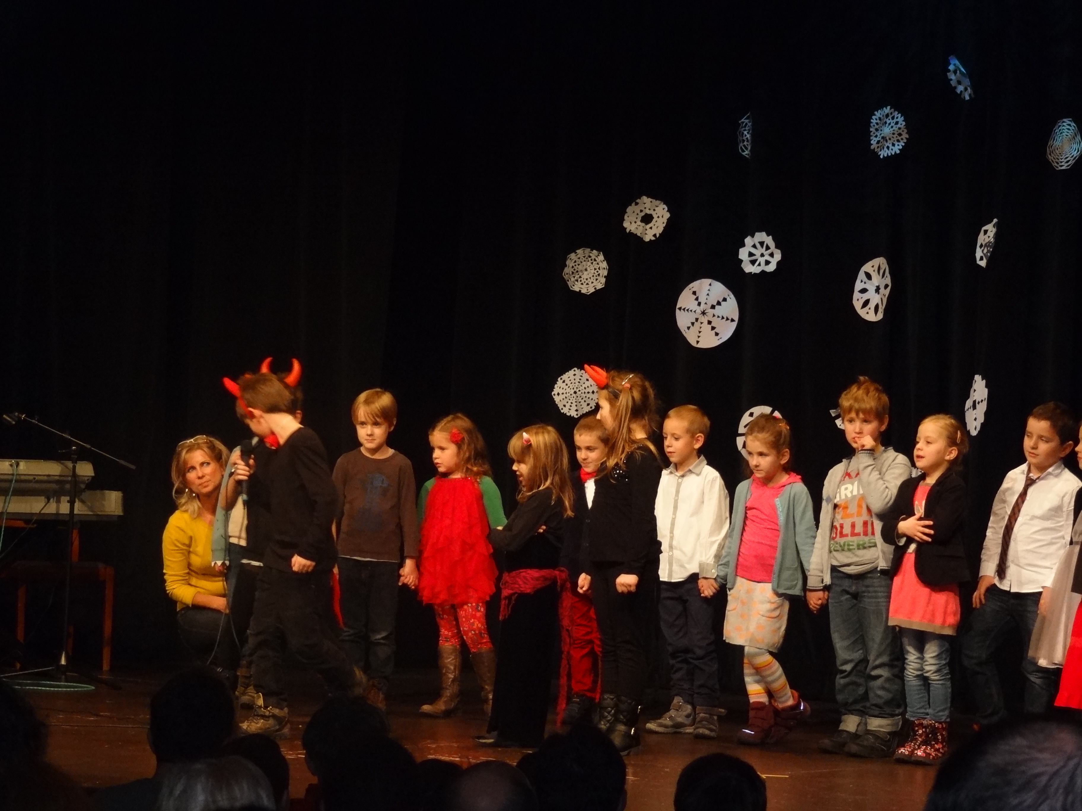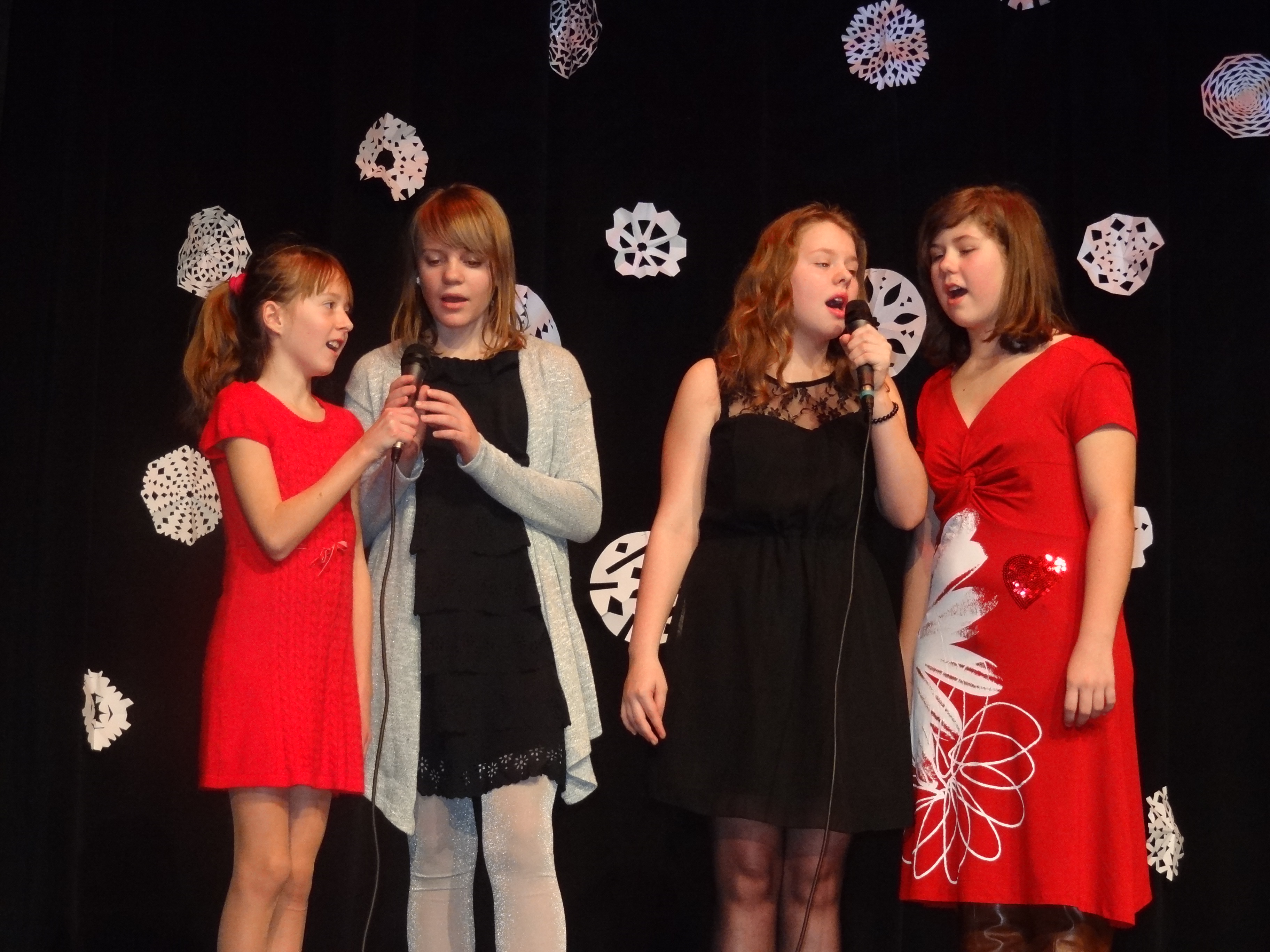 Obzvlášť milú a veselú atmosféru do tohto podujatia vniesli vystúpenia 1.stupňa.Divaci sa mohli tešiť z humornej scénky Nevďačné deti a Vianoce žiakov 2.A, z piesne Pastuškovia od detí 2.B, z piesne Vianoce, Vianoce od Petra Nagya v podaní žiakov 1.C, z piesne Už je zima, už je tu a zo scénky Štyria čerti v podaní triedy 1.A, z moderného tanca detí 1.B a z triedy 3.B vo veselej pesničke Trpaslíci a v kolede Tichá noc. Nechýbali ani k Vianociam neodmysliteľne patriace rozprávky. 3.B nám zahrala Medovníkový domček a 4.B Šípkovú Ruženku.
