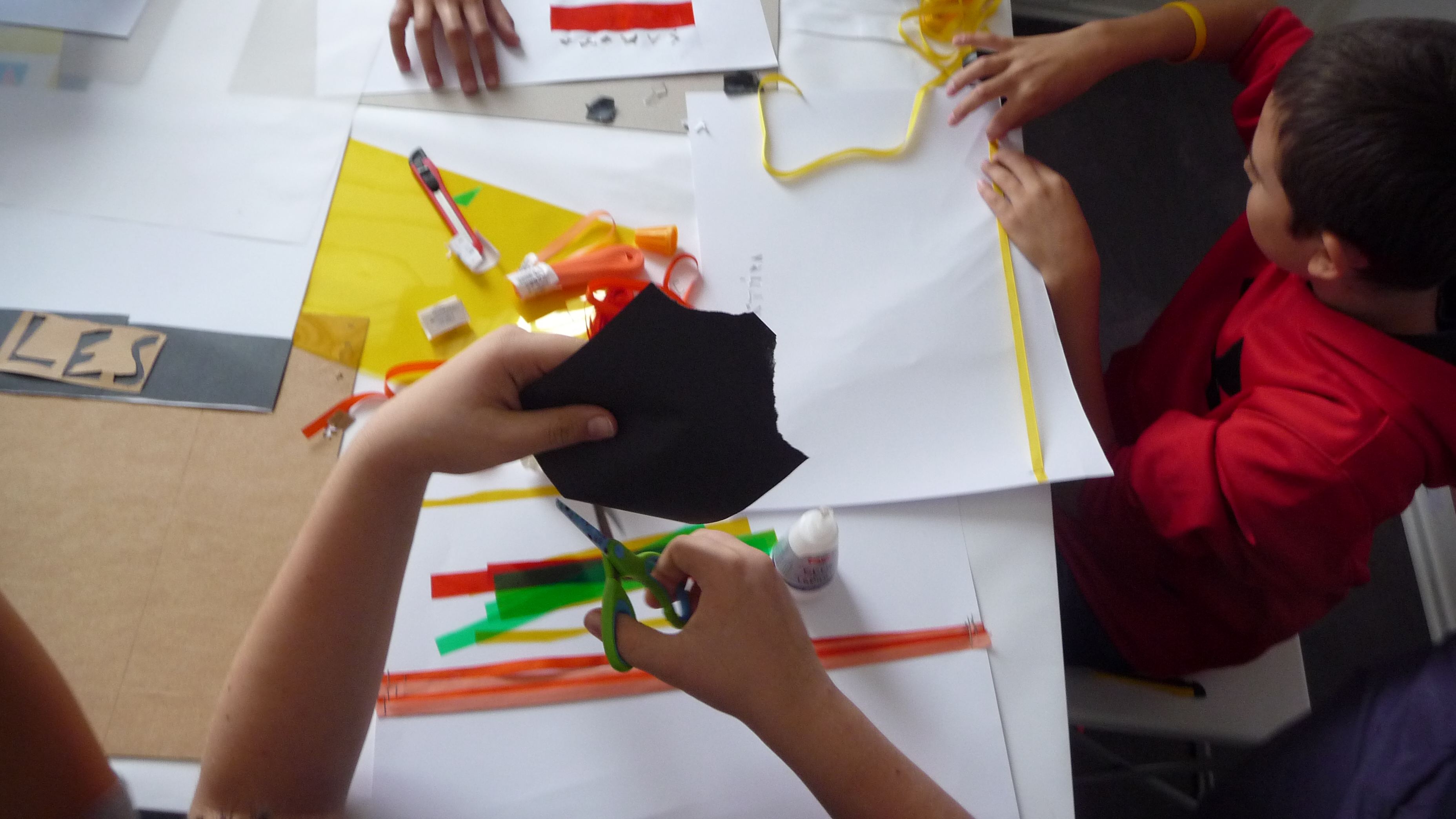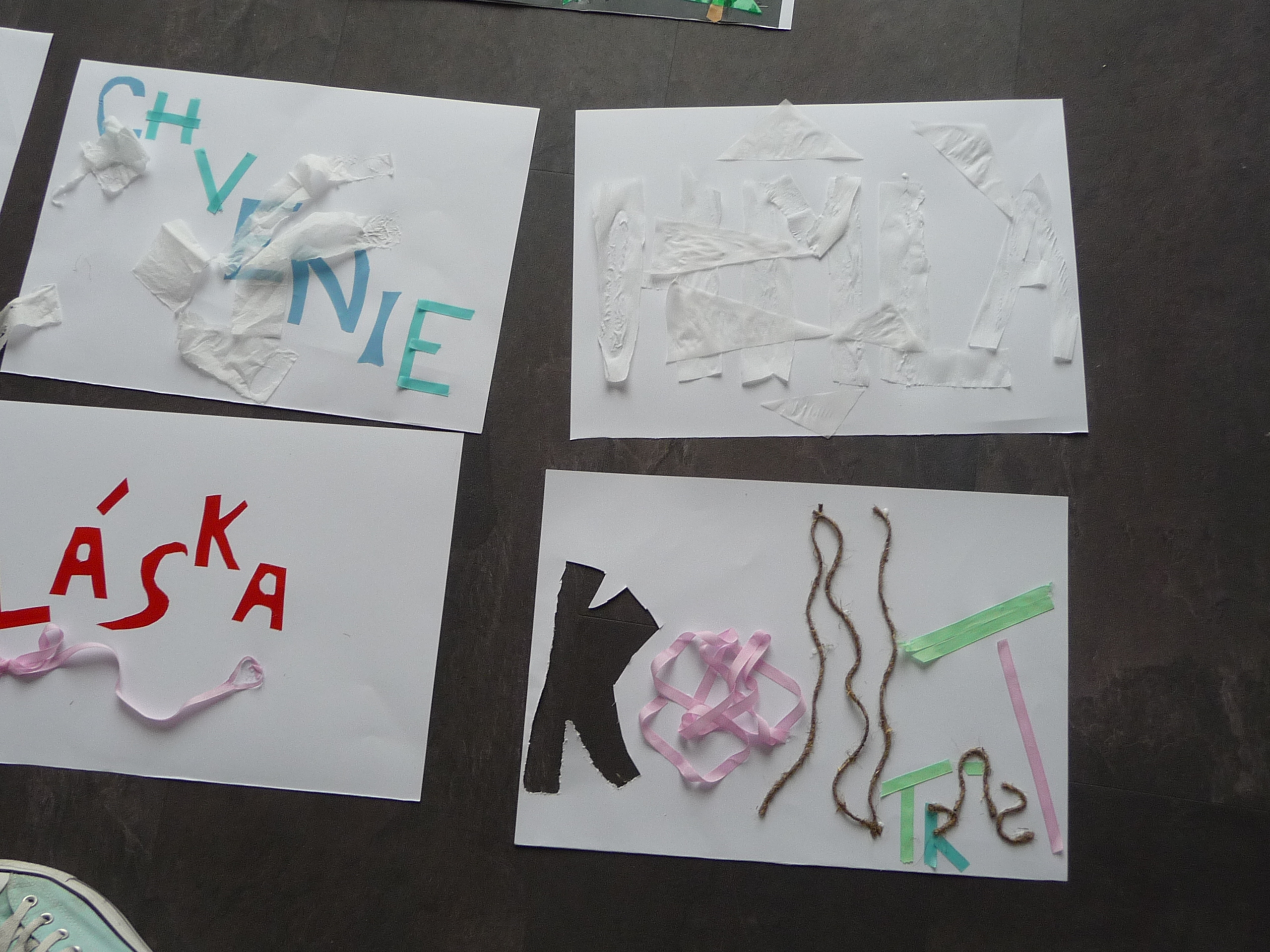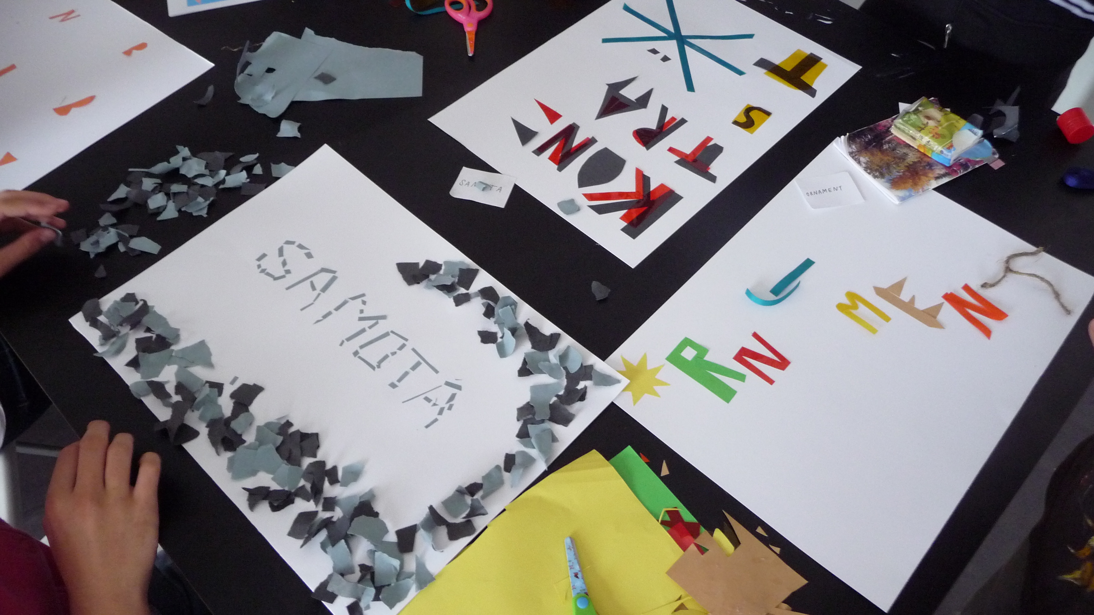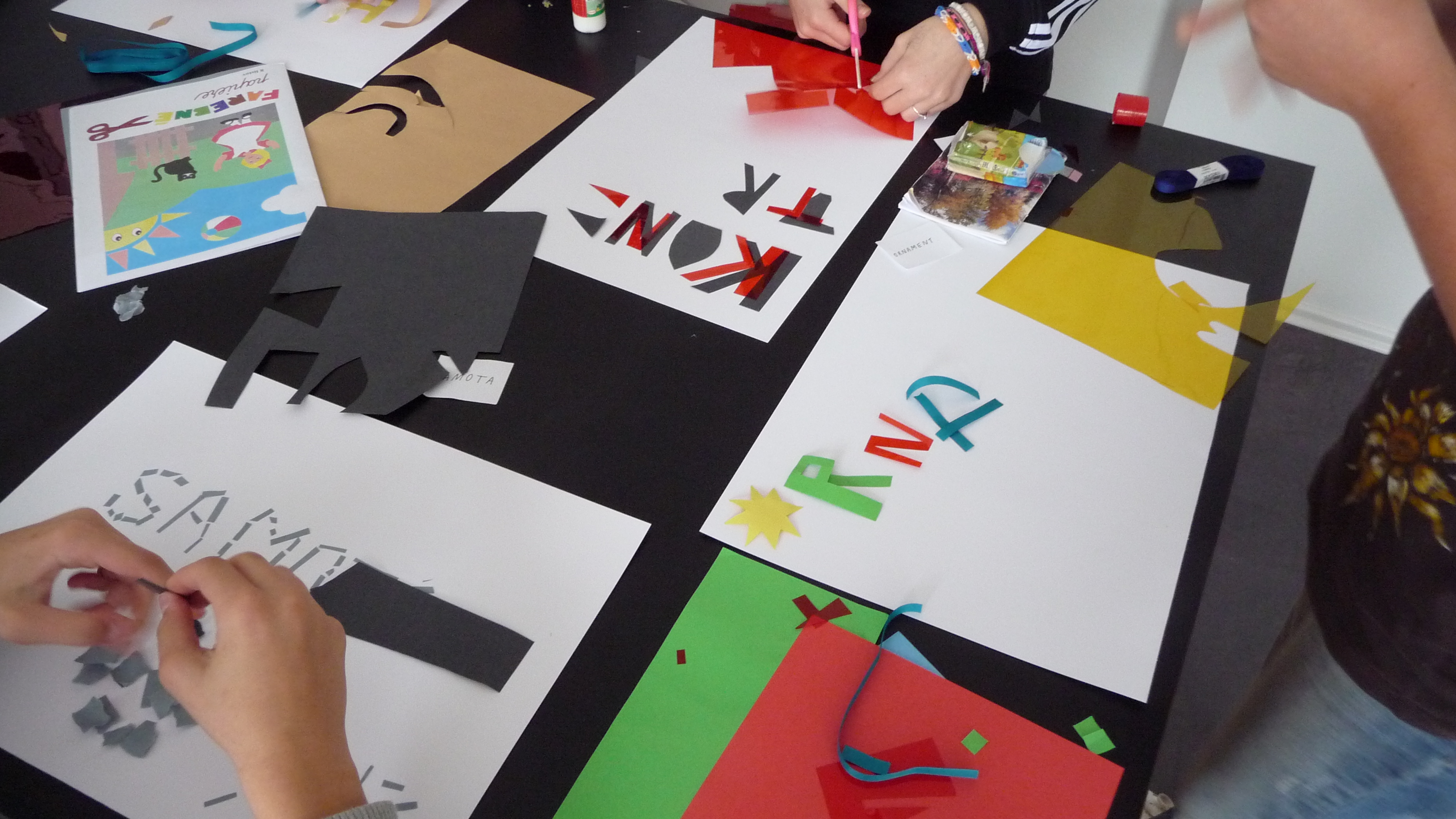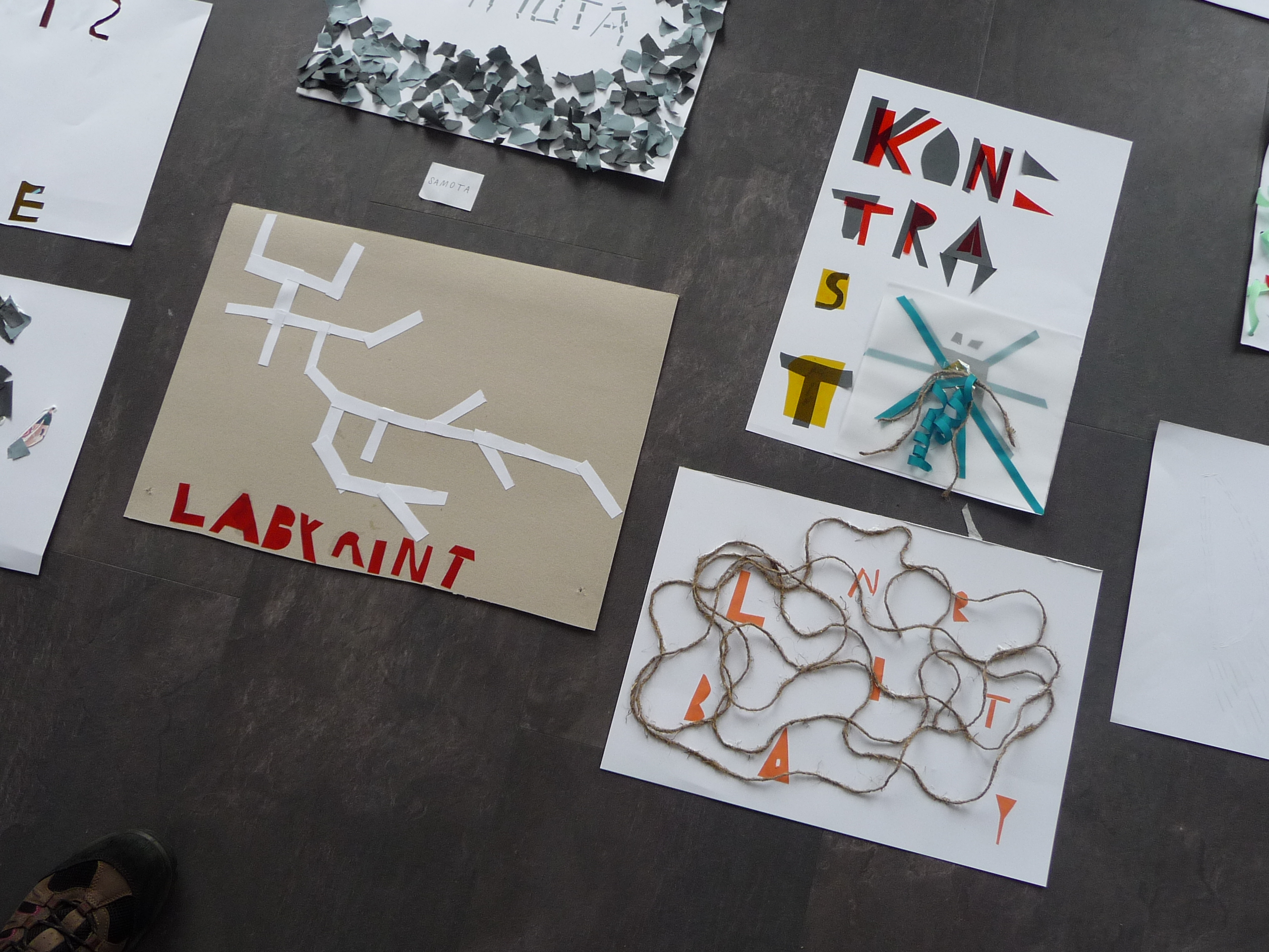 Najprv nám rozprávali len o jednoduchých veciach, čo je to dizajn, kde ho nájdeme, kde sa používa, …. potom plynule prešli do prekvapivo dlhej a bohatej histórie plagátu. Všetci načúvali s otvorenými ústami takúto prednášku nečakali. Začali sa na plagáty pozerať trochu inak. Po prezretí výstavy, ktorá bola dosť malá, ale veľmi bohatá na rôzne druhy typoplagátov, sme dostali náročnú, no zaujímavú úlohu. Mali sme zhotoviť svoj vlastný plagát pomocou lepidla, nožníc, rôznych druhov farebného papiera, ale nemali sme k dispozícii žiadne písacie potreby. Vylosovali sme si tému a začali tvoriť. Na papierikoch boli napísané témy: kontrast, stretnutie, origamy, smútok, vojna…Vytvorené plagáty boli veľmi nápadité a aj nás za ne pochválili. Cestou do školy bol nadšený džavot siedmakov počuť až na druhý koniec ulice.