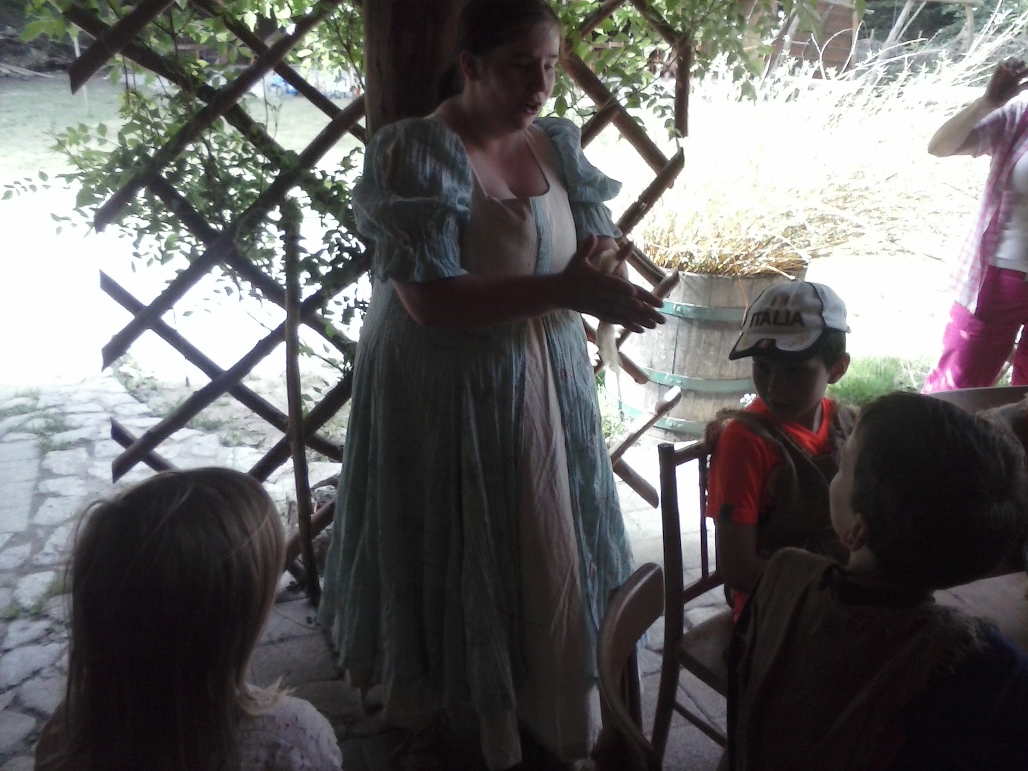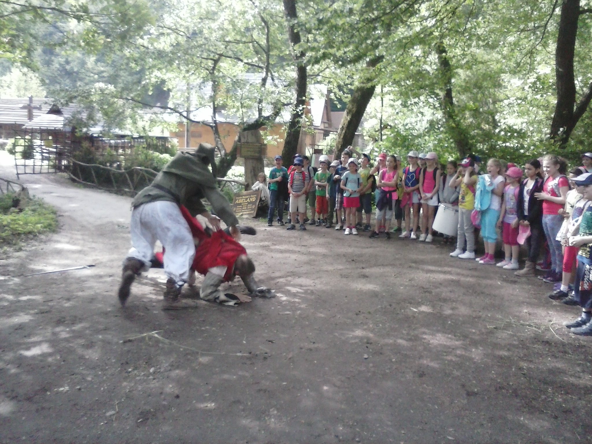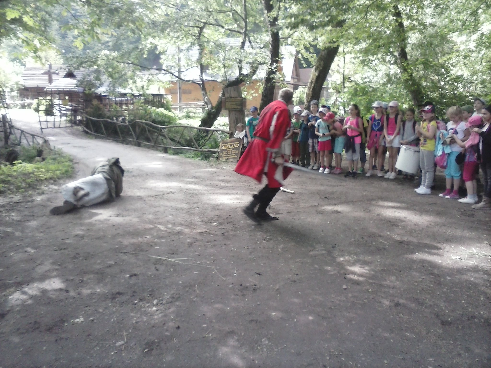 „Dedinka“ Abeland je asi 5 km od Lozorna. Necestovali sme teda dlho a o to dlhší deň sme mohli stráviť hrami a objavovaním nového. Náš výlet dostal názov „Rytiersky deň“. Deti si vlastnoručne upiekli chlebík, vyrobili si náramky z ovčej vlny, pripravili a ochutnali čaj z vlastnoručne nazbieraných bylín. V ďalšej časti strieľali lukom do terča, naučili sa ovládať rytiersky meč a povozili sa na koníkovi. Po chutnom obede ešte vyslobodili princeznú (pani učiteľku) zo zajatia a vykonali spravodlivý súd. Samozrejme udelili vinníkovi milosť a vysvetlili mu, že sa musí polepšiť. Krajší výlet sme si ani nemohli želať, lebo slniečko hrialo a nič nám nepokazilo dobrú náladu.