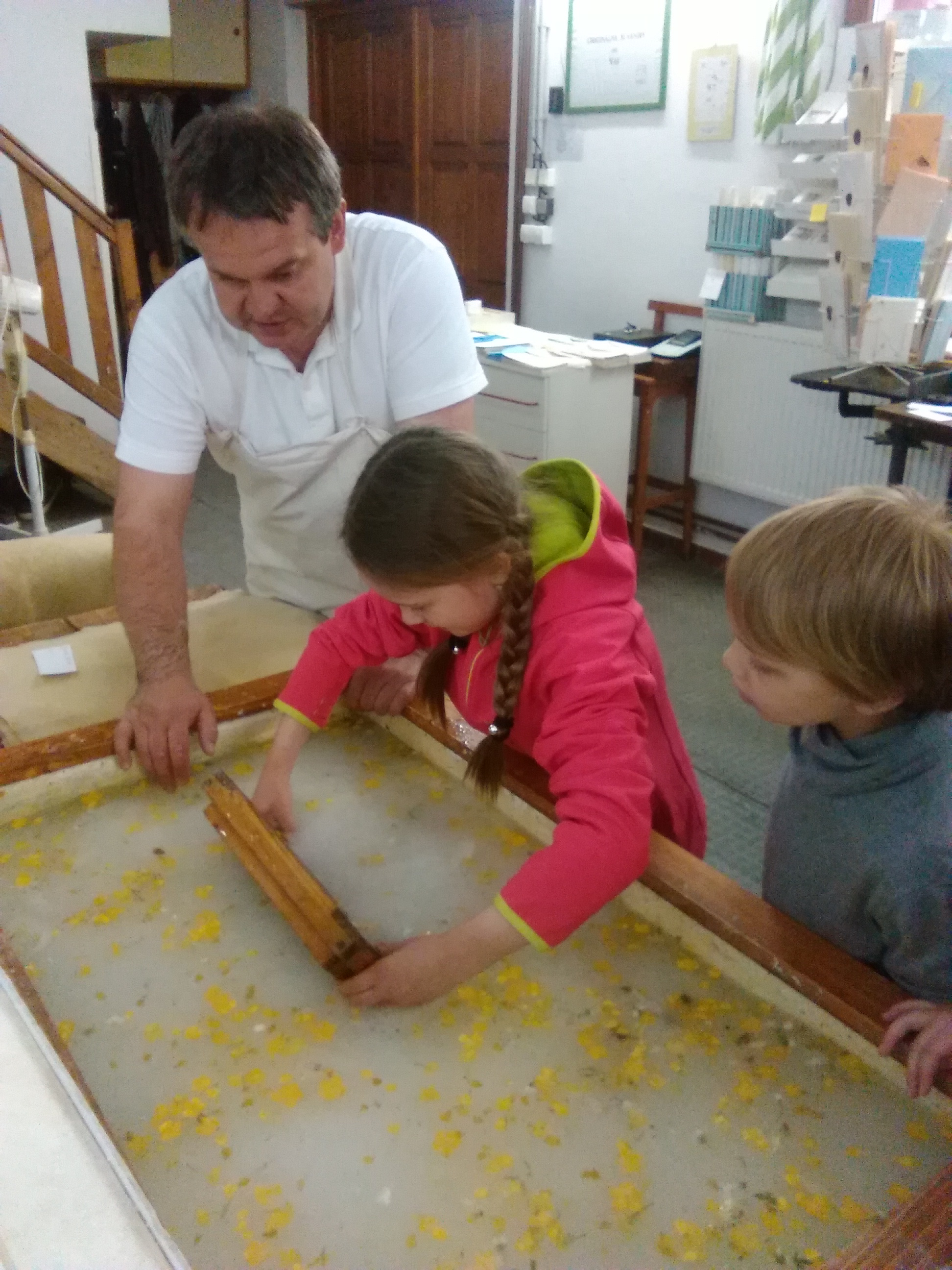 Žiaci si na úvod vypočuli prednášku o vzniku papiera a následne si ho aj ručne vyrobili.