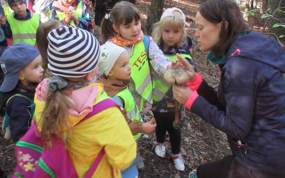 V prvý jesenný deň sme sa so Žabkami a Sovičkami vybrali na Železnú studničku. Naším cieľom bolo hravým spôsobom preskúmať tajomstvá lesa a spoznať niektorých jeho obyvateľov. Ekovýchovným programom nás sprevádzala lektorka Dáška z Inštitútu aplikovanej ekológie DAPHNE. Do lesa sa opäť niekedy s radosťou vrátime. Lesu zdar!