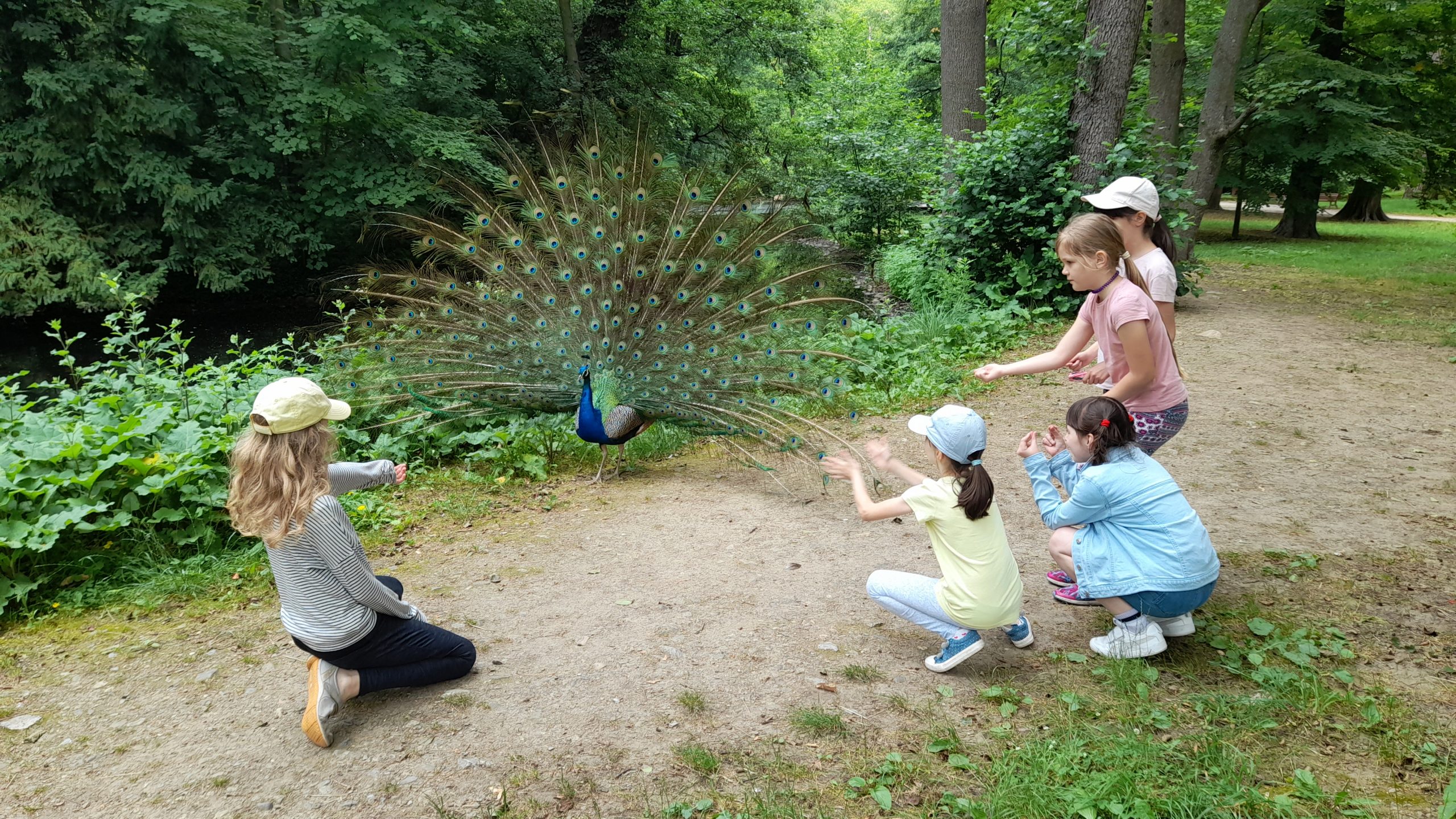 Na záver sa vyšantili v zámockom parku, kde ich milo prekvapili okaté pávy a rozlúčili sa pri výbornej zmrzline.