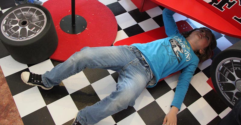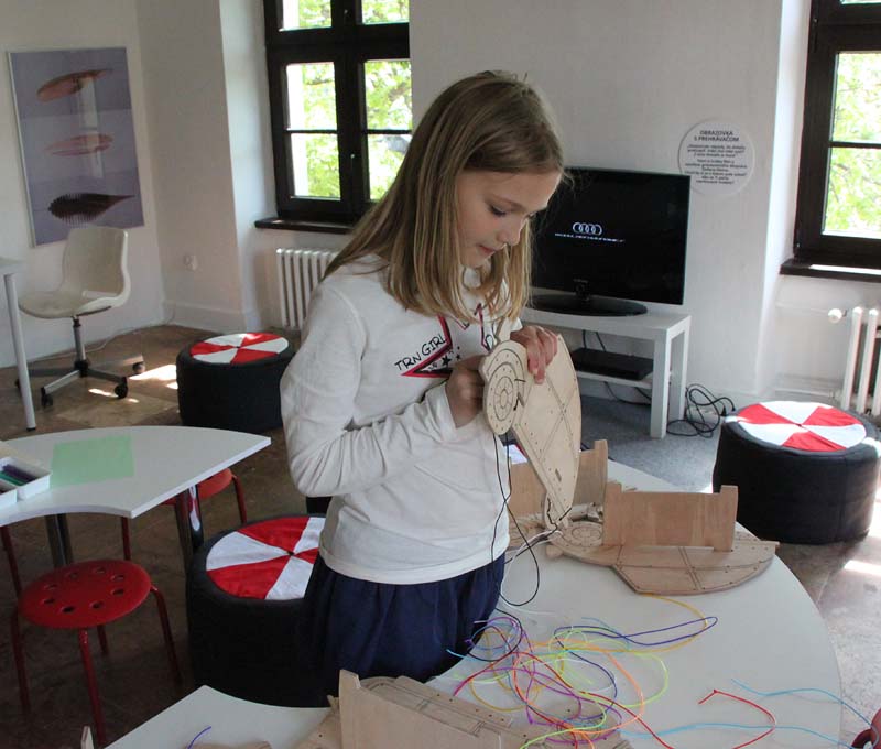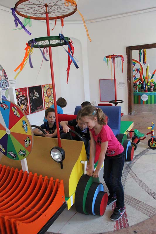 Prvá časť sprostredkovala deťom tému kolesá v širšom kontexte. Druhá časť bola zameraná na auto. Deti si mohli vyskúšať, ako kolesá pomáhajú ľuďom, ale i to, ako to bez kolies nefunguje. Zároveň mali možnosť tvorivo vstupovať do výtvarných inštalácií.