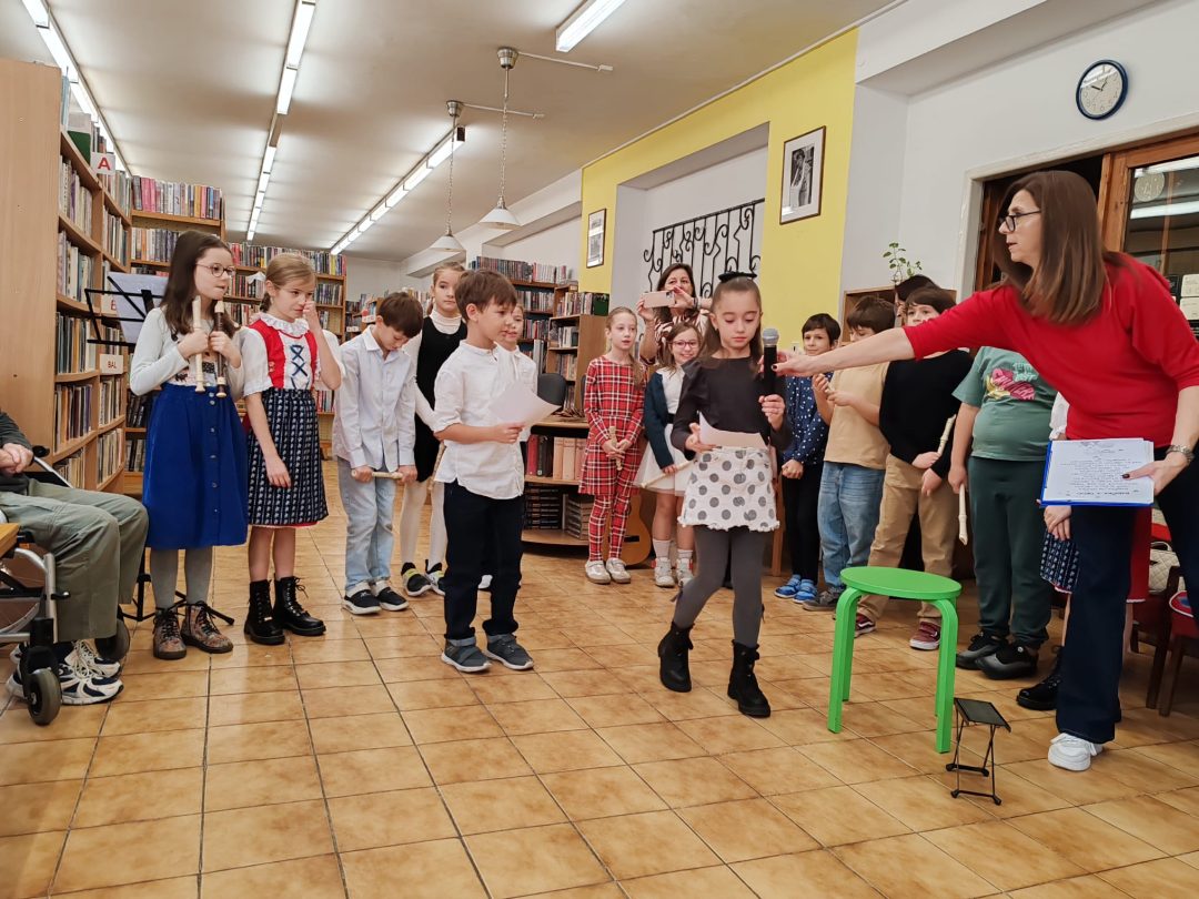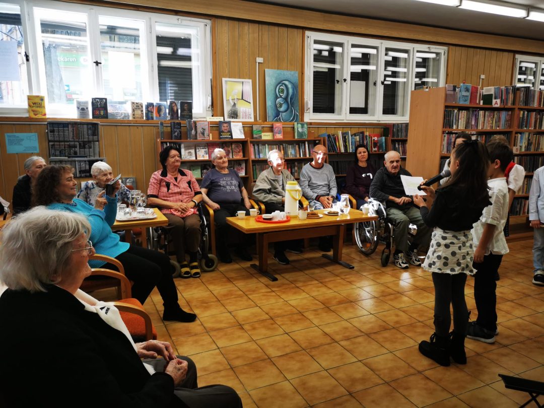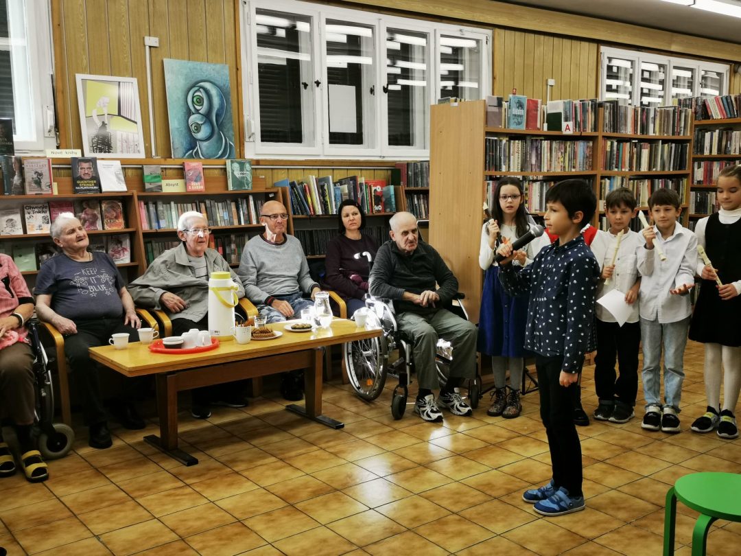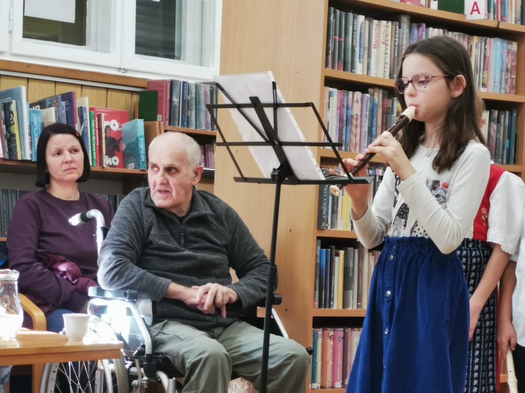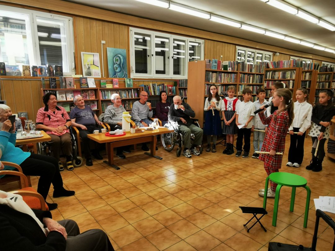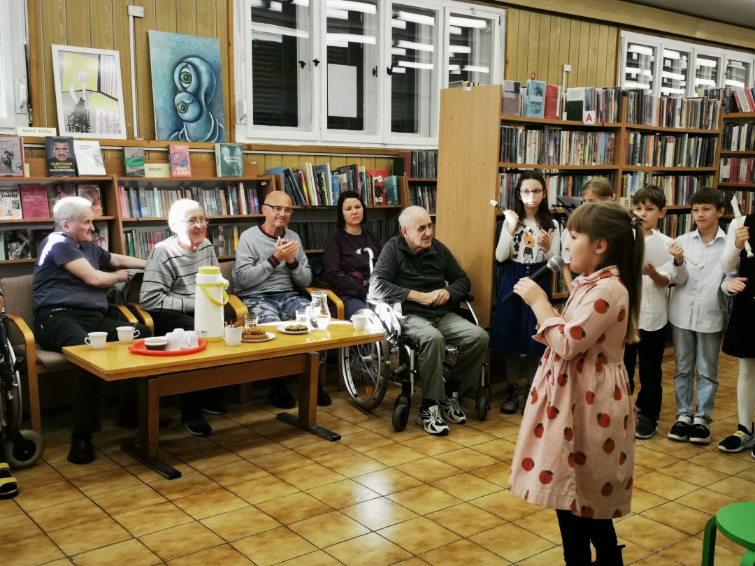 Pri príležitosti mesiaca úcty k starším si žiaci z 3.A a 3.B pripravili kultúrny program, ktorým chceli potešiť starších spoluobčanov a zablahopriať im k ich sviatku. Po vystúpení v Staromestskej knižnici na Panenskej ulici si ešte spoločne zaspievali a z chuti sa porozprávali.