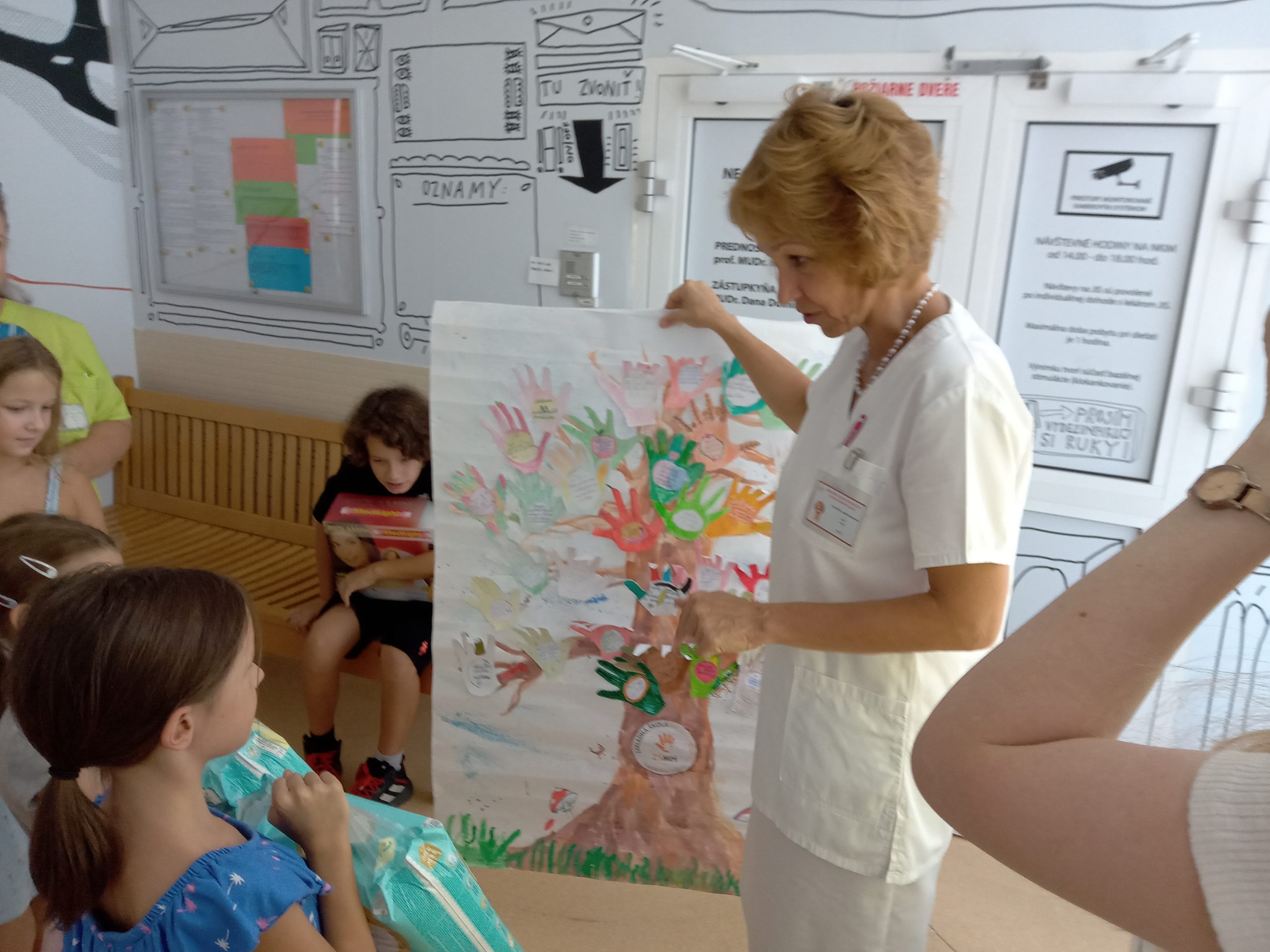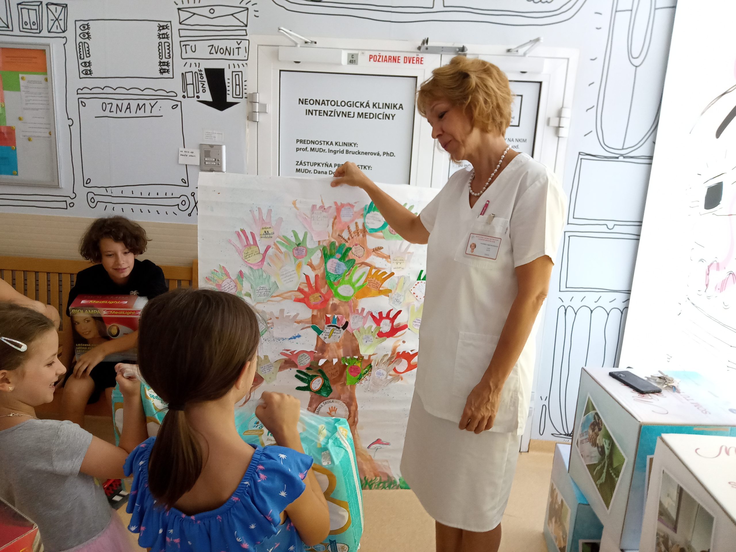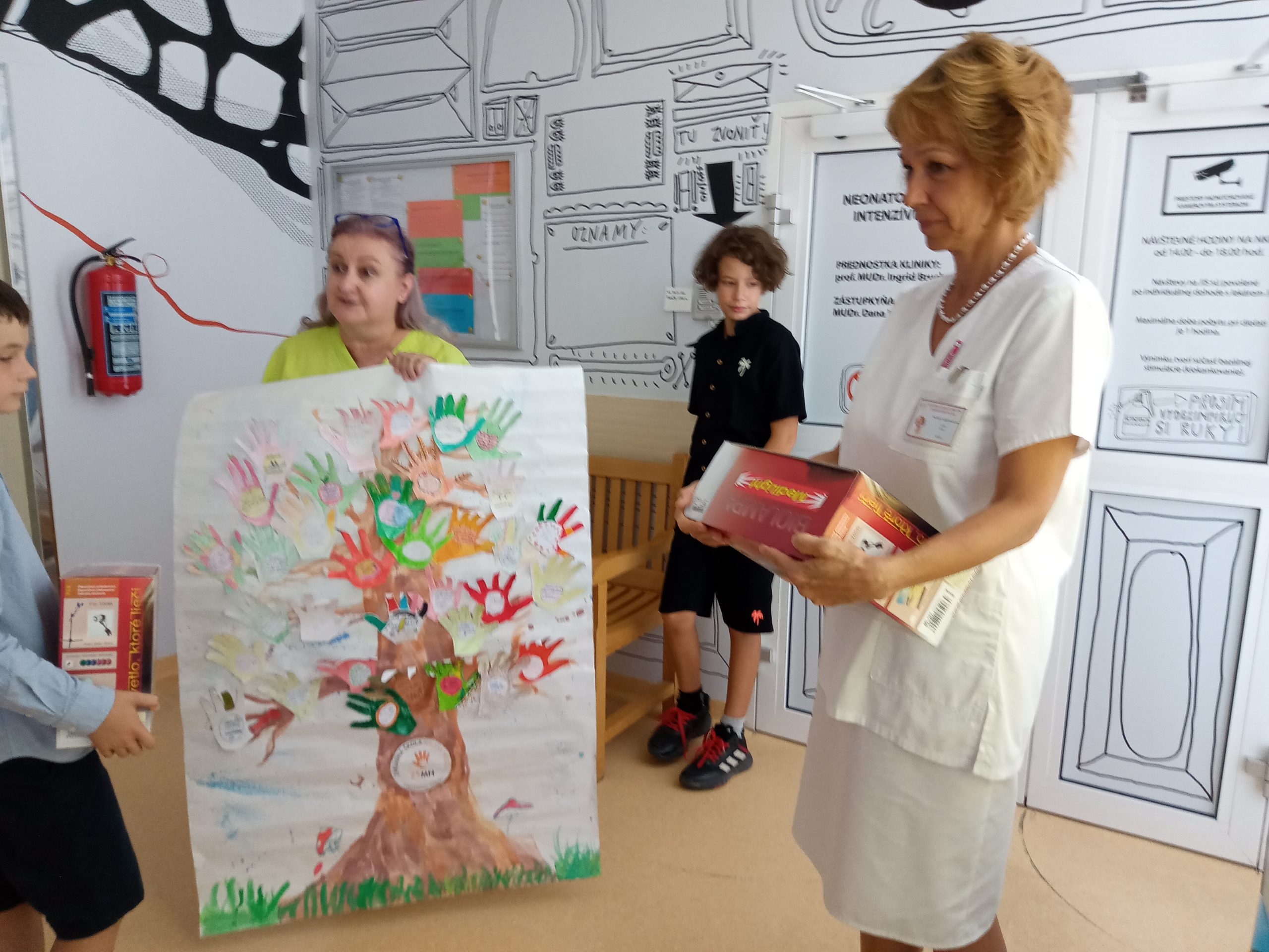 1.6.2023 ZŠ s MŠ Milana Hodžu organizovala detskú burzu, ktorej finančný výťažok bol venovaný Neonatologickej klinike intenzívnej medicíny LK UK a NÚDCH. Z vyzbieraných peňazí sa zakúpili biolampy na podporu liečby terapie svetlom predčasne narodených detí spolu s plienkami. Neodmysliteľnou súčasťou bol aj plagát vyrobený žiakmi, plný odkazov pre novonarodené deti. Zakúpené dary odovzdali žiaci školy 13.9.2023 pani prednostke prof. MUDr. Ingrid Brucknerovej, PhD. a vedúcej sestre pani Mgr. Renáte Jančovičovej priamo na klinike. Pri príležitosti odovzdania darov mali žiaci možnosť vidieť simulátory bábätiek, ktoré slúžia k výučbe a k starostlivosti o predčasne narodené dieťatko pre budúcich lekárov, ale aj rodičov. Sme veľmi radi, že sme mohli aj takto pomôcť novým človiečikom, ktorí prišli medzi nás.