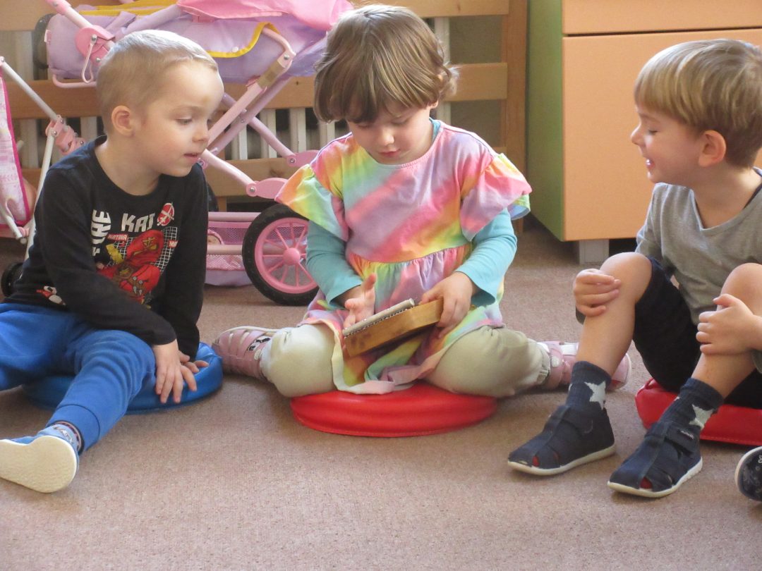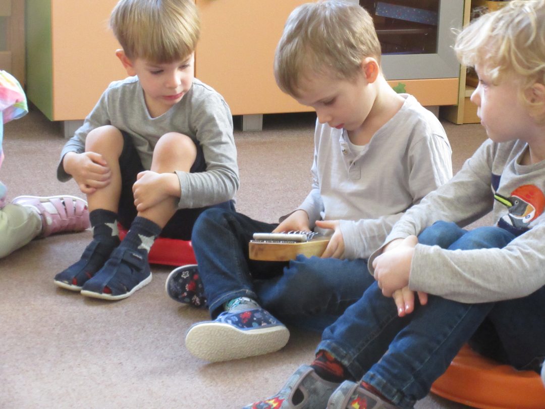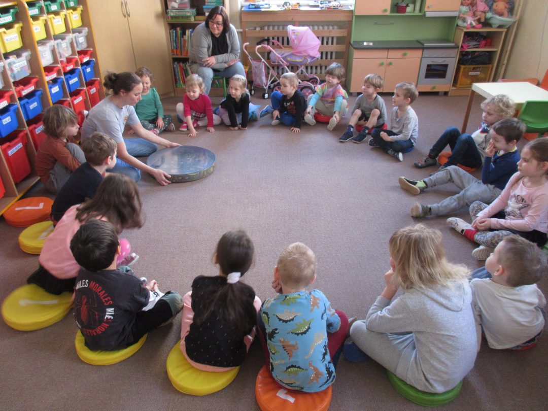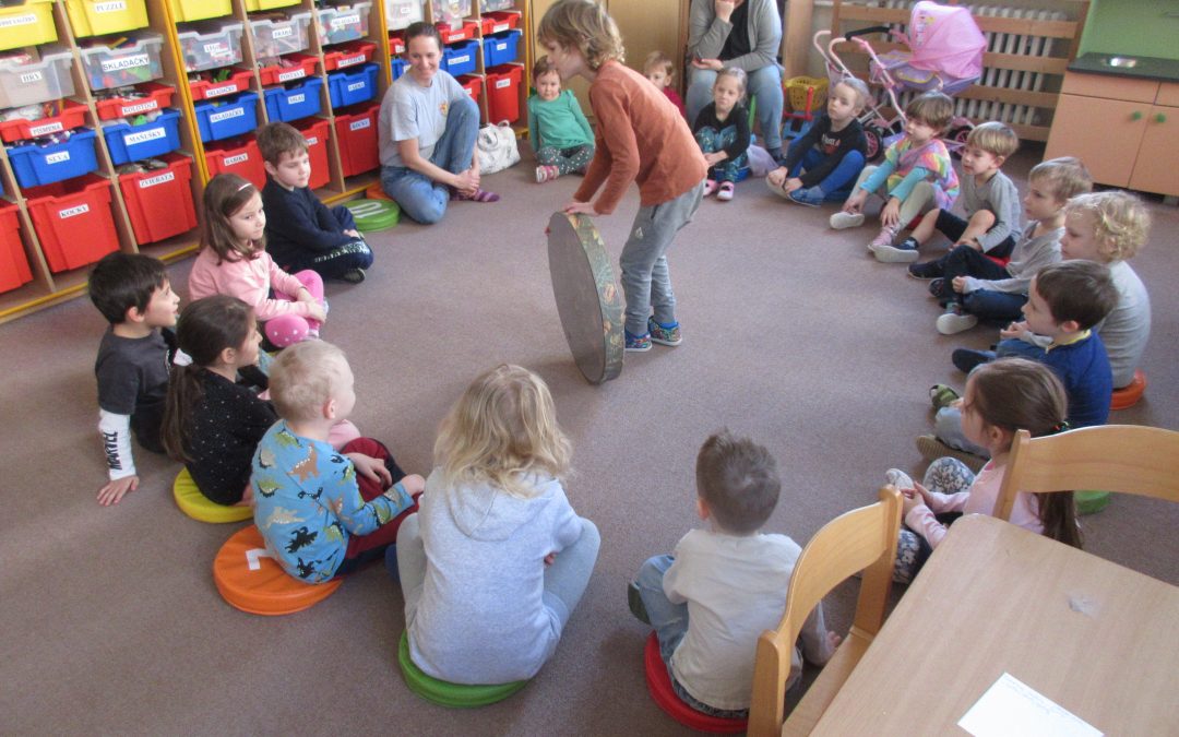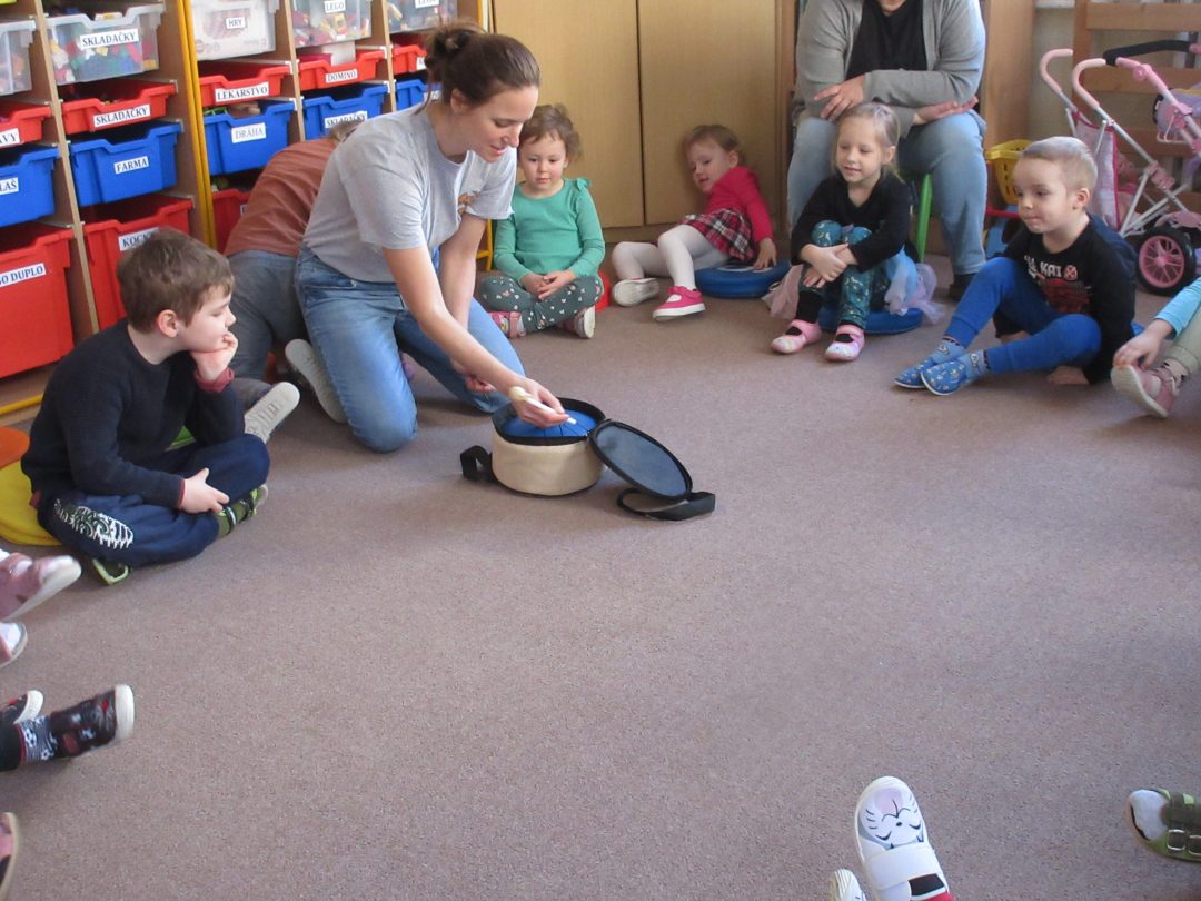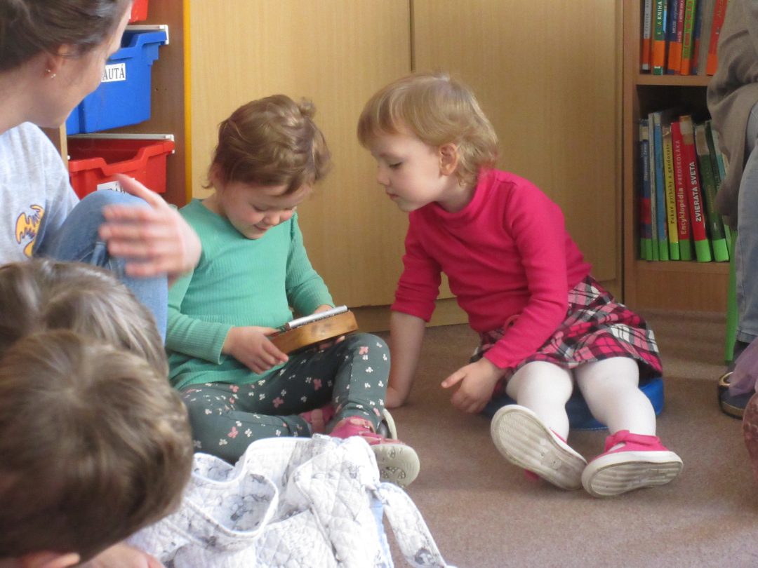 V závere týždňa venovaného hudobným nástrojom sme sa potešili návrhu maminy nášho škôlkara Adamka, pani Pauly Guthovej, ktorá sa ponúkla predstaviť nám niektoré netradičné hudobné nástroje. A tak sme sa – Žabky, Sovičky, ale aj my dospeláci – plní očakávania v jeden piatok usadili a zvedavo čakali, čo bude nasledovať. Veď kto z nás mal doteraz možnosť spoznať oceánsky bubon, kalimbu, vibrasle, zvonkohru či jazýčkový bubon, ktorého každý jazyk má inú veľkosť a vďaka tomu aj každý tón iný? Nevšedný zážitok uzatváralo čítanie príbehu o Terke, ktorú prihlásili do hudobnej školy. Pani Guthovej v mene nás všetkých posielame ešte raz veľké ĎAKUJEME!