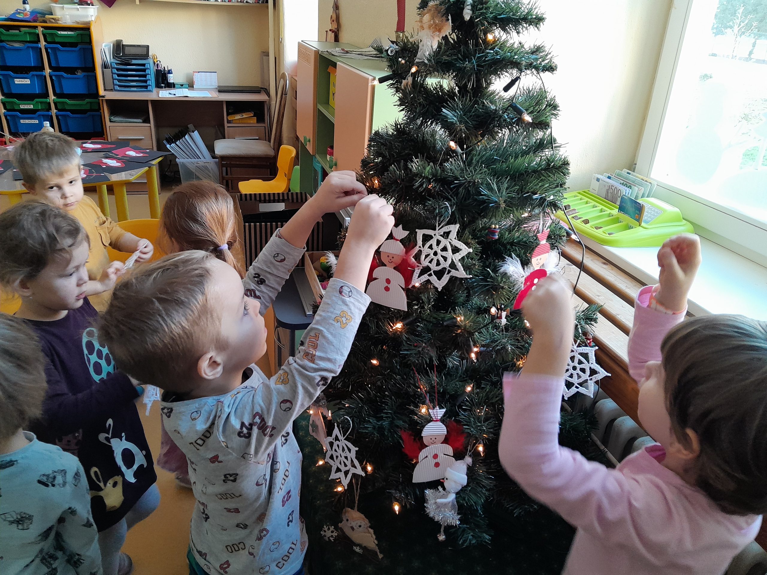 Deň pred Sviatkom svätého Mikuláša si naše Žabky a Sovičky vyzdobili vo svojich triedach vianočné stromčeky. Popritom počúvali vianočné piesne a niektoré si aj zaspievali.