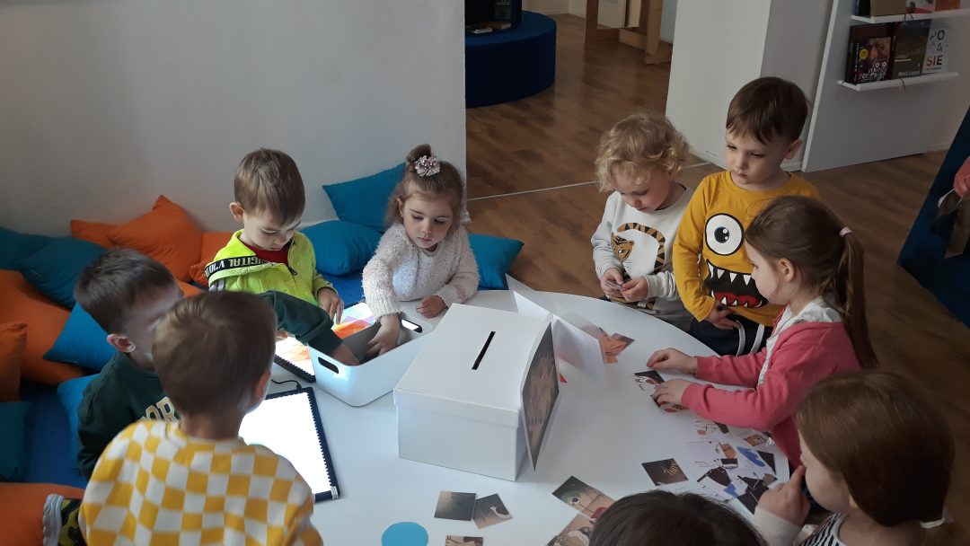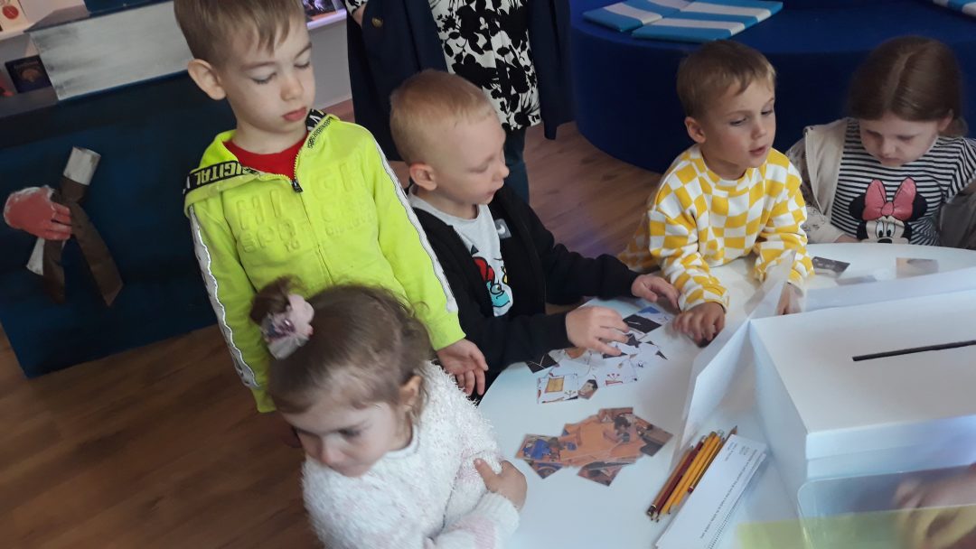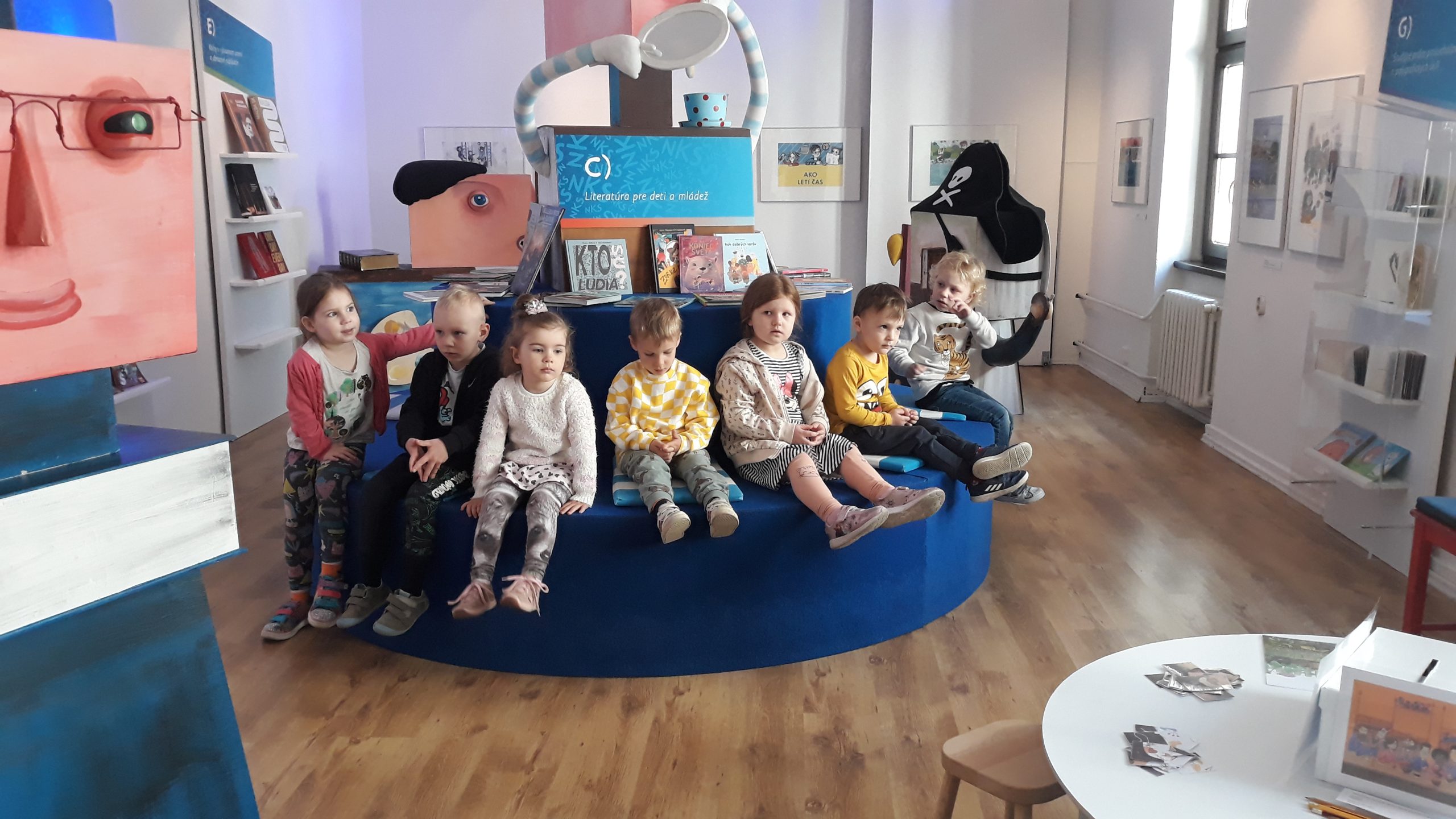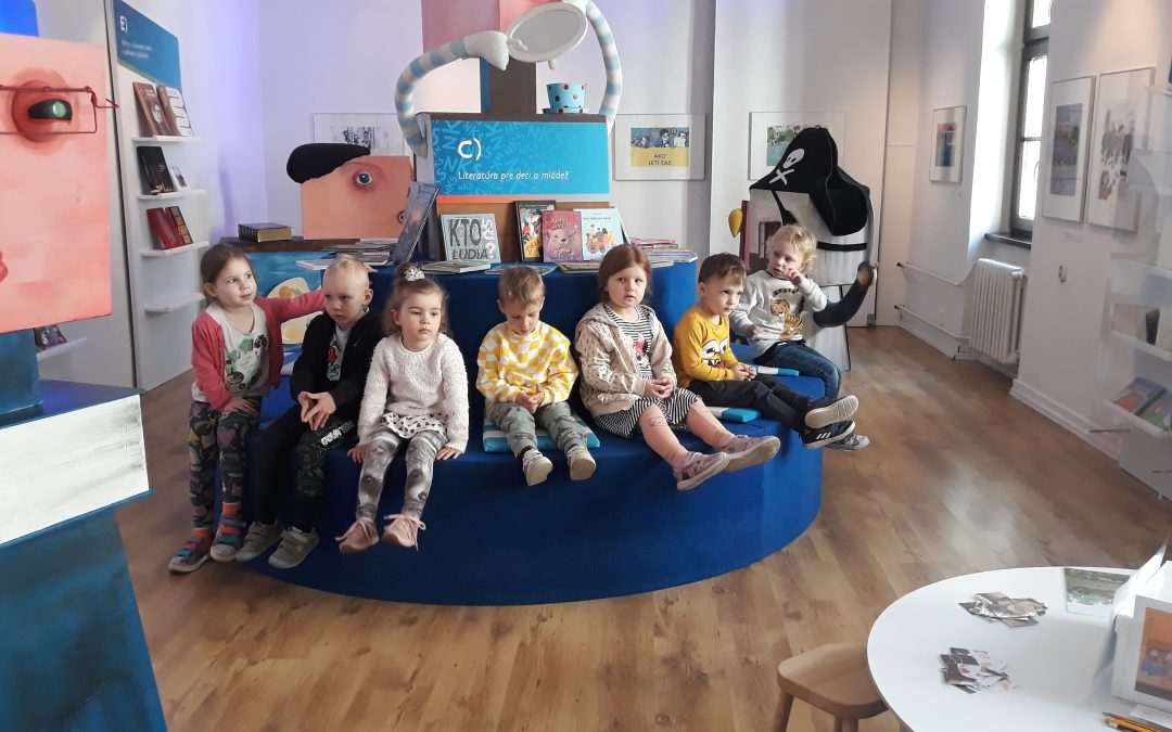 V máji naše Žabky navštívili interaktívnu výstavu s názvom Najkrajšie knihy Slovenska v staromestskej Bibiane. S lektorkou výstavy riešili viaceré úlohy. Podľa obrázkov vyhľadávali knihy, skladali rozprávkové puzzle a pomocou tabletu vytvárali vlastný rozprávkový príbeh.
