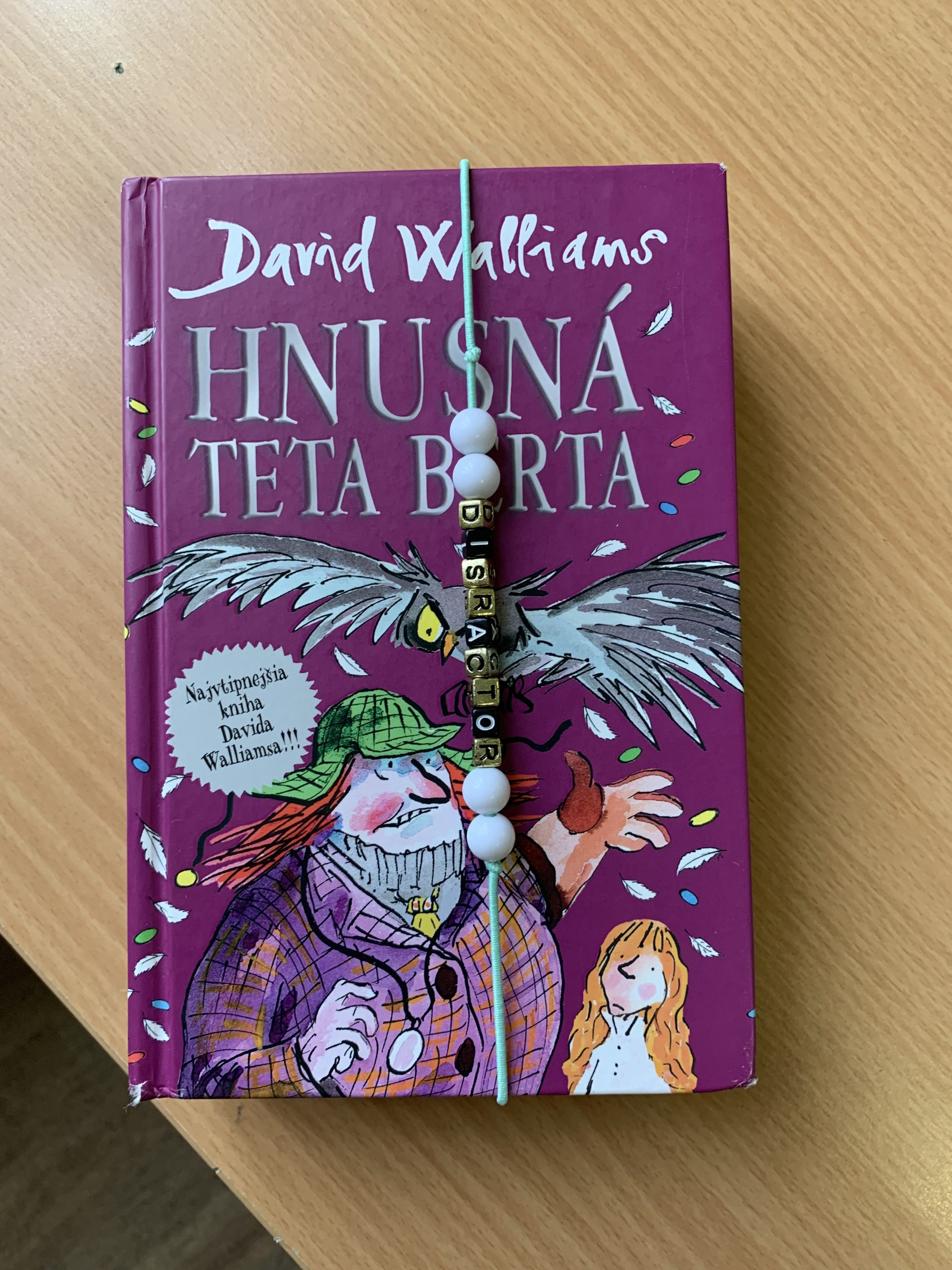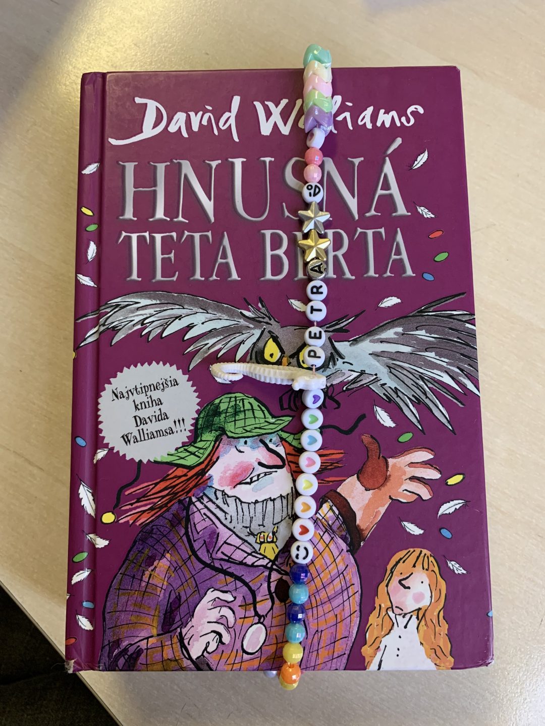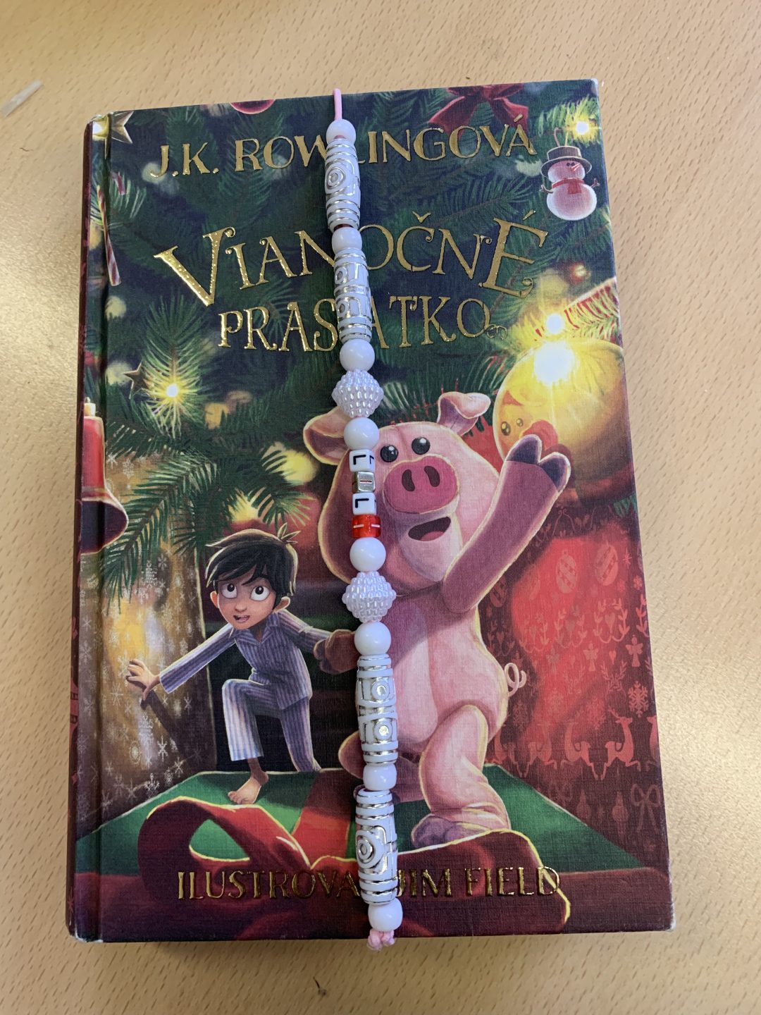 Na štvrtkovom krúžku Knižné dobrodružstvá mali žiaci možnosť vyrobiť si vlastnú personalizovanú záložku do knihy – stačili im gumičky, bavlnky a množstvo korálikov. Vznikli z toho naozaj pekné kúsky a deťom sa aktivita aj veľmi páčila.