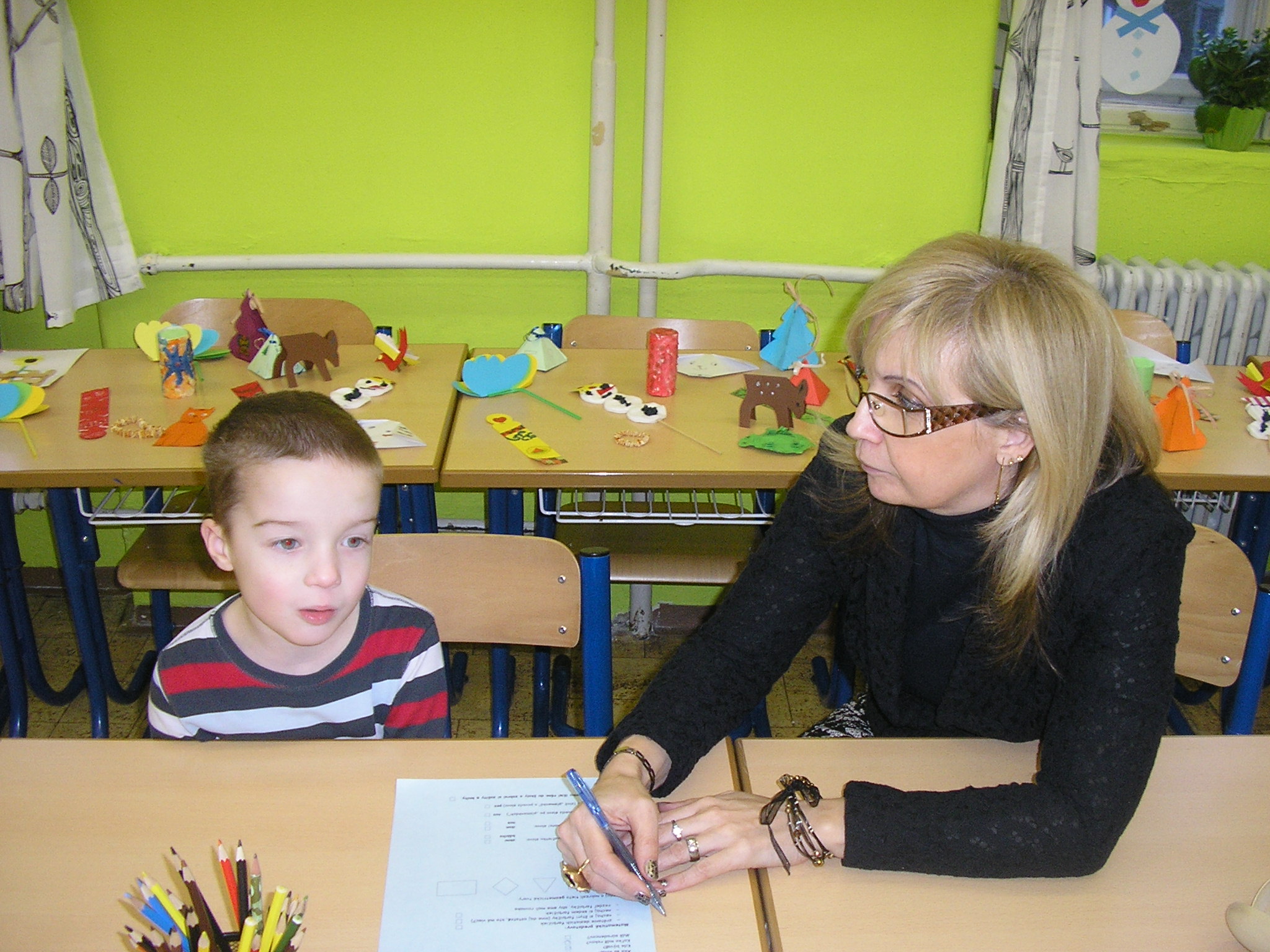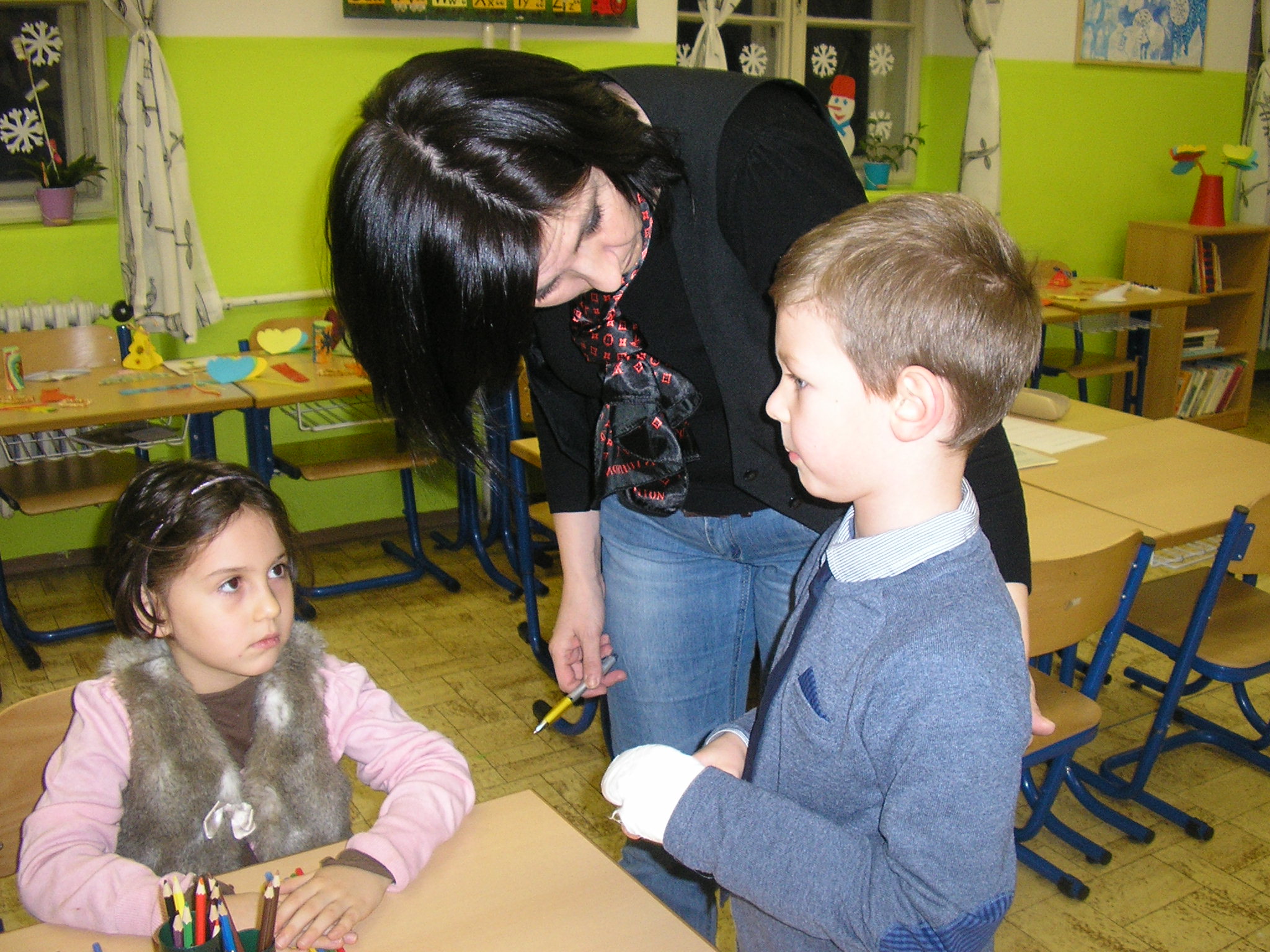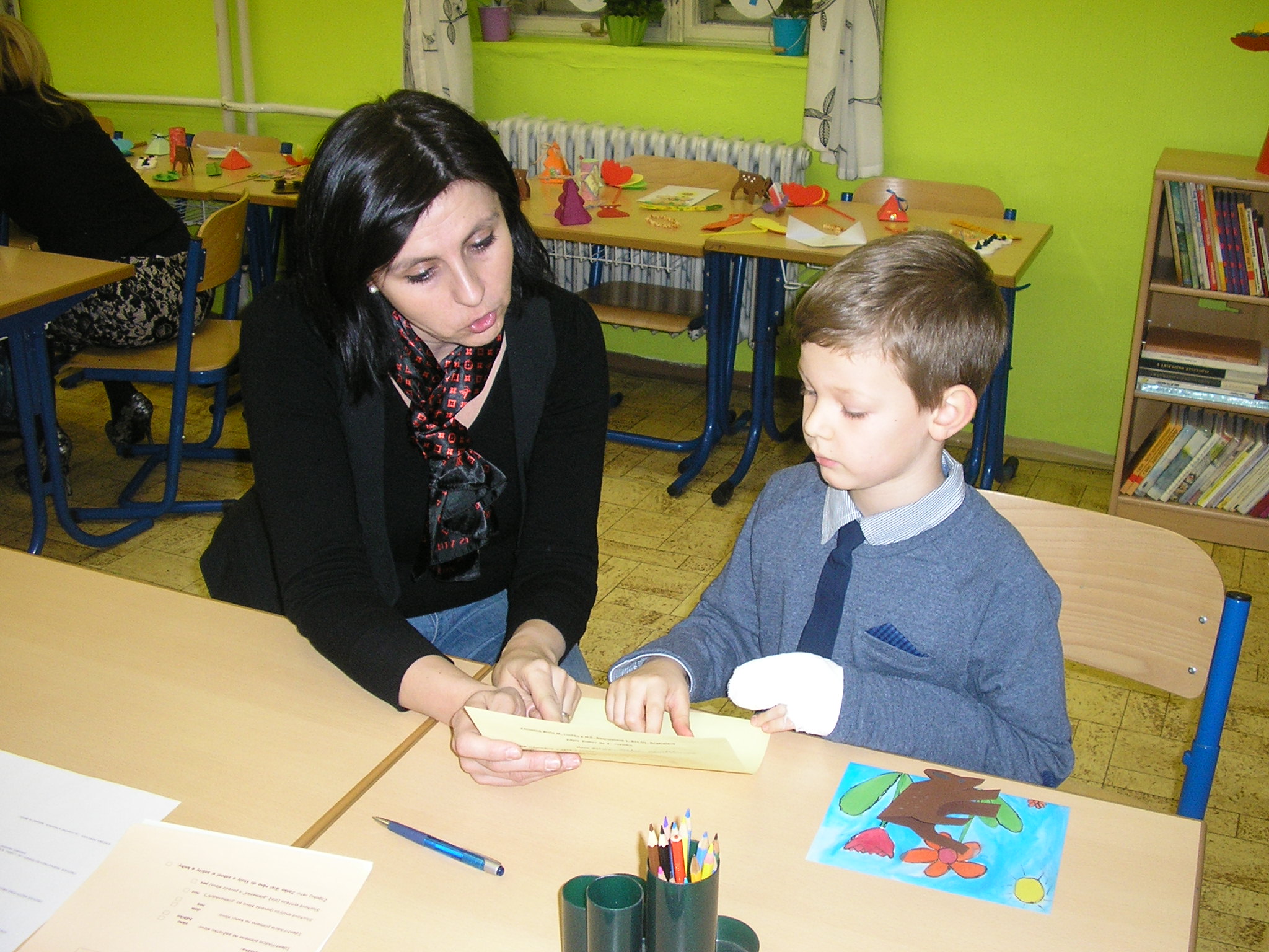 Deti, ktoré na zápis prišli, absolvovali krátky pohovor spojený s vypracovaním pracovného listu. Ukázali svoju šikovnosť a zručnosti, ktoré budú v prvom ročníku potrebovať. Čakanie na rodičov im spríjemnili žiaci deviateho ročníka, ktorí sa im venovali v herni. Staršie deti pre budúcich prváčikov pripravili milé darčeky.