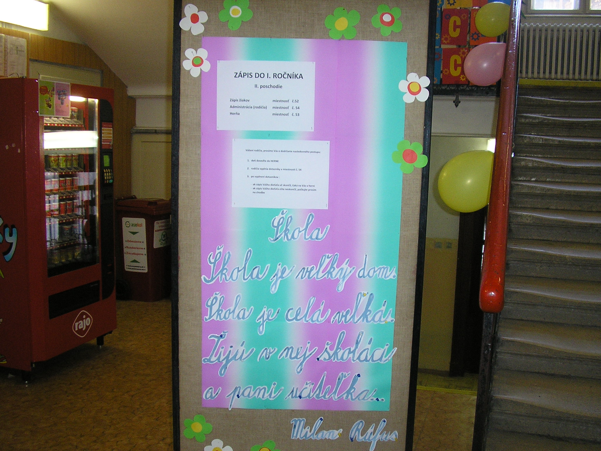Zápis do I. ročníka sa konal v dňoch 25. a 26. januára 2013.