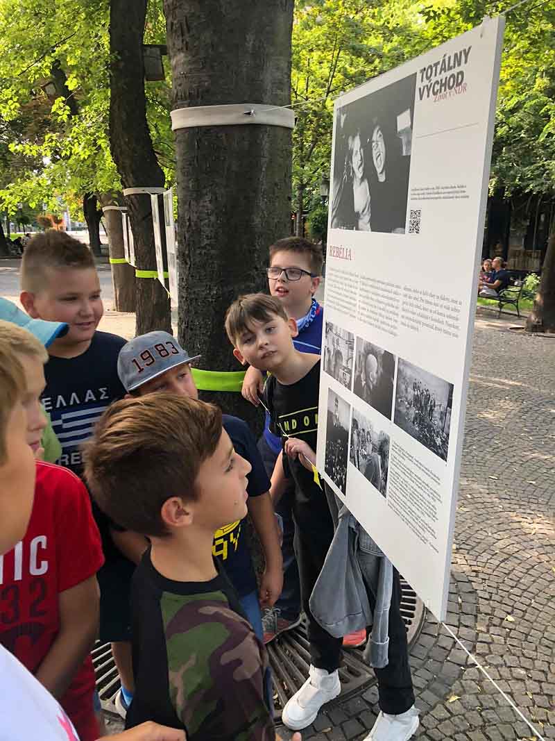 V jedno príjemné septembrové popoludnie sme sa s deťmi so školského klubu vybrali na prechádzku do Starého Mesta. Naším cieľom bola výstava fotografií „Totálny východ“ autorov Juraja Bartoša z Bratislavy a Haralda Hauwalda z Berlína, inštalovaná na Hviezdoslavovom námestí. Fotografie dokumentovali bežný život obyvateľov hlavného mesta v období komunistického diktátu. Deti mohli vidieť módne kreácie, z ktorých nebolo veľa možností na výber. Na fotkách boli zachytené výrazy tvárí bežných obyvateľov, aj reálne situácie, ktorým občania čelili – napríklad, aké náročné bolo zohnať mandarínky na Vianoce.