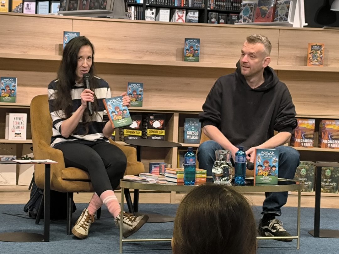 V stredu, 21.1.2026, sa tretiaci a druháci zúčastnili v Panta Rhei v Auparku na besede s pánom vychovávateľom. Besedu moderovala Veronika Sebechlebská a dávala mu otázky o tom, ako vznikal príbeh a kde čerpal inšpiráciu.