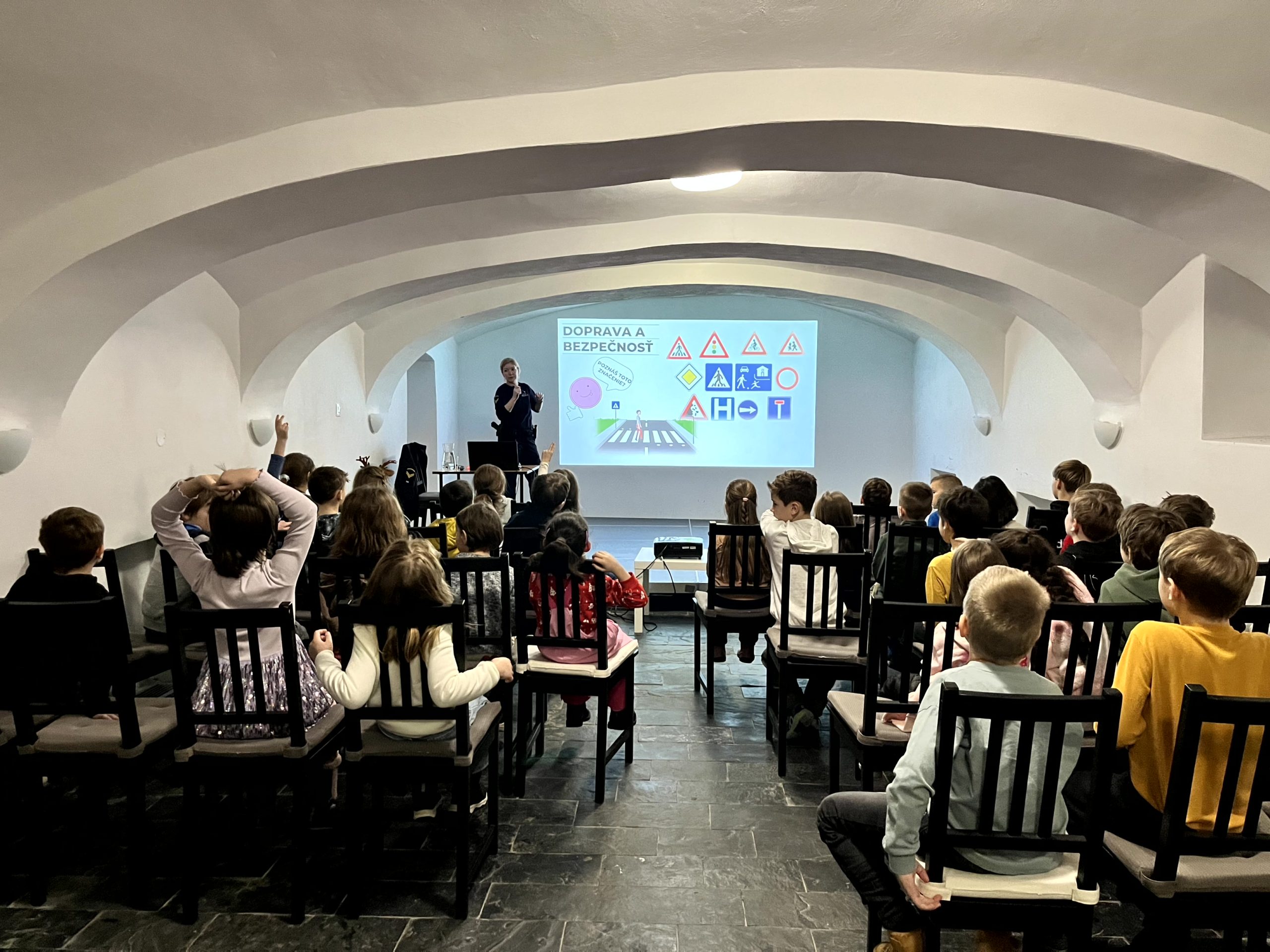 Na prednáške o cestnej bezpečnosti sa zúčastnili prváci a druháci. Dozvedeli sa, ako sa chrániť v cestnej premávke a kde v prípade potreby vyhľadať pomoc. Aktivita prebehla v spolupráci s Mestskou políciou.