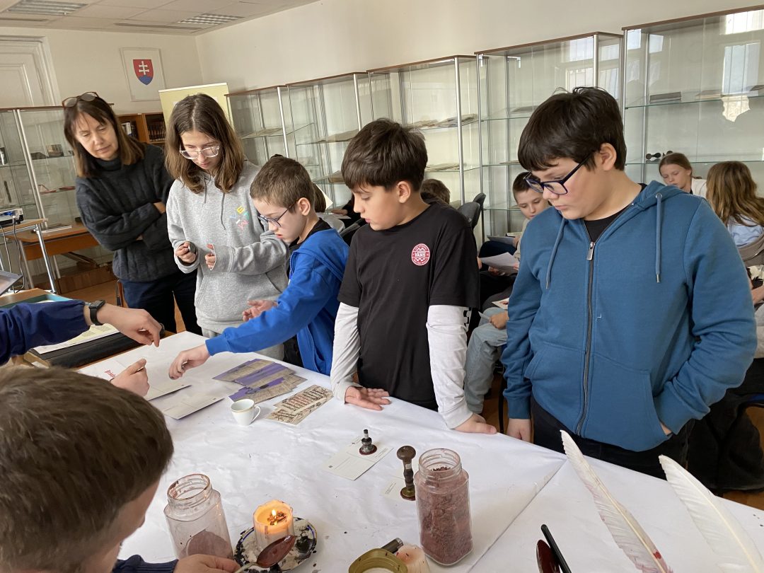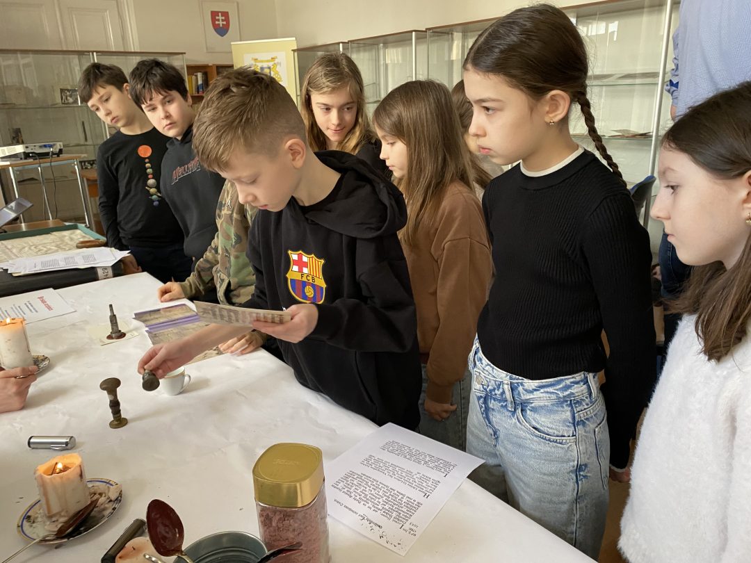 Piataci mali možnosť zoznámiť sa s rôznymi písacími látkami, spôsobom uchovávania a spracovávania archívnych dokumentov.