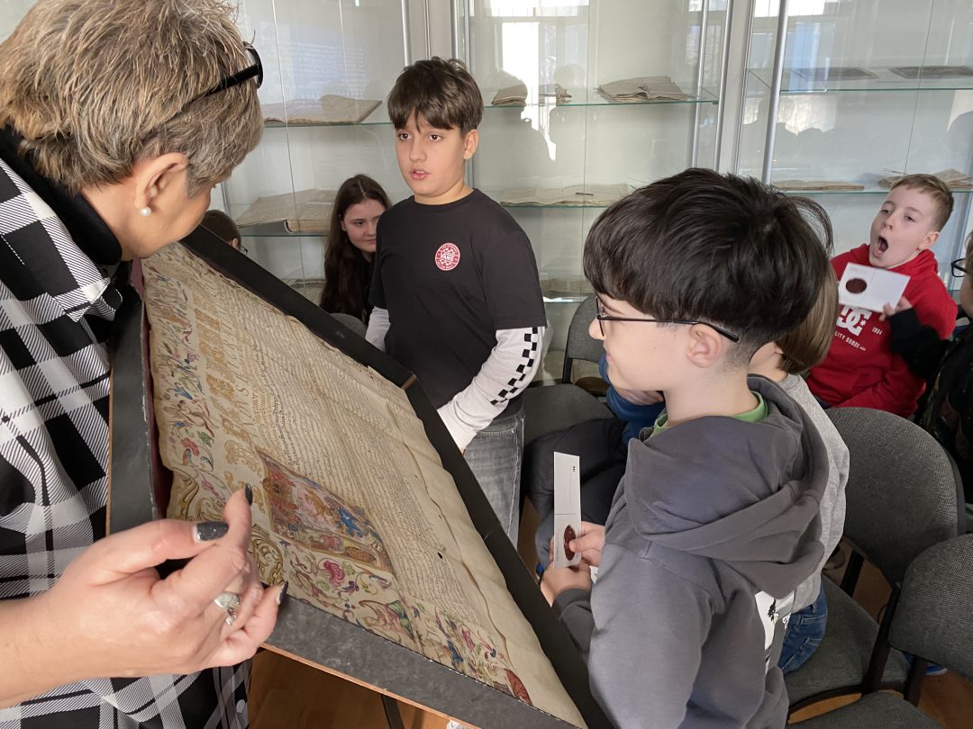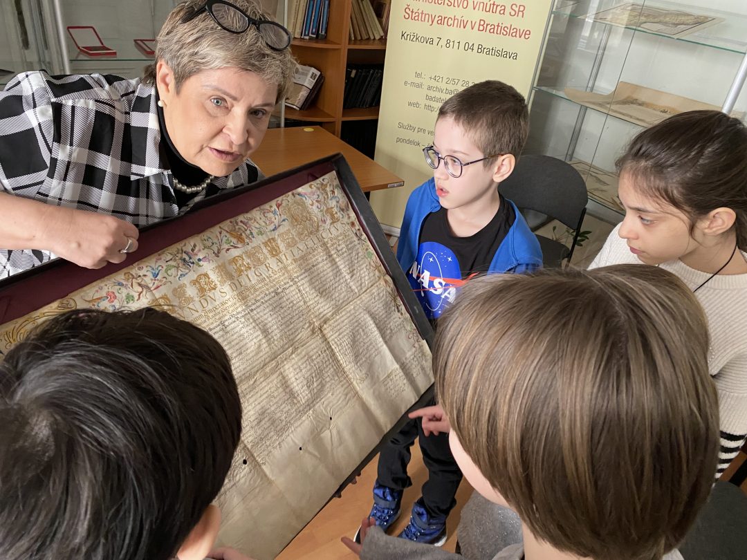 V piatok 27.2. sa naši piataci zúčastnili na plánovanej exkurzii. V rámci učiva o historických prameňoch sme po múzeu navštívili aj ďaľšiu pamäťovú inštitúciu – Štátny archív v Bratislave.